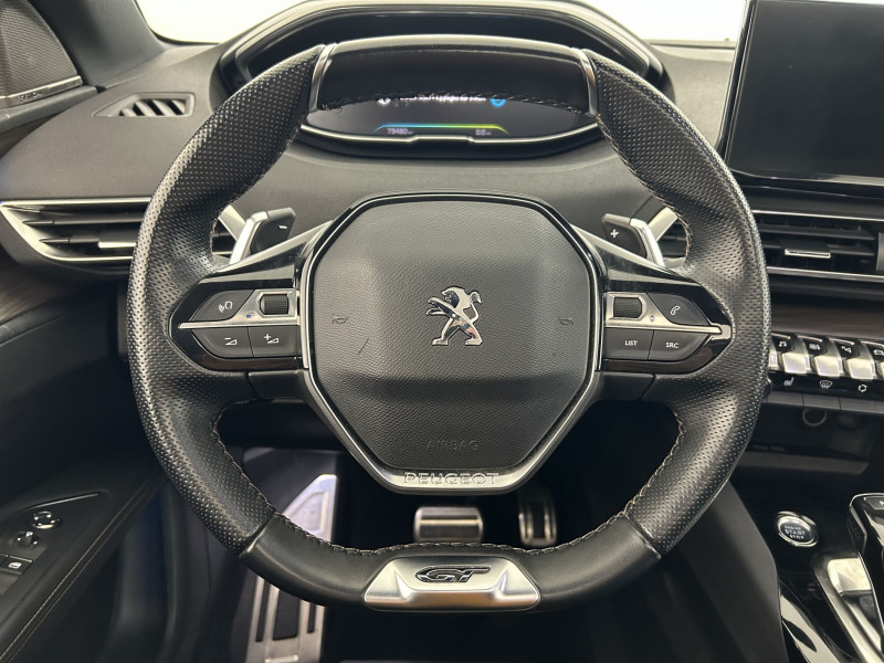 Accès et démarrage mains libres / Accoudoir central AV à ouverture papillon, avec compartiment de rangement éclairé et réfrigérable / Aide graphique et sonore au stationnement AR / Airbags frontaux conducteur et passager adaptatifs (passager neutralisable par clé), airbags latéraux conducteur et passager AV.airbags rideaux de tête aux places AV/AR / Air conditionné automatique bi-zone avec aérateurs aux places AR / Appuis-tête à sécurité optimisée réglables en hauteur sur les sièges conducteur et passager AV ainsi que sur les places latérales AR / AVAS (système d'alerte sonore du véhicule émis à faible allure en roulage électrique, audible depuis l'extérieur pour la sécurité des piétons) / Avertisseur de temps de conduite / Badge "HYBRID" sur ailes AV et volet de coffre / Bandeau de pare-chocs AR chromé / Banquette rabattable 1/3 - 2/3 (commandes dans le coffre) avec accoudoir et trappe à skis / Barres de toit longitudinales profilée en Aluminium / Boîte à gants floquée et éclairée / Câble de recharge T2 mode 2 (10 A / 2,3 kW) / Calandre GT avec design évolutif chromé / Canules d'echappement de style chromées / Chargeur embarqué 3,7kW / Commande de verrouillage à distance (2 plips) / Commandes de lève-vitres avec inserts chromés / Contrôle de la charge de la batterie à distance / Contrôle dynamique de stabilité CDS avec antipatinage électronique ASR / Coques de rétroviseurs extérieurs Noir Perla Nera / Décors de planche de bord et panneaux de portes Alcantara Gris Greval / Décors intérieurs chromés / Détection de sous-gonflage indirecte / Direction assistée électrique, colonne de direction réglable en hauteur et profondeur (mécanique) / Enjoliveur d'arc de pavillon en inox / Enjoliveur en inox sur les protecteurs de bas de portes / Essuie-vitre AR avec enclenchement automatique en marche AR / Essuie-vitre AV avec système de lavage "Magic Wash" / Fonction "Mirror Screen" (Apple CarPlay / Android Auto ) / Frein de stationnement électrique avec aide au démarrage en pente / Garnissage TEP et Alcantara Mistral / Habitacle et ciel de pavillon Noir Mistral / Hayon motorisé avec accès mains libres / Indicateur de rapport conseillé / Inserts d'ailes AV chromés / Jantes alliage 19" 'San Francisco' bi-ton diamantées Noir Onyx mat / Joncs de vitres latérales en inox / Kit de dépannage de pneumatique : compresseur 12 volts, flacon de produit de colmatage, anneau de remorquage, deux cales de roue, manivelle de frein de stationnement électrique / Lève-vitres AV/AR électriques et séquentiels avec antipincement / Lunette AR chauffante avec antennes sérigraphiées / Navigation 3D connectée avec écran tactile capacitif 10" HD Avec reconnaissance vocale, cartographie Europe, services de Navigation connectée TomTom 3 ans inclus, connexion automatique et permanente via carte SIM intégrée au véhicule / Passages de roues rapportés noirs / Pédalier et repose-pied conducteur en aluminium / PEUGEOT Connect SOS & Assistance et Teleservices / Peugeot i-Cockpit avec combiné tête haute numérique haute qualité d'affichage, écran tactile capacitif 10" HD et volant compact multi-fonctions / Plafonniers AV et AR avec spot de lecture / Planche de bord surpiquée / Plancher de coffre fixe avec articulation pour accès au coffre de rangement du câble de recharge / Poches/filets aumonières au dos des sièges AV / Pré-chauffage / climatisation du véhicule à distance / Prises USB de charge (x2) au 2ème rang / Prise USB (dans la zone connectique) / Projecteurs "Peugeot Full LED Technology" avec correction automatique de site, fonction Eclairage Virage Statique,"Foggy Mode" et feux diurnes à LED prolongés dans les projecteurs / Rétroviseur intérieur photosensible sans cadre, avec témoin lumineux de roulage en mode Electric / Sabot de pare-chocs AV gris métallisé / Sécurité enfants électrique des vitres AR / Sélecteur de modes de conduite (Electric, Hybrid, Sport) / Seuils de portes AV en Inox / Siège conducteur mécanique avec réglage lombaire / Siège passager AV avec mise en tablette / Sièges AV mécaniques réglages en hauteur / Surtapis AV/AR / Système d'antiblocage des roues ABS avec répartiteur électronique de freinage REF et assistance au freinage d'urgence AFU / Système HI-FI Premium FOCAL / Toggle Switches chromés (touches piano d'activation des fonctions de l'écran tactile) / Toit "Black Diamond" (toit Noir Perla Nera) / Trappe de recharge électrique sur l'aile AR gauche, avec indicateur lumineux d'état de recharge / Vitres AV feuilletées acoustiques / Vitres latérales AR et lunette AR surteintées / Volant cuir fleur perforé avec bagues chromées et badge GT / Driver Sport Pack / Pack City 2 / Pack Drive Assist Plus / Pack Eclairage d'ambiance / Pack Safety Plus / Pack Visibilité / / Véhicules équivalents: C5 Aircross - Tiguan - X3