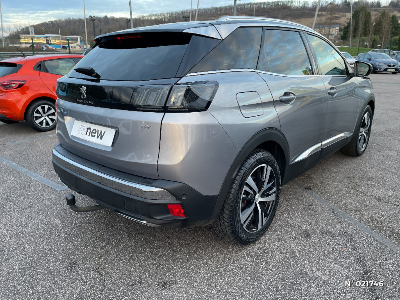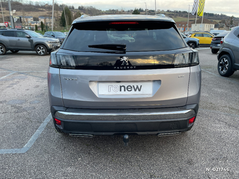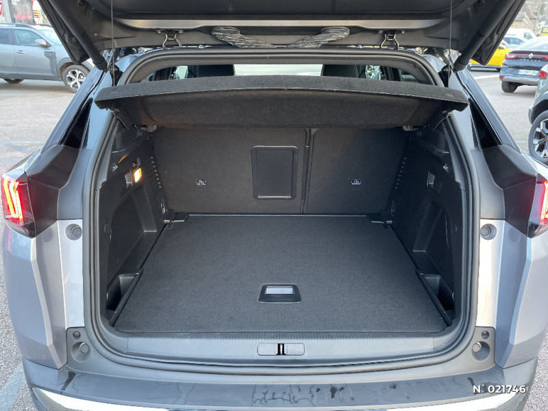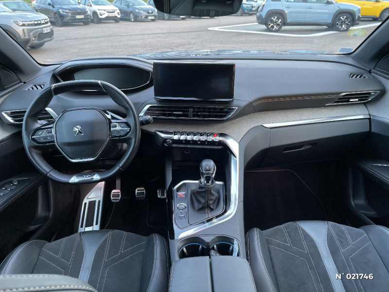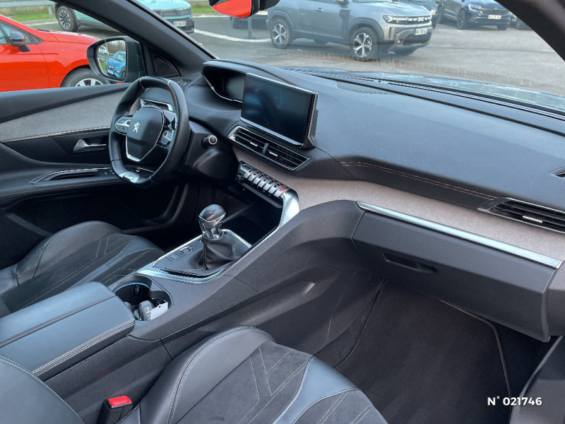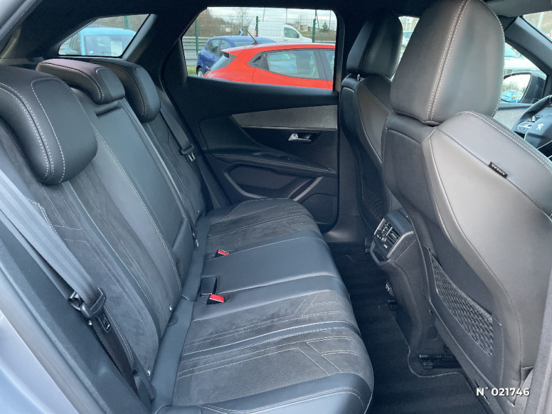 Planche de bord surpiquée / Appuis-tête à sécurité optimisée réglables en hauteur sur les sièges conducteur et passager AV ainsi que sur les places AR / Ceintures de sécurité AV 3 points à enrouleur, réglables en hauteur avec prétensionneurs et limiteurs d'effort / Contrôle dynamique de stabilité CDS avec antipatinage électronique ASR / Indicateur de rapport conseillé / Sécurité enfants électrique des vitres AR / Passages de roues rapportés noirs / Boîte à gants floquée et éclairée / Direction assistée électrique, colonne de direction réglable en hauteur et profondeur (mécanique) / Essuie-vitre AV avec système de lavage "Magic Walsh" / Essuie-vitre AR avec enclenchement automatique en marche AR / Lunette AR chauffante avec antennes sérigraphiées / Poches/filets aumonières au dos des sièges AV / Commande de verrouillage à distance (2 plips) / Airbags frontaux conducteur et passager adaptatifs (passager neutralisable par clé), airbags latéraux conducteur et passager AV, airbags rideaux de tête aux places AV et AR / Ceintures de sécurité 3 points à enrouleur (x3) au 2ème rang, avec prétensionneurs et limiteurs d'effort aux places latérales / Kit de dépannage de pneumatique : compresseur 12 volts, flacon de produit de colmatage, anneau de remorquage, deux cales de roue, manivelle de frein de stationnement électrique / Système d'antiblocage des roues ABS avec répartiteur électronique de freinage REF et assistance au freinage d'urgence AFU / Barres de toit longitudinales profilée en Aluminium / Eclairage intérieur à LED : plafonniers, rangements, coffre / Siège passager AV mécanique avec mise en tablette / "Toggle Switches" chromés (touches "piano" d'activation des fonctions de l'écran tactile) / Rétroviseur intérieur photosensible frameless - sans cadre / Sièges AV mécaniques à réglage manuel en hauteur / Peugeot i-Cockpit avec combiné tête haute numérique reconfigurable, écran tactile capacitif 10" et volant compact multi-fonctions / Pack City 1 / Mirror Screen (compatible Mirrorlink, Apple CarPlay, Androïd Auto) / Volant cuir fleur perforé avec bagues chromées et badge GT / Driver Sport Pack / Reconnaissance étendue des panneaux (Stop, Sens interdit) et preconisation de vitesse / Projecteurs 'Peugeot Full LED Technology' avec correction automatique de site, fonction Eclairage Virage Statique,'Foggy Mode' et feux diurnes à LED prolongés dans les projecteurs. / Calandre GT avec design évolutif chromé / Jantes alliage 18" "Detroit" bi-ton diamantées Noir Onyx / Décors de planche de bord et panneaux de portes Alcantara® Gris Greval / Eco Mode / Prises USB de charge (x2) au 2 rang / Peugeot Connect: Ecran tactile capacitif 10'' HD,navigation 3D connectée avec reconnaissance vocale aux services de Navigation connectée TomTom, SOS & Assistance, Teleservices / Commandes de lève-vitres avec inserts chromés / Bandeau de pare-chocs AR chromé / Garnissage TEP & Alcantara Mistral / Pack Drive Assist / Pack Visibilité / Radio Peugeot 1, 2 HP, antenne et cablage / Lève-vitres électriques AV et AR séquentiels avec antipincement / Plafonnier AV et AR avec spot de lecture / Siège conducteur à réglage lombaire manuel / Frein de stationnement électrique avec aide au démarrage en pente / Banquette AR rabattable 1/3 - 2/3 (avec modularité "Magic Flat"et commandes dans le coffre) avec accoudoir et trappe à skis / Prise USB (dans la zone connectique) / Prise 12V (x3 : zone connectique, AR de console et coffre) / Aide graphique et sonore au stationnement AR / Air conditionné automatique bi-zone avec aérateurs aux places AR / Décors intérieurs (baguettes de planche de bord et panneaux de portes, enjoliveur de console) chromés / Accès et démarrage mains libres / Pédalier et repose-pied conducteur aluminium / Détection de sous-gonflage indirecte / Coques de rétroviseurs extérieurs Noir Perla Nera / Seuils de portes AV inox / Vitres latérales AR et lunette AR surteintées / Surtapis AV et AR / Toit "Black Diamond" (toit Noir Perla Nera) / Avertisseur de temps de conduite / Enjoliveur d'arc de pavillon en inox / Plancher de coffre 2 positions / Inserts d'ailes AV chromés / Pack Safety Plus / Enjoliveur en inox sur les protecteurs de bas de portes / Sabots de pare-chocs AV gris métallisé / Canules d'echappement de style chromées / Habitacle et ciel de pavillon Noir Mistral