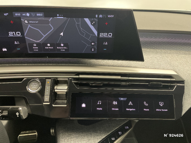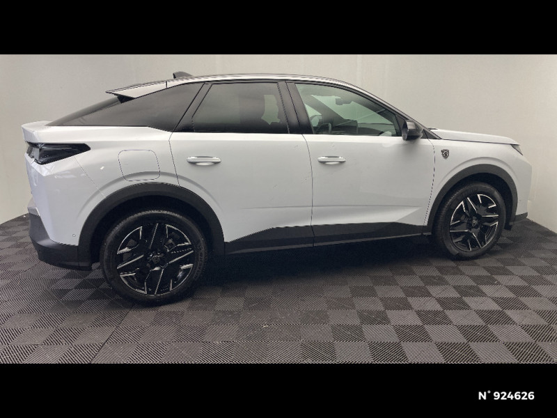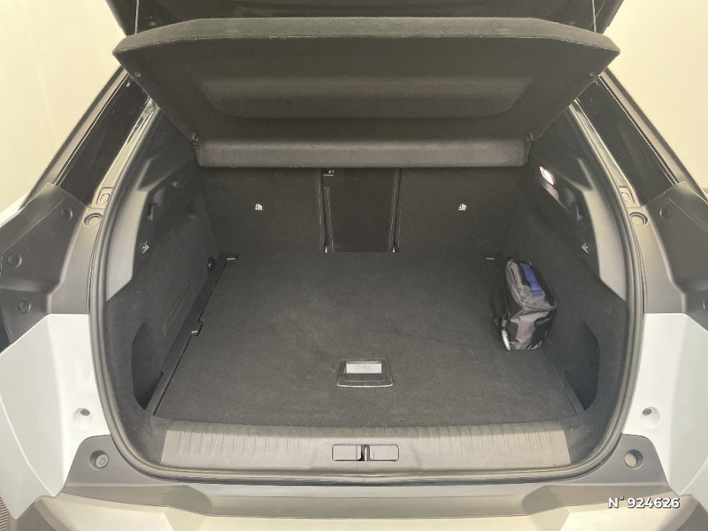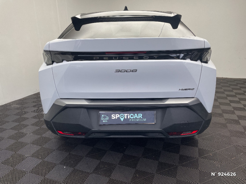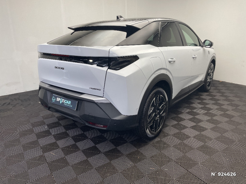 Siège conducteur à réglage lombaire manuel / Volant chauffant / Hayon motorisé avec accès mains libres / Habitacle et ciel de pavillon noir / 4 poignées de maintien rétractables (2 à l'AV et 2 à l'AR) / Recharge smartphone sans fil (puissance 15W) / Frein de stationnement électrique / Visiopark 1 Caméra de recul & aide au stationnement AV et AR, graphique et sonore / Détection de sous-gonflage indirecte / 2 prises 12 V (Console centrale, coffre) / Toit et becquet AR Black Diamond / Jantes alliage 19" diamantées BREDA Noir Orbital, vernis brillant / Projecteurs PEUGEOT PIXEL LED Eclairage adaptatif, commutation automatique des feux de route, feux de route avec fonctions anti éblouissement et boost / Monogrammes ailes AV: 'blason PEUGEOT' / Volant compact, cuir fleur lisse et perforé avec commandes intégrées Noir Laqué, décors Cast Iron, surpiqûres Iced Clay, insert Noir laqué avec badge 'GT' / PEUGEOT i-Cockpit panoramique avec écran incurvé et flottant 21'' HD / Essuie-vitre AV à déclenchement automatique / Eléments de style intérieure Planche de bord moussée avec décor tissu RIMINI chiné, décor d'alcôve en Aluminium sérigraphié, faà§ade et aérateurs Noir laqué avec décor Cast Iron, Panneaux de portes avec décor tissu RIMINI chiné, décor d'alcôve en Aluminium sérigraphié et jonc Cast Iron, accoudoirs TEP Isabella, surpiqûres Iced Clay à l' AV, Console centrale avec décor tissu RIMINI chiné, faà§ade Noir laqué et jonc Cast Iron, accoudoir tissu RIMINI chiné / Monogrammes AV: 'blason PEUGEOT' et '3008' / 6 airbags: frontaux conducteur et passager auto-adaptatifs (passager neutralisable par clé), latéraux conducteur et passager AV (thorax et bassin), rideaux aux places AV et AR (tête et thorax) / Monogrammes AR '3008' et 'Hybrid / Sellerie tissu NEW UZIRIS embossé, accompagnement TEP Isabella, écharpe tissu RIMINI chiné, surpiqûres Iced Clay / Commutation adaptative des projecteurs / Sièges AV à réglage en hauteur manuel / Drive Assist - Régulateur de vitesse adaptatif avec fonction Stop & Go / PEUGEOT i-Toggles virtuels avec 10 raccourcis personnalisables / PEUGEOT i-Connect Advanced Navigation 3D connectée, 4 prises USB: 1 prise USB C (Data & charge) et 1 prise USB C (Charge) à l'AV, 2 prises USB C (Charge) à l'AR / Eclairage d'ambiance indirect, jour & nuit sur la planche de bord, les panneaux de portes AV et sous l'écran panoramique 21'', associé aux modes de conduite, personnalisable en 8 couleurs / 6 haut-parleurs (2 tweeters et 2 woofers à l'AV et 2 larges bandes à l'AR) / Pédalier et repose pied aluminium / Surtapis AV et AR avec surpiqûres Iced Clay et logo 'GT' / Eclairage intérieur Miroirs de courtoisie conducteur et passager occultables éclairés à LED, Plafonnier AV et lisseuses AR i-DOME tactiles à LED / Seuil de portes AV inox avec lettrage 'PEUGEOT' / Pack Safety Plus Régulateur / Limiteur de vitesse, Freinage d'urgence automatique avec alerte risque de collision, Alerte active de franchissement involontaire de ligne et bas côté, Reconnaissance étendue des panneaux de signalisation et préconisation de vitesse, Alerte attention conducteur / Rétroviseurs extérieurs dégivrants avec réglage et rabattement électriques,éclairage de seuil / Eléments de style éxterieur Bandeau entre les projecteurs Noir laqué avec logo '3008'. Calandre couleur caisse, écopes latérales Noir laqué, décor inférieur Gris Meteor, jupe inférieure Noir grainé. Vitres AR, vitres de custode et lunette AR surteintées. Lécheurs de vitres masqués. Enjoliveurs de passages de roues et protections inférieures de portes Noir grainé. Bandeau entre les feux AR Noir laqué avec lettrage 'PEUGEOT'. Pare chocs AR avec décor Gris Meteor et jupe inférieure Noir grainé, Monogrammes AV et AR / Plancher de coffre modulable 2 positions / PEUGEOT i-Connect Advanced - Connect Plus: Reconnaissance vocale connectée en langage naturel, ChatGPT (Disponibilité ultérieurement) Services de sécurité: alarme connectée (Si véhicule équipé de l'alarme,) Services à distance (E Remote Control, Remote Control, Find My Car, My Trip Report, Peugeot Skill for Alexa), Fonctions de Navigation (Trafic en temps réel, prévisions météorologiques,parking, recherche TomTom, limitations de vitesse, prix du carburant, mise à jour cartographie Over The Air, Send to Nav, Geofenci / Lève-vitres AV et AR électriques séquentiels avec antipincement / Accès et démarrage mains libres Proximity 2 Télécommandes 3 boutons (verrouillage, coffre, déverrouillage) / Banquette AR avec dossier rabattable 40/20/40 / Vitres AR, custodes et lunette AR teintées / Pare-brise feuilleté acoustique