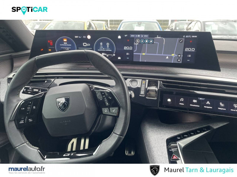 Accès et démarrage mains libres Proximity / Eclairage d'ambiance indirect, jour & nuit sur la planche de bord, les panneaux de portes AV et sous l'écran panoramique 21'', associé aux modes de conduite, personnalisable en 8 couleurs / Hayon motorisé avec accès mains libres / Pack Safety Plus Régulateur / Limiteur de vitesse, Freinage d'urgence automatique avec alerte risque de collision pilotée par caméra et radar, Alerte active de franchissement involontaire de ligne et bas côté, Reconnaissance étendue des panneaux de signalisation et préconisation de vitesse, Alerte attention conducteur / PEUGEOT i-Cockpit panoramique avec écran incurvé et flottant 21 HD / Toit et becquet AR Black Diamond / Visiopark 1 Caméra de recul & aide au stationnement AV et AR, graphique et sonore