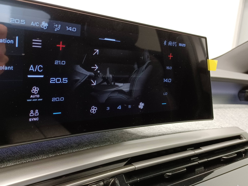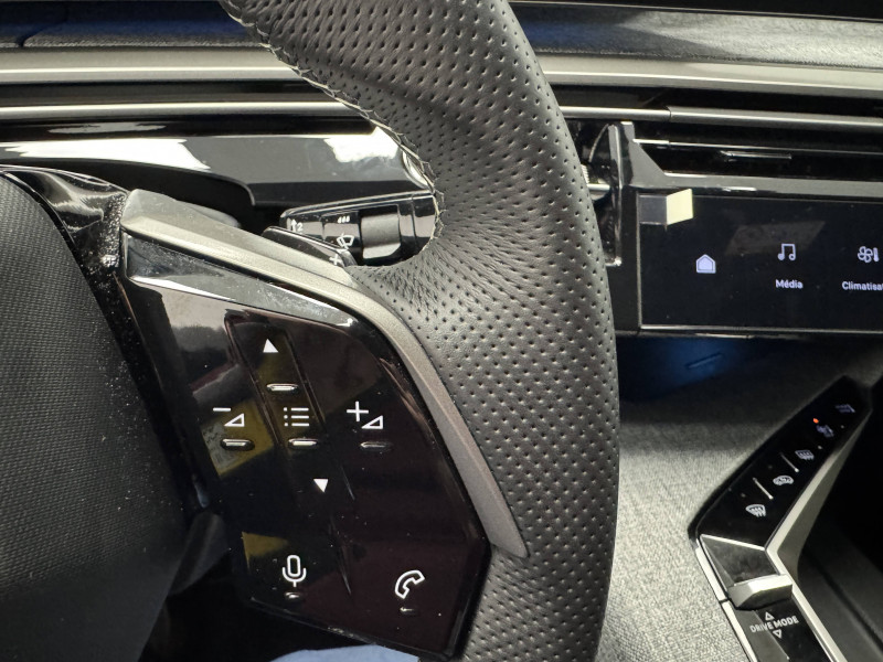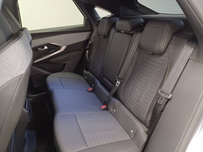 2 prises 12 V (Console centrale, coffre) / 4 poignées de maintien rétractables (2 à l'AV et 2 à l'AR) / 6 airbags: frontaux conducteur et passager auto-adaptatifs (passager neutralisable par clé), latéraux conducteur et passager AV (thorax et bassin), rideaux aux places AV et AR (tête et thorax) / 6 HP (2 tweeters et 2 woofers à l'AV et 2 larges bandes à l'AR) / Accès et démarrage mains libres Proximity / Banquette AR avec dossier rabattable 40/20/40 / Boîte de vitesse automatique, séquentielle (6 rapports) / Commutation adaptative des projecteurs / Commutation automatique des feux de route / Détection de sous-gonflage indirecte / Drive Assist - Régulateur de vitesse adaptatif avec fonction Stop & Go / Eclairage d'ambiance indirect, jour & nuit sur la planche de bord, les panneaux de portes AV et sous l'écran panoramique 21'', associé aux modes de conduite, personnalisable en 8 couleurs / Eclairage intérieur Miroirs de courtoisie conducteur et passager occultables éclairés à LED / Eléments de style éxterieur Bandeau entre les projecteurs Noir laqué avec logo 3008. Calandre couleur caisse, écopes latérales Noir laqué, décor inférieur Gris Meteor, jupe inférieure Noir grainé. Vitres AR, vitres de custode et lunette AR surteintées. Lécheurs de vitres masqués. Enjoliveurs de passages de roues et protections inférieures de portes Noir grainé. Bandeau entre les feux AR Noir laqué avec lettrage PEUGEOT. Pare chocs AR avec décor Gris Meteor et jupe inférieure Noir grainé, Monogrammes AV et AR / Eléments de style intérieure Planche de bord moussée avec décor tissu RIMINI chiné, décor d'alcôve en Aluminium sérigraphié, façade et aérateurs Noir laqué avec décor Cast Iron, Panneaux de portes avec décor tissu RIMINI chiné, décor d'alcôve en Aluminium sérigraphié et jonc Cast Iron, accoudoirs TEP Isabella, surpiqûres Iced Clay à l' AV, Console centrale avec décor tissu RIMINI chiné, façade Noir laqué et jonc Cast Iron, accoudoir tissu RIMINI chiné / Essuie-vitre AV à déclenchement automatique / Frein de stationnement électrique / Habitacle et ciel de pavillon Noir / Hayon motorisé avec accès mains libres / Jantes alliage 19" diamantées Lulea Noir Orbital, vernis brillant / Lève-vitres AV/AR électriques et séquentiels avec antipincement / Monogrammes ailes AV: 'blason PEUGEOT' / Monogrammes AR 3008 et Hybrid / Monogrammes AV: blason PEUGEOT et 3008 / Pack Safety Plus Régulateur / Limiteur de vitesse, Freinage d'urgence automatique avec alerte risque de collision et protection des usagers de la route vulnérables (piétons, cyclistes,... ) Alerte active de franchissement involontaire de ligne et bas côté, Reconnaissance étendue des panneaux de signalisation et préconisation de vitesse, Alerte attention conducteur / Pare-brise feuilleté acoustique / Pédalier et repose pied aluminium / PEUGEOT i-Cockpit panoramique avec écran incurvé et flottant 21'' HD / PEUGEOT i-Connect Advanced - Connect Plus: Reconnaissance vocale connectée en langage naturel, ChatGPT (Disponibilité ultérieurement) Services de sécurité: alarme connectée (Si véhicule équipé de l'alarme,) Services à distance (Remote Control, Find My Car, My Trip Report, Peugeot Skill for Alexa), Fonctions de Navigation (Trafic en temps réel, prévisions météorologiques,parking, recherche TomTom, limitations de vitesse, prix du carburant, mise à jour cartographie Over The Air, Send to Nav, Geofenci / PEUGEOT i-Connect Advanced Navigation 3D connectée, 4 prises USB: 1 prise USB C (Data & charge) et 1 prise USB C (Charge) à l'AV, 2 prises USB C (Charge) à l'AR / PEUGEOT i-Toggles virtuels avec 10 raccourcis personnalisables / Plancher de coffre modulable 2 positions / Projecteurs PEUGEOT PIXEL LED Eclairage adaptatif, commutation automatique des feux de route, feux de route avec fonctions anti éblouissement et boost / Rétroviseurs extérieurs dégivrants avec réglage et rabattement électriques, éclairage de seuil / Sellerie tissu NEW UZIRIS embossé, accompagnement TEP Isabella, écharpe tissu RIMINI chiné, surpiqûres Iced Clay / Seuil de portes AV inox avec lettrage PEUGEOT / Siège conducteur à réglage lombaire manuel / Sièges AV à réglage en hauteur manuel / Surtapis AV et AR avec surpiqûres Iced Clay et logo GT / Toit et becquet AR Black Diamond / Visiopark 1 Caméra de recul & aide au stationnement AV et AR, graphique et sonore / Volant chauffant / Volant compact, cuir fleur lisse et perforé avec commandes intégrées Noir Laqué, décors Cast Iron, surpiqûres Iced Clay, insert Noir laqué avec badge ?GT'