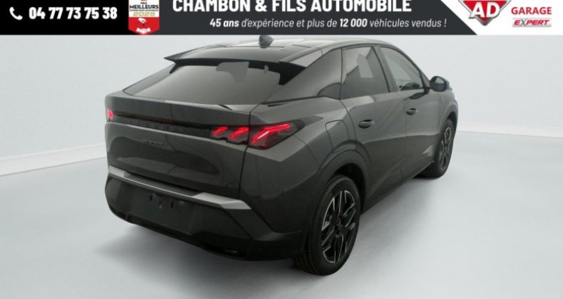 Référence : 340595 Cylindrée : 1199 cm3 Hybrid 145 e-DCS6 GT, hybride, titane, 31/07/2025, Frein de stationnement électrique, ESP avec aide au démarrage en pente, ABS, Détection de sous-gonflage indirecte, Commutation automatique des feux de route, Essuie-vitre AV à déclenchement automatique, Habitacle et ciel de pavillon Noir, Direction assistée, Accoudoir central, Teintes métallisées : option incluse (valeur : 1 200 Eur TTC), 6 HP (2 tweeters et 2 woofers à l'AV et 2 larges bandes à l'AR), Rétroviseurs extérieurs dégivrants avec réglage et rabattement électriques, éclairage de seuil, Allumage automatique des phares, Hayon motorisé avec accès mains libres, Pédalier et repose pied aluminium, Pack Safety Plus : Alerte attention conducteur Régulateur / Limiteur de vitesse Reconnaissance étendue des panneaux de signalisation et préconisation de vitesse Alerte active de franchissement involontaire de ligne et bas côté Freinage d'urgence automatique avec alerte risque de collision pilotée par caméra et radar, Plancher de coffre modulable 2 positions, Fixations ISOFIX et Top Tether aux places latérales AR, 4 poignées de maintien rétractables (2 à l'AV et 2 à l'AR), Volant chauffant, Sièges AV chauffants, Drive Assist - Régulateur de vitesse adaptatif avec fonction Stop & Go, PEUGEOT i-Toggles virtuels avec 10 raccourcis personnalisables, PEUGEOT i-Connect Advanced Navigation 3D connectée, 4 prises USB: 1 prise USB C (Data & charge) et 1 prise USB C (Charge) à l'AV, 2 prises USB C (Charge) à l'AR, Jantes alliage 19 diamantées BREDA Noir Orbital, vernis brillant, 6 airbags: frontaux conducteur et passager auto-adaptatifs (passager neutralisable par clé), latéraux conducteur et passager AV (thorax et bassin), rideaux aux places AV et AR (tête et thorax), Feux diurnes 3 griffes à LED, Visiopark 1 Caméra de recul & aide au stationnement AV et AR, graphique et sonore, Monogrammes AV: blason PEUGEOT et 3008, Monogrammes AR 3008 et Hybrid, Accès et démarrage mains libres Proximity 2 Télécommandes 3 boutons (verrouillage, coffre, déverrouillage), Banquette AR avec dossier rabattable 40/20/40, Feux AR 3 griffes à LED 3D, Projecteurs PEUGEOT PIXEL LED Eclairage adaptatif, commutation automatique des feux de route, feux de route avec fonctions anti éblouissement et boost, Monogrammes ailes AV: 'blason PEUGEOT', Toit et becquet AR Black Diamond, Eléments de style intérieure Planche de bord moussée avec décor tissu RIMINI chiné, décor d'alcôve en Aluminium sérigraphié, façade et aérateurs Noir laqué avec décor Cast Iron, Panneaux de portes avec décor tissu RIMINI chiné, décor d'alcôve en Aluminium sérigraphié et jonc Cast Iron, accoudoirs TEP Isabella, surpiqûres Iced Clay à l' AV, Console centrale avec décor tissu RIMINI chiné, façade Noir laqué et jonc Cast Iron, accoudoir tissu RIMINI chiné, Eclairage d'ambiance indirect, jour & nuit sur la planche de bord, les panneaux de portes AV et sous l'écran panoramique 21'', associé aux modes de conduite, personnalisable en 8 couleurs, Seuil de portes AV inox avec lettrage PEUGEOT, Volant compact, cuir fleur lisse et perforé avec commandes intégrées Noir Laqué, décors Cast Iron, surpiqûres Iced Clay, insert Noir laqué avec badge ‘GT', Commutation adaptative des projecteurs, Eléments de style éxterieur Bandeau entre les projecteurs Noir laqué avec logo 3008. Calandre couleur caisse, écopes latérales Noir laqué, décor inférieur Gris Meteor, jupe inférieure Noir grainé. Vitres AR, vitres de custode et lunette AR surteintées. Lécheurs de vitres masqués. Enjoliveurs de passages de roues et protections inférieures de portes Noir grainé. Bandeau entre les feux AR Noir laqué avec lettrage PEUGEOT. Pare chocs AR avec décor Gris Meteor et jupe inférieure Noir grainé, Monogrammes AV et AR, PEUGEOT i-Cockpit panoramique avec écran incurvé et flottant 21'' HD, Sièges AV à réglage en hauteur manuel, Sellerie tissu NEW UZIRIS embossé, accompagnement TEP Isabella, écharpe tissu RIMINI chiné, surpiqûres Iced Clay, 2 prises 12 V (Console centrale, coffre), Contrôle de traction, Boîte de vitesse automatique, séquentielle (6 rapports), Eclairage intérieur Miroirs de courtoisie conducteur et passager occultables éclairés à LED, Vitres AV électriques, Air conditionné automatique bi-zone, Pare-brise feuilleté acoustique, Lève-vitres AV et AR électriques séquentiels avec antipincement, Siège conducteur à réglage lombaire manuel OPTIONS/EQUIPEMENTS : - Jantes alliage, Taille Jantes 19 Vendeur à contacter : CHAMBON & FILS AUTOMOBILE Téléphone à contacter : 04 77 73 23 51
