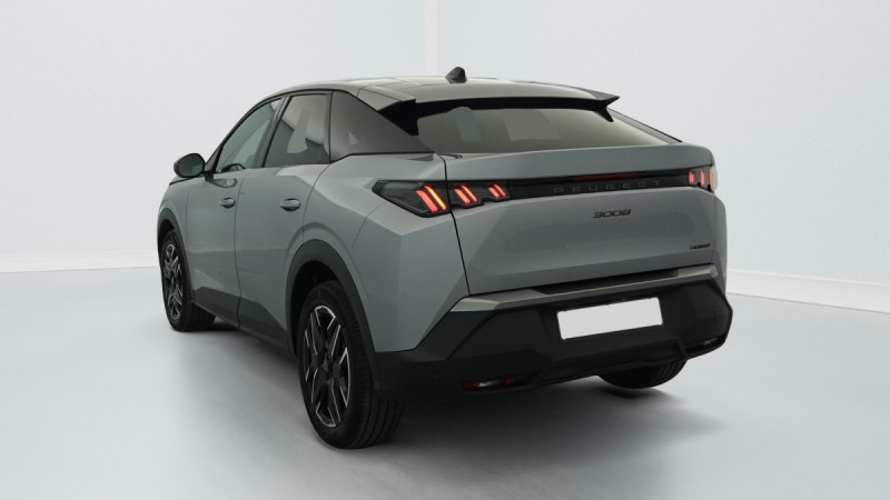 Frein de stationnement électrique / Détection de sous-gonflage indirecte / Essuie-vitre AV à déclenchement automatique / Habitacle et ciel de pavillon Noir / 6 HP (2 tweeters et 2 woofers à l'AV et 2 larges bandes à l'AR) / Rétroviseurs extérieurs dégivrants avec réglage et rabattement électriques, éclairage de seuil / Pack Safety Plus Régulateur / Limiteur de vitesse, Freinage d'urgence automatique avec alerte risque de collision pilotée par caméra et radar, Alerte active de franchissement involontaire de ligne et bas côté, Reconnaissance étendue des panneaux de signalisation et préconisation de vitesse, Alerte attention conducteur : Alerte attention conducteur Régulateur / Limiteur de vitesse Reconnaissance étendue des panneaux de signalisation et préconisation de vitesse Alerte active de franchissement involontaire de ligne et bas côté Freinage d'urgence automatique avec alerte risque de collision pilotée par caméra et radar / Plancher de coffre modulable 2 positions / 4 poignées de maintien rétractables (2 à l'AV et 2 à l'AR) / Jantes alliage 19" diamantées Lulea Noir Orbital, vernis brillant / 6 airbags: frontaux conducteur et passager auto-adaptatifs (passager neutralisable par clé), latéraux conducteur et passager AV (thorax et bassin), rideaux aux places AV et AR (tête et thorax) / Visiopark 1 Caméra de recul & aide au stationnement AR, graphique et sonore / Monogrammes AV: blason PEUGEOT et 3008 / Monogrammes AR 3008 et Hybrid / Eléments de style intérieure Planche de bord moussée avec décor tissu RIMINI chiné et alcôve Graphène, façade et aérateurs Noir laqué avec décor Gris Stène, Panneaux de portes avec décor tissu RIMINI chiné, alcôve Graphène et jonc Gris Stène, accoudoirs TEP Isabella, surpiqûres Quartz à l'AV, Console centrale avec décor tissu RIMINI chiné, façade Noir laqué et jonc Gris Stène, accoudoir tissu RIMINI chiné / Volant compact croûte de cuir avec commandes intégrées Noir laqué, décors Gris Stène / Accès et démarrage mains libres Proximity / Eclairage intérieur Plafonnier AV et liseuses AR à LED, Boite à gants et rangement de console éclairés à LED, Eclairage des caves à pieds AV à LED / PEUGEOT i-Cockpit panoramique avec Double écran HD flottant (2 x 10'') / Vitres AR, custodes et lunette AR teintées / Banquette AR avec dossier rabattable 40/20/40 / PEUGEOT i-Connect Radio DAB, Bluetooth (connexion 2 téléphones), Mirror Screen sans fil (Apple CarPlay / Android Auto), Peugeot Connect SOS & Assistance, 1 prise USB C (Data & charge) / PEUGEOT i-Connect - Connect Plus: Services de sécurité: alarme connectée, Services à distance (E-Remote Control, Remote Control, Find My Car, My Trip Report, Peugeot Skill for Alexa), e-ROUTES par Free2move charge, (Abonnement 6 mois inclus, renouvellement 8 ? / mois) / Eléments de style éxterieur Bandeau entre les projecteurs Noir laqué avec logo 3008. Calandre couleur caisse, écopes latérales Noir laqué, décor inférieur Gris Meteor, jupe inférieure Noir grainé. Vitres AR, vitres de custode et lunette AR surteintées. Lécheurs de vitres masqués. Enjoliveurs de passages de roues et protections inférieures de portes Noir grainé. Bandeau entre les feux AR Noir laqué avec lettrage PEUGEOT. Pare chocs AR avec décor Gris Meteor et jupe inférieure Noir grainé, Monogrammes AV et AR / PEUGEOT i-Connect - Connect One: Fonctionnalités principales à bord (Mises à jour Over The Air, Géolocalisation), Services de sécurité (Appel d?urgence, Peugeot Assistance), Services d?entretien (Télémaintenance, guide d?utilisation digital), (Abonnement 10 ans inclus) / Projecteurs "Peugeot Led Technology" / Sièges AV à réglage en hauteur manuel / Sellerie tissu CRISPY embossé, accompagnement TEP Isabella, écharpe tissu RIMINI chiné, surpiqûres Quartz / 3 prises 12 V (Console centrale, rang 2, coffre) / Rétroviseur intérieur électrochrome / Pare-brise feuilleté acoustique / Lève-vitres AV/AR électriques et séquentiels avec antipincement / / Véhicules équivalents: C5 Aircross - Tiguan - X3