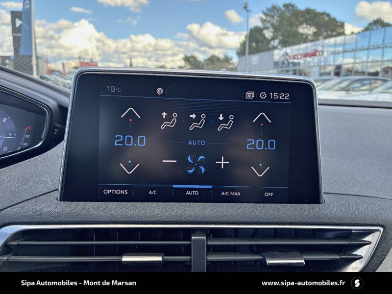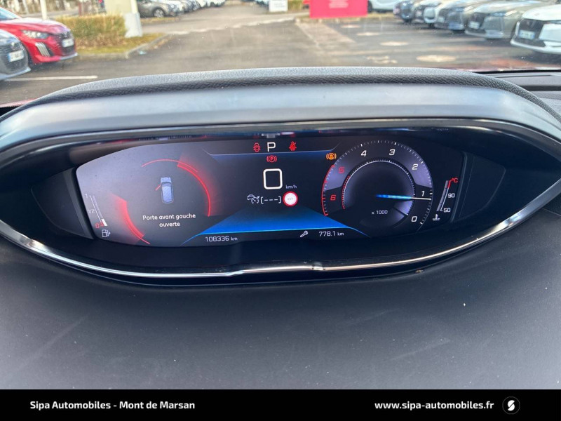 ABS, AFU, REF / Accès et démarrage mains libres / Accoudoir central AV à ouverture papillon, avec compartiment de rangement éclairé et réfrigérable / Aide sonore et graphique au stationnement AR / Airbags frontaux conducteur et passager adaptatifs (passager neutralisable par clé), airbags latéraux conducteur et passager AV.airbags rideaux de tête aux places AV/AR / Air conditionné automatique bi-zone avec aérateurs aux places AR / Appuis-tête à sécurité optimisée réglables en hauteur sur les sièges conducteur et passager AV ainsi que sur les places latérales AR / Avertisseur de temps de conduite / Banquette AR rabattable 1/3 - 2/3 (avec modularité "Magic Flat" et commandes dans le coffre) avec accoudoir et trappe à skis / Boîte à gants floquée et éclairée / Boitiers de rétroviseurs extérieurs Noir Perla Nera / Bouclier AV exclusif et calandre à damier chromé / Calandre avec jonc périphérique et facettes chromés / Canules d'echappement de style chromées / Ceintures de sécurité AR 3 points à enrouleur (x3) avec prétensionneurs et limiteurs d'effort aux places latérales / Ceintures de sécurité AV 3 points à enrouleur, réglables en hauteur avec prétensionneurs et limiteurs d'effort / Commande de verrouillage à distance (2 plips) / Console centrale AV avec 2 porte-gobelets / Contrôle dynamique de stabilité CDS avec antipatinage électronique ASR / Décors de planche de bord et panneaux de portes en maille "Brumeo" / Détection de sous-gonflage indirecte / Direction assistée électrique, colonne de direction réglable en hauteur et profondeur (mécanique) / Driver Sport Pack / Ecran tactile capacitif 8" et "Toggles Switches" / Enjoliveur d'arc de pavillon en inox / Enjoliveur en inox sur les protecteurs de bas de portes / Essuie-vitre AR avec enclenchement automatique en marche AR / Essuie-vitre AV avec système de lavage "Magic Wash" / Fixations pour 3 sièges enfants suivant norme ISOFIX aux places passager AV et latérales AR / Fonction "Mirror Screen" / Frein de stationnement électrique avec aide au démarrage en pente / Habitacle et ciel de pavillon Noir Mistral / Indicateur de rapport conseillé / Inserts d'ailes AV chromés / Jantes alliage 18" "Detroit" bi-ton diamantées / Jonc de vitres en inox / Kit de dépannage de pneumatique / Lève-vitres AV/AR électriques et séquentiels avec antipincement / Lunette AR chauffante avec antennes sérigraphiées / Nouveau PEUGEOT i-Cockpit avec dalle numérique tête haute / Pack City 1 / Pack Eclairage d'ambiance / Pack Safety Plus / Pack Visibilité / Passages de roues rapportés noirs / Peinture opaque Gris Hurricane / Peugeot Connect / Plafonnier AV avec spots de lecture (x2) et plafonnier AR à extinction temporisée / Plancher de coffre 2 positions / Poches/filets aumonières au dos des sièges AV / Poignées de maintien (x4) rétractables avec frein (crochets pour cintres aux places AR) / Poignées de portes couleur carrosserie / Prise 12 V (x3 : zone connectique, AR de console et coffre) / Prise USB (dans la zone connectique) / Projecteurs "Peugeot Full Led Technology" / Radio 6 HP, bi-tuner compatible MP3 et connectivité Bluetooth (audio streaming, kit mains libres), avec commandes au volant, écran tactile capacitif 8" / Sabots de pare-chocs AV gris métallisé / Sécurité enfants électrique des vitres AR / Sellerie TEP & Tissu "Imila" avec médaillons de portes AV en injecté / Seuils de portes AV en Inox / Siège passager AV mécanique avec mise en tablette / Siège passager AV mécanique réglable en hauteur / Spots de lecture (2x) AR / Surtapis AV/AR / Toit "Black Diamond" (toit Noir Perla Nera) / Vitres latérales AR et lunette AR surteintées / Volant Cuir pleine fleur perforé avec bagues chromées et badge GT Line