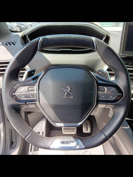 Aide graphique et sonore au stationnement AR / Air conditionné automatique bi-zone avec aérateurs aux places AR / Barres de toit longitudinales profilée en Aluminium / Driver Sport Pack / Eclairage intérieur LED: plafonnier tactile 3 spots + 2 LEDs d'ambiance, 2 liseuses AR, pare-soleil, boîte à gants, accoudoir central, zone connectique, caves à pied, zone coffre (x2) / Essuie-vitre AR avec enclenchement automatique en marche AR / Frein de stationnement électrique avec aide au démarrage en pente / Jantes alliage 18" "Detroit" bi-ton diamantées Noir Onyx / Kit de dépannage de pneumatique : compresseur 12 volts, flacon de produit de colmatage, anneau de remorquage, deux cales de roue, manivelle de frein de stationnement électrique / Pack City 1 / Pack Drive Assist Plus / Pack Eclairage d'ambiance / Pack Safety Plus / Pack Visibilité / Peugeot Connect: Ecran tactile capacitif 10'' HD,navigation 3D connectée avec reconnaissance vocale aux services de Navigation connectée TomTom, SOS & Assistance, Teleservices / Projecteurs "Peugeot Full LED Technology" avec correction automatique de site, fonction Eclairage Virage Statique,"Foggy Mode" et feux diurnes à LED prolongés dans les projecteurs / Pédalier et repose-pied conducteur aluminium / Volant cuir fleur perforé avec bagues chromées et badge GT / "Toggle Switches" chromés (touches "piano" d'activation des fonctions de l'écran tactile) / Accès et démarrage mains libres / Airbags frontaux conducteur et passager adaptatifs (passager neutralisable par clé), airbags latéraux conducteur et passager AV. airbags rideaux de tête aux places AV/AR / Appuis-tête à sécurité optimisée réglables en hauteur sur les sièges conducteur et passager AV ainsi que sur les places latérales AR / Avertisseur de temps de conduite / Bandeau de pare-chocs AR chromé / Banquette AR rabattable 1/3 - 2/3 (avec modularité "Magic Flat" et commandes dans le coffre) avec accoudoir et trappe à skis / Boîte à gants floquée et éclairée / Calandre GT avec design évolutif chromé / Canules d'echappement de style chromées / Ceintures de sécurité 3 points à enrouleur (x3) au 2ème rang, avec prétensionneurs et limiteurs d'effort aux places latérales / Ceintures de sécurité AV 3 points à enrouleur, réglables en hauteur avec prétensionneurs et limiteurs d'effort / Commande de verrouillage à distance (2 plips) / Commandes intérieures de portes chromées / Contrôle dynamique de stabilité CDS avec antipatinage électronique ASR / Coques de rétroviseurs extérieurs Noir Perla Nera / Direction assistée électrique, colonne de direction réglable en hauteur et profondeur (mécanique) / Drive Mode : Choix de 2 modes de conduite (Eco ou Sport) / Décors de planche de bord et panneaux de portes Alcantara Gris Greval / Détection de sous-gonflage indirecte / Enjoliveur d'arc de pavillon en inox / Enjoliveur en inox sur les protecteurs de bas de portes / Essuie-vitre AV avec système de lavage "Magic Wash" / Habitacle et ciel de pavillon Noir Mistral / Indicateur de rapport conseillé / Inserts d'ailes AV chromés / Lunette AR chauffante avec antennes sérigraphiées / Lève-vitres AV/AR électriques et séquentiels avec antipincement / Mirror Screen (compatible Mirrorlink, Apple CarPlay, Android Auto) / Passages de roues rapportés noirs / Peugeot i-Cockpit avec combiné tête haute numérique reconfigurable, écran tactile capacitif 10" et volant compact multi-fonctions / Plafonniers AV et AR avec spot de lecture / Planche de bord surpiquée / Plancher de coffre 2 positions / Poches/filets aumonières au dos des sièges AV / Prise 12 V (x3 : zone connectique, AR de console et coffre) / Prise USB (dans la zone connectique) / Prises USB de charge (x2) au 2ème rang / Radio avec fonction DAB,bi-tuner compatible MP3 et connectivité Bluetooth (audio streaming, kit mains libres), avec commandes au volant, 6 HP, écran tactile capacitif 10" HD / Reconnaissance étendue des panneaux (Stop, Sens interdit) et préconisation des panneaux de vitesse / Rétroviseur intérieur photosensible frameless - sans cadre / Sabots de pare-chocs AV gris métallisé / Seuils de portes AV en Inox / Siège conducteur à réglage lombaire manuel / Siège passager AV mécanique avec mise en tablette / Sièges AV mécaniques à réglage manuel en hauteur / Surtapis AV/AR / Système d'antiblocage des roues ABS avec répartiteur électronique de freinage REF et assistance au freinage d'urgence AFU / Sécurité enfants électrique des vitres AR / Teinte métallisée Bleu Celebes / Toit "Black Diamond" (toit Noir Perla Nera) / Vitres latérales AR et lunette AR surteintées
