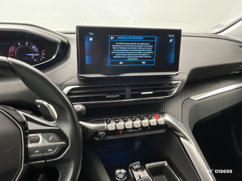 Reconnaissance étendue des panneaux / Sièges AV mécaniques à réglage manuel en hauteur / Eclairage intérieur à LED / Peugeot i-Cockpit avec combiné tête haute numérique reconfigurable, écran tactile capacitif 10" et volant compact multi-fonctions / Pack City 1 / Mirror Screen (compatible Mirrorlink, Apple CarPlay, Androïd Auto) / PEUGEOT Connect SOS & Assistance et Teleservices / Eclairage intérieur à LED: plafonniers / Reconnaissance étendue des panneaux (Stop, Sens interdit) et preconisation de vitesse / Projecteurs "Peugeot LED Technology" avec feux diurnes à LED sous projecteurs / Essuie-vitre AV avec système de lavage "Magic Walsh" / Essuie-vitre AR avec enclenchement automatique en marche AR / Lunette AR chauffante avec antennes sérigraphiées / Poches/filets aumonières au dos des sièges AV / Banquette AR rabattable 1/3 - 2/3 (avec modularité "Magic Flat"et commandes dans le coffre) avec accoudoir et trappe à skis / Prise USB (dans la zone connectique) / Prise 12V (x3 : zone connectique, AR de console et coffre) / Lunette et vitres latérales AR surteintée / Aide graphique et sonore au stationnement AR / Air conditionné automatique bi-zone avec aérateurs aux places AR / Décors intérieurs (baguettes de planche de bord et panneaux de portes, enjoliveur de console) chromés / Commande de verrouillage à distance (2 plips) / Airbags frontaux conducteur et passager adaptatifs (passager neutralisable par clé), airbags latéraux conducteur et passager AV, airbags rideaux de tête aux places AV et AR / Ceintures de sécurité 3 points à enrouleur (x3) au 2ème rang, avec prétensionneurs et limiteurs d'effort aux places latérales / Kit de dépannage de pneumatique : compresseur 12 volts, flacon de produit de colmatage, anneau de remorquage, deux cales de roue, manivelle de frein de stationnement électrique / Système d'antiblocage des roues ABS avec répartiteur électronique de freinage REF et assistance au freinage d?urgence AFU / "Toggle Switches" chromés (touches "piano" d'activation des fonctions de l'écran tactile) / Siège conducteur mécanique avec réglage lombaire / Calandre á damiers chromés / Frein de stationnement électrique avec aide au démarrage en pente / Peugeot i-Cockpit avec combiné tête haute numérique haute qualité d'affichage, écran tactile capacitif 10" et volant compact multi-fonctions / Navigation 3D connectée avec écran tactile capacitif 10" HD Avec reconnaissance vocale, cartographie Europe, services de Navigation connectée TomTom 3 ans inclus, connexion automatique et permanente via carte SIM intégrée au véhicule / Peugeot i-Cockpit avec combiné tête haute numérique haute qualité d'affichage, écran tactile capacitif 10" HD et volant compact multi-fonctions / Sabot de pare-chocs AV gris métallisé / Pack Visibilité / Radio Peugeot 1, 2 HP, antenne et cablage / Lève-vitres électriques AV et AR séquentiels avec antipincement / Détection de sous-gonflage indirecte / Coques de rétroviseurs extérieurs Noir Perla Nera / Seuils de portes AV inox / Vitres latérales AR et lunette AR surteintées / Avertisseur de temps de conduite / Enjoliveur d'arc de pavillon en inox / Décors de planche de bord et panneaux de portes aspect carbone / Plancher de coffre 2 positions / Inserts d'ailes AV chromés / Pack Safety Plus / Enjoliveur en inox sur les protecteurs de bas de portes / Sabots de pare-chocs AV gris métallisé / Appuis-tête à sécurité optimisée réglables en hauteur sur les sièges conducteur et passager AV ainsi que sur les places AR / Ceintures de sécurité AV 3 points à enrouleur, réglables en hauteur avec prétensionneurs et limiteurs d'effort / Contrôle dynamique de stabilité CDS avec antipatinage électronique ASR / Indicateur de rapport conseillé / Sécurité enfants électrique des vitres AR / Passages de roues rapportés noirs / Décors intérieurs chromés / Accoudoir central AV à ouverture papillon, avec compartiment de rangement éclairé et réfrigérable / Boîte à gants floquée et éclairée / Direction assistée électrique, colonne de direction réglable en hauteur et profondeur (mécanique) / Jantes alliage 18" "Detroit" bi-ton diamantées Gris Storm / Drive Mode : Choix de 2 modes de conduite (Eco ou Sport) / Radio avec fonction DAB,bi-tuner compatible MP3 et connectivité Bluetooth (audio streaming, kit mains libres), avec commandes au volant, 6 HP, écran tactile capacitif 8'' / Peugeot Connect: Ecran tactile capacitif 10'' HD,navigation 3D connectée avec reconnaissance vocale aux services de Navigation connectée TomTom, SOS & Assistance, Teleservices / Bandeau de pare-chocs AR chromé / Fonction "Mirror Screen" (Apple CarPlay / Android Auto ) / Garnissage TEP & Tissu 'Colyn' Mistral / Sièges AV mécaniques réglages en hauteur / Plafonnier AV et AR avec spot de lecture / Siège conducteur à réglage lombaire manuel