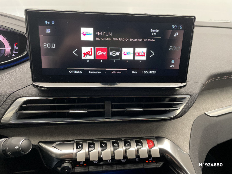 Avertisseur de temps de conduite / Lunette AR chauffante avec antennes sérigraphiées / Habitacle et ciel de pavillon Noir Mistral / Planche de bord surpiquée / Sabots de pare-chocs AV gris métallisé / Boîte à gants floquée et éclairée / Essuie-vitre AR avec enclenchement automatique en marche AR / Appuis-tête à sécurité optimisée réglables en hauteur sur les sièges conducteur et passager AV ainsi que sur les places latérales AR / Plancher de coffre 2 positions / Accès et démarrage mains libres / Accoudoir central AV à ouverture papillon, avec compartiment de rangement éclairé et réfrigérable / "Toggle Switches" chromés (touches "piano" d'activation des fonctions de l'écran tactile) / Système HI-FI Premium FOCAL - La signature acoustique française 10 haut-parleurs, Woofers / médiums haute-fidélité : Technologie Polyglass, Tweeters TNF : Technologie de dômes inversés en aluminium, Subwoofer : Technologie triple bobine Power Flower 200 mm, Amplification active 12 voies 515 Watts : Technologie hybride Classe AB / Classe D / Teinte métallisée Bleu Celebes / Pack Visibilité / Volant cuir fleur perforé avec bagues chromées et badge GT / Pack Electrique & Massage (siège conducteur 'AGR') / Coques de rétroviseurs extérieurs Noir Perla Nera / Seuils de portes AV en Inox / Plafonniers AV et AR avec spot de lecture / Système d'antiblocage des roues ABS avec répartiteur électronique de freinage REF et assistance au freinage d?urgence AFU / Banquette AR rabattable 1/3 - 2/3 (avec modularité "Magic Flat" et commandes dans le coffre) avec accoudoir et trappe à skis / Poches/filets aumonières au dos des sièges AV / Peugeot i-Cockpit avec combiné tête haute numérique reconfigurable, écran tactile capacitif 10" et volant compact multi-fonctions / Mirror Screen (compatible Mirrorlink, Apple CarPlay, Android Auto) / Airbags frontaux conducteur et passager adaptatifs (passager neutralisable par clé), airbags latéraux conducteur et passager AV, airbags rideaux de tête aux places AV et AR / Rétroviseur intérieur photosensible frameless - sans cadre / Barres de toit longitudinales profilée en Aluminium / Air conditionné automatique bi-zone avec aérateurs aux places AR / Surtapis AV et AR / Kit de dépannage de pneumatique : compresseur 12 volts, flacon de produit de colmatage, anneau de remorquage, deux cales de roue, manivelle de frein de stationnement électrique / Prise USB (dans la zone connectique) / Prise 12V (x3 : zone connectique, AR de console et coffre) / Vitres AV feuilletées acoustiques / Aide graphique et sonore au stationnement AR / Ceintures de sécurité 3 points à enrouleur (x3) au 2ème rang, avec prétensionneurs et limiteurs d'effort aux places latérales / Pack City 1 / Décors intérieurs (baguettes de planche de bord et panneaux de portes, enjoliveur de console) chromés / Commande de verrouillage à distance (2 plips) / Indicateur de rapport conseillé / Détection de sous-gonflage indirecte / Frein de stationnement électrique avec aide au démarrage en pente / Peugeot Connect: Ecran tactile capacitif 10'' HD,navigation 3D connectée avec reconnaissance vocale aux services de Navigation connectée TomTom, SOS & Assistance, Teleservices / Bandeau de pare-chocs AR chromé / Contrôle dynamique de stabilité CDS avec antipatinage électronique ASR / Drive Mode : Choix de 2 modes de conduite (Eco ou Sport) / Radio avec fonction DAB,bi-tuner compatible MP3 et connectivité Bluetooth (audio streaming, kit mains libres), avec commandes au volant, 6 HP, écran tactile capacitif 10" HD / Prises USB de charge (x2) au 2 rang / Pack Drive Assist Plus / Jantes alliage 19" 'San Francisco' bi-ton diamantées Noir Onyx mat / Décors de planche de bord et panneaux de portes Alcantara Gris Greval / Pack Eclairage d'ambiance / Commandes de lève-vitres avec inserts chromés / Canules d'echappement de style chromées / Reconnaissance étendue des panneaux (Stop, Sens interdit) et préconisation des panneaux de vitesse / Lève-vitres AV et AR électriques séquentiels avec antipincement / Ecrous de roues antivol / Calandre GT avec design évolutif chromé / Pédalier et repose-pied conducteur aluminium / Eclairage intérieur LED: plafonnier tactile 3 spots + 2 LEDs d'ambiance, 2 liseuses AR, pare-soleil, boîte à gants, accoudoir central, zone connectique, caves à pied, zone coffre (x2) / Siège passager AV mécanique avec mise en tablette / Vitres latérales AR et lunette AR surteintées / Essuie-vitre AV avec système de lavage "Magic Wash" / Projecteurs "Peugeot Full LED Technology" avec correction automatique de site, fonction Eclairage Virage Statique,"Foggy Mode" et feux diurnes à LED prolongés dans les projecteurs / Direction assistée électrique, colonne de direction réglable en hauteur et profondeur (mécanique) / Sécurité enfants électrique des vitres AR / Driver Sport Pack / Passages de roues rapportés noirs / Jonc de vitres en inox / Garnissage TEP et Alcantara Mistral / Enjoliveur d'arc de pavillon en inox / Enjoliveur en inox sur les protecteurs de bas de portes / Toit "Black Diamond" (toit Noir Perla Nera) / Inserts d'ailes AV chromés / Pack City 2 / Pack Safety Plus / Ceintures de sécurité AV 3 points à enrouleur, réglables en hauteur avec prétensionneurs et limiteurs d'effort / Hayon mains libres