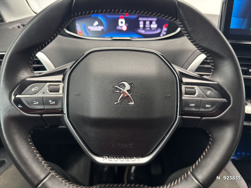 Badge Style sur les ailes AV / Lunette AR chauffante avec antennes sérigraphiées / Jantes alliage 17" "Chicago" / Appuis-tête à sécurité optimisée réglables en hauteur sur les sièges conducteur et passager AV ainsi que sur les places latérales AR / Inserts d'ailes AV chromés / Avertisseur de temps de conduite / Enjoliveur en inox sur les protecteurs de bas de portes / Ceintures de sécurité AV 3 points à enrouleur, réglables en hauteur avec prétensionneurs et limiteurs d'effort / Surtapis / Direction assistée électrique, colonne de direction réglable en hauteur et profondeur (mécanique) / Calandre á damiers chromés / Sécurité enfants électrique des vitres AR / Passages de roues rapportés noirs / Projecteurs "Peugeot LED Technology" avec feux diurnes à LED sous projecteurs / Vitres latérales AR et lunette AR surteintées / Ceintures de sécurité 3 points à enrouleur (x3) au 2ème rang, avec prétensionneurs et limiteurs d'effort aux places latérales / Prise 12V (x3 : zone connectique, AR de console et coffre) / Kit de dépannage de pneumatique : compresseur 12 volts, flacon de produit de colmatage, anneau de remorquage, deux cales de roue, manivelle de frein de stationnement électrique / Coques de rétroviseurs couleur carrosserie / Surtapis AV et AR / Visiopark 1 : caméra de recul avec restitution sur l'écran tactile d'une vue AR et d'une vue de dessus de l'environnement AR du véhicule / Airbags frontaux conducteur et passager adaptatifs (passager neutralisable par clé), airbags latéraux conducteur et passager AV, airbags rideaux de tête aux places AV et AR / Sièges AV mécaniques à réglage manuel en hauteur / Air conditionné automatique bi-zone avec aérateurs aux places AR / Peugeot i-Cockpit avec combiné tête haute numérique reconfigurable, écran tactile capacitif 8" et volant compact multi-fonctions / Protecteurs de portes avec insert inox / Etiquettes "STYLE" sur les sièges AV / Garnissage Tissu Tri matière PNEUMA 3D, surpiqûre Bleu Azur / Mirror Screen (compatible Mirrorlink, Apple CarPlay, Android Auto) / Poches/filets aumonières au dos des sièges AV / Système d'antiblocage des roues ABS avec répartiteur électronique de freinage REF et assistance au freinage d?urgence AFU / Reconnaissance étendue des panneaux (Stop, Sens interdit) et préconisation des panneaux de vitesse / Lève-vitres AV et AR électriques séquentiels avec antipincement / Navigation 3D connectée avec écran tactile capacitif 10" HD Avec reconnaissance vocale, cartographie Europe, services de Navigation connectée TomTom 3 ans inclus, connexion automatique et permanente via carte SIM intégrée au véhicule / Eco Mode / Radio avec fonction DAB,bi-tuner compatible MP3 et connectivité Bluetooth (audio streaming, kit mains libres), avec commandes au volant, 6 HP, écran tactile capacitif 8'' / Pack Safety avec Distance alert / Peugeot Connect: Ecran tactile capacitif 10'' HD,navigation 3D connectée avec reconnaissance vocale aux services de Navigation connectée TomTom, SOS & Assistance, Teleservices / Drive Mode : Choix de 2 modes de conduite (Eco ou Sport) / Contrôle dynamique de stabilité CDS avec antipatinage électronique ASR / Indicateur de rapport conseillé / Détection de sous-gonflage indirecte / Pack City 1 / Décors intérieurs (baguettes de planche de bord et panneaux de portes, enjoliveur de console) chromés / Commande de verrouillage à distance (2 plips) / Frein de stationnement électrique avec aide au démarrage en pente / Lunette et vitres latérales AR surteintée / Prise USB (dans la zone connectique) / Banquette AR rabattable 1/3 - 2/3 (avec modularité "Magic Flat" et commandes dans le coffre) avec accoudoir et trappe à skis / Aide graphique et sonore au stationnement AR / Plafonniers AV et AR avec spot de lecture / Coques de rétroviseurs extérieurs Noir Perla Nera / Seuils de portes AV en Inox / Alerte active de franchissement involontaire de ligne et bas côté / Sièges AV mécaniques réglages en hauteur / Peugeot i-Cockpit avec combiné tête haute numérique haute qualité d'affichage écran tactile capacitif 8" et volant compact multi-fonctions / "Toggle Switches" chromés (touches "piano" d'activation des fonctions de l'écran tactile) / Barres de toit longitudinales Noir Satin / Pack Visibilité / Accoudoir central AV à ouverture papillon, avec compartiment de rangement éclairé et réfrigérable / Essuie-vitre AV avec système de lavage "Magic Wash" / Sabots de pare-chocs AV gris métallisé / Boîte à gants floquée et éclairée / Enjoliveur d'arc de pavillon en inox / Plancher de coffre 2 positions / Essuie-vitre AR avec enclenchement automatique en marche AR / Décors de planche de bord et panneaux de portes aspect carbone