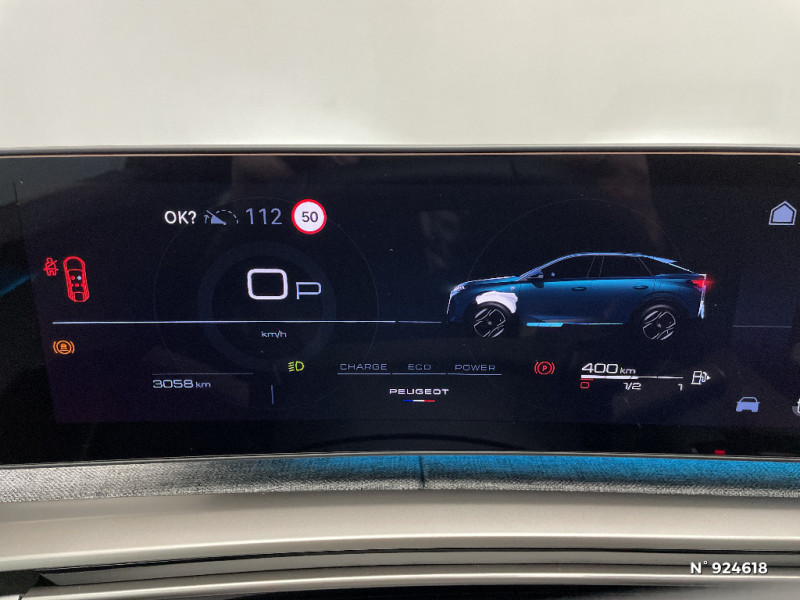 Boîte de vitesse automatique, séquentielle (6 rapports) / PEUGEOT i-Connect Advanced - Connect Plus: Reconnaissance vocale connectée en langage naturel, ChatGPT (Disponibilité ultérieurement) Services de sécurité: alarme connectée (Si véhicule équipé de l?alarme,) Services à distance (Remote Control, Find My Car, My Trip Report, Peugeot Skill for Alexa), Fonctions de Navigation (Trafic en temps réel, prévisions météorologiques,parking, recherche TomTom, limitations de vitesse, prix du carburant, mise à jour cartographie Over The Air, Send to Nav, Geofenci / Frein de stationnement électrique / Sellerie tissu NEW UZIRIS embossé, accompagnement TEP Isabella, écharpe tissu RIMINI chiné, surpiqûres Iced Clay / Eclairage intérieur Miroirs de courtoisie conducteur et passager occultables éclairés à LED / Pack Safety Plus Régulateur / Limiteur de vitesse, Freinage d'urgence automatique avec alerte risque de collision et protection des usagers de la route vulnérables (piétons, cyclistes,... ) Alerte active de franchissement involontaire de ligne et bas côté, Reconnaissance étendue des panneaux de signalisation et préconisation de vitesse, Alerte attention conducteur / 2 prises 12 V (Console centrale, coffre) / 6 haut-parleurs (2 tweeters et 2 woofers à l'AV et 2 larges bandes à l'AR) / Rétroviseurs extérieurs dégivrants avec réglage et rabattement électriques,éclairage de seuil / Sièges AV à réglage en hauteur manuel / 4 poignées de maintien rétractables (2 à l'AV et 2 à l'AR) / Essuie-vitre AV à déclenchement automatique / PEUGEOT i-Cockpit panoramique avec écran incurvé et flottant 21'' HD / Plancher de coffre modulable 2 positions / Recharge smartphone sans fil (puissance 15W) / PEUGEOT i-Connect Advanced - Connect Plus: Reconnaissance vocale connectée en langage naturel, ChatGPT (Disponibilité ultérieurement) Services de sécurité: alarme connectée (Si véhicule équipé de l?alarme,) Services à distance (E Remote Control, Remote Control, Find My Car, My Trip Report, Peugeot Skill for Alexa), Fonctions de Navigation (Trafic en temps réel, prévisions météorologiques,parking, recherche TomTom, limitations de vitesse, prix du carburant, mise à jour cartographie Over The Air, Send to Nav, Geofenci / Pack Safety Plus Régulateur / Limiteur de vitesse, Freinage d'urgence automatique avec alerte risque de collision, Alerte active de franchissement involontaire de ligne et bas côté, Reconnaissance étendue des panneaux de signalisation et préconisation de vitesse, Alerte attention conducteur / Pédalier et repose pied aluminium / Lève-vitres AV et AR électriques séquentiels avec antipincement / Eléments de style éxterieur Bandeau entre les projecteurs Noir laqué avec logo '3008'. Calandre couleur caisse, écopes latérales Noir laqué, décor inférieur Gris Meteor, jupe inférieure Noir grainé. Vitres AR, vitres de custode et lunette AR surteintées. Lécheurs de vitres masqués. Enjoliveurs de passages de roues et protections inférieures de portes Noir grainé. Bandeau entre les feux AR Noir laqué avec lettrage 'PEUGEOT'. Pare chocs AR avec décor Gris Meteor et jupe inférieure Noir grainé, Monogrammes AV et AR / Pare-brise feuilleté acoustique / Commutation automatique des feux de route / Surtapis AV et AR avec surpiqûres Iced Clay et logo 'GT' / Volant compact, cuir fleur lisse et perforé avec commandes intégrées Noir Laqué, décors Cast Iron, surpiqûres Iced Clay, insert Noir laqué avec badge ?GT? / Accès et démarrage mains libres Proximity 2 Télécommandes 3 boutons (verrouillage, coffre, déverrouillage) / Vitres AR, custodes et lunette AR teintées / Détection de sous-gonflage indirecte / Monogrammes AR '3008' et 'Hybrid / Drive Assist - Régulateur de vitesse adaptatif avec fonction Stop & Go / PEUGEOT i-Cockpit panoramique avec écran incurvé et flottant 21?? HD / PEUGEOT i-Toggles virtuels avec 10 raccourcis personnalisables / Siège conducteur à réglage lombaire manuel / Projecteurs PEUGEOT PIXEL LED Eclairage adaptatif, commutation automatique des feux de route, feux de route avec fonctions anti éblouissement et boost / Monogrammes ailes AV: 'blason PEUGEOT' / Volant chauffant / Commutation adaptative des projecteurs / Eclairage intérieur Miroirs de courtoisie conducteur et passager occultables éclairés à LED, Plafonnier AV et lisseuses AR i-DOME tactiles à LED / Toit et becquet AR Black Diamond / Hayon motorisé avec accès mains libres / Eclairage d'ambiance indirect, jour & nuit sur la planche de bord, les panneaux de portes AV et sous l'écran panoramique 21'', associé aux modes de conduite, personnalisable en 8 couleurs / PEUGEOT i-Connect Advanced Navigation 3D connectée, 4 prises USB: 1 prise USB C (Data & charge) et 1 prise USB C (Charge) à l'AV, 2 prises USB C (Charge) à l'AR / Jantes alliage 19" diamantées BREDA Noir Orbital, vernis brillant / Banquette AR avec dossier rabattable 40/20/40 / Monogrammes AV: 'blason PEUGEOT' et '3008' / 6 airbags: frontaux conducteur et passager auto-adaptatifs (passager neutralisable par clé), latéraux conducteur et passager AV (thorax et bassin), rideaux aux places AV et AR (tête et thorax) / Visiopark 1 Caméra de recul & aide au stationnement AV et AR, graphique et sonore / Seuil de portes AV inox avec lettrage ?PEUGEOT? / Habitacle et ciel de pavillon noir / Eléments de style intérieure Planche de bord moussée avec décor tissu RIMINI chiné, décor d?alcôve en Aluminium sérigraphié, façade et aérateurs Noir laqué avec décor Cast Iron, Panneaux de portes avec décor tissu RIMINI chiné, décor d?alcôve en Aluminium sérigraphié et jonc Cast Iron, accoudoirs TEP Isabella, surpiqûres Iced Clay à l' AV, Console centrale avec décor tissu RIMINI chiné, façade Noir laqué et jonc Cast Iron, accoudoir tissu RIMINI chiné