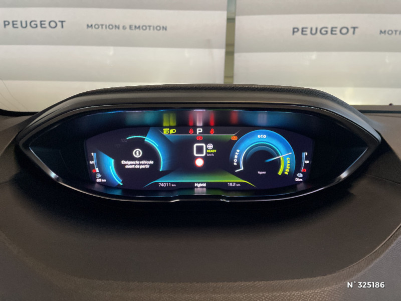 Siège passager AV avec mise en tablette / Siège passager AV mécanique avec mise en tablette / Sièges AV mécaniques à réglage manuel en hauteur / Sièges AV mécaniques réglages en hauteur / Surtapis AV/AR / Passages de roues rapportés noirs / Pédalier et repose-pied conducteur aluminium / Pédalier et repose-pied conducteur en aluminium / Peugeot Connect: Ecran tactile capacitif 10'' HD,navigation 3D connectée avec reconnaissance vocale aux services de Navigation connectée TomTom, SOS & Assistance, Teleservices / PEUGEOT Connect SOS & Assistance et Teleservices / PEUGEOT Connect SOS & Assistance et Teleservices / Peugeot i-Cockpit avec combiné tête haute numérique haute qualité d'affichage, écran tactile capacitif 10" et volant compact multi-fonctions / Peugeot i-Cockpit avec combiné tête haute numérique haute qualité d'affichage, écran tactile capacitif 10" HD et volant compact multi-fonctions / Peugeot i-Cockpit avec combiné tête haute numérique reconfigurable, écran tactile capacitif 10" et volant compact multi-fonctions / Plafonniers AV et AR avec spot de lecture / Planche de bord surpiquée / Système d'antiblocage des roues ABS avec répartiteur électronique de freinage REF et assistance au freinage d¿urgence AFU / Teinte métallisée Bleu Celebes / "Toggle Switches" chromés (touches "piano" d'activation des fonctions de l'écran tactile) / Toggle Switches chromés (touches piano d'activation des fonctions de l'écran tactile) / Toit "Black Diamond" (toit Noir Perla Nera) / Trappe de recharge électrique sur l'aile AR gauche, avec indicateur lumineux d'état de recharge / Vitres AV feuilletées acoustiques / Vitres latérales AR et lunette AR surteintées / Volant cuir fleur perforé avec bagues chromées et badge GT / Plancher de coffre fixe avec articulation pour accès au coffre de rangement du câble de recharge / Poches/filets aumonières au dos des sièges AV / Pré-chauffage / climatisation du véhicule à distance / Prise USB (dans la zone connectique) / Prise 12 V (x3 : zone connectique, AR de console et coffre) / Prises USB de charge (x2) au 2ème rang / Reconnaissance étendue des panneaux (Stop, Sens interdit) et préconisation des panneaux de vitesse / Rétroviseur intérieur photosensible frameless (sans cadre) avec témoin lumineux d'information roulage mode ELECTRIC / Rétroviseur intérieur photosensible sans cadre, avec témoin lumineux de roulage en mode Electric / Sabot de pare-chocs AV gris métallisé / Sabots de pare-chocs AV gris métallisé / Sécurité enfants électrique des vitres AR / Sélecteur de modes de conduite (Electric, Hybrid, Sport) / Projecteurs "Peugeot Full LED Technology" avec correction automatique de site, fonction Eclairage Virage Statique,"Foggy Mode" et feux diurnes à LED prolongés dans les projecteurs / Radio avec fonction DAB,bi-tuner compatible MP3 et connectivité Bluetooth (audio streaming, kit mains libres), avec commandes au volant, 6 HP, écran tactile capacitif 10" HD / Sellerie TEP & "Alcantara" Gris Gréval / Seuils de portes AV en Inox / Siège conducteur à réglage lombaire manuel / Siège conducteur mécanique avec réglage lombaire / Ceintures de sécurité AV 3 points à enrouleur, réglables en hauteur avec prétensionneurs et limiteurs d'effort / Ceintures de sécurité 3 points à enrouleur (x3) au 2ème rang, avec prétensionneurs et limiteurs d'effort aux places latérales / Chargeur embarqué 3,7 kW / Chargeur embarqué 3,7kW : câble de recharge T2 avec prise murale / Commande de verrouillage à distance (2 plips) / Direction assistée électrique, colonne de direction réglable en hauteur et profondeur (mécanique) / Drive Mode : Choix de 2 modes de conduite (Eco ou Sport) / Driver Sport Pack / Eclairage intérieur LED : plafonnier et rangement / Eclairage intérieur LED: plafonnier tactile 3 spots + 2 LEDs d'ambiance, 2 liseuses AR, pare-soleil, boîte à gants, accoudoir central, zone connectique, caves à pied, zone coffre (x2) / Enjoliveur d'arc de pavillon en inox / Enjoliveur en inox sur les protecteurs de bas de portes / Essuie-vitre AR avec enclenchement automatique en marche AR / Essuie-vitre AV avec système de lavage "Magic Wash" / Fonction "Mirror Screen" (Apple CarPlay / Android Auto ) / Frein de stationnement électrique avec aide au démarrage en pente / Garnissage Mi-TEP/Tissu "Belomka" / Garnissage Mi-TEP/Tissu "Belomka" avec surpiqûres Aikinite / Garnissage TEP & "Alcantara" Gris Gréval / Garnissage Tissu BELOMKA / TEP / Habitacle et ciel de pavillon Noir Mistral / Indicateur de rapport conseillé / Inserts d'ailes AV chromés / Jantes alliage 18" "Detroit" bi-ton diamantées Noir Onyx / Jonc de vitres en inox / Joncs de vitres latérales en inox / Kit de dépannage de pneumatique : compresseur 12 volts, flacon de produit de colmatage, anneau de remorquage, deux cales de roue, manivelle de frein de stationnement électrique / Lève-vitres AV/AR électriques et séquentiels avec antipincement / Lunette AR chauffante avec antennes sérigraphiées / Lunette et vitres latérales AR surteintée / Mirror Screen (compatible Mirrorlink, Apple CarPlay, Android Auto) / Navigation 3D connectée avec écran tactile capacitif 10" HD Avec reconnaissance vocale, cartographie Europe, services de Navigation connectée TomTom 3 ans inclus, connexion automatique et permanente via carte SIM intégrée au véhicule / Pack City 1 / Pack Drive Assist Plus / Pack Drive Assist Plus / Pack Drive Assist Plus / Pack Drive Assist Plus / Pack Eclairage d'ambiance / Pack Safety Plus / Pack Visibilité / Commandes de lève-vitres avec inserts chromés / Commandes intérieures de portes chromées / Contrôle de la charge de la batterie à distance / Contrôle dynamique de stabilité CDS avec antipatinage électronique ASR / Coques de rétroviseurs extérieurs Noir Perla Nera / Décors de planche de bord et panneaux de portes Alcantara Gris Greval / Décors intérieurs (baguettes de planche de 