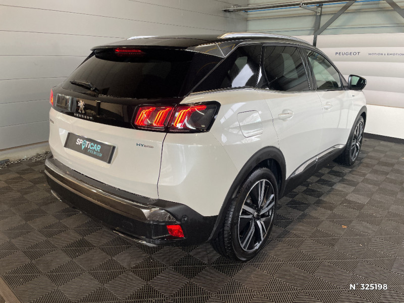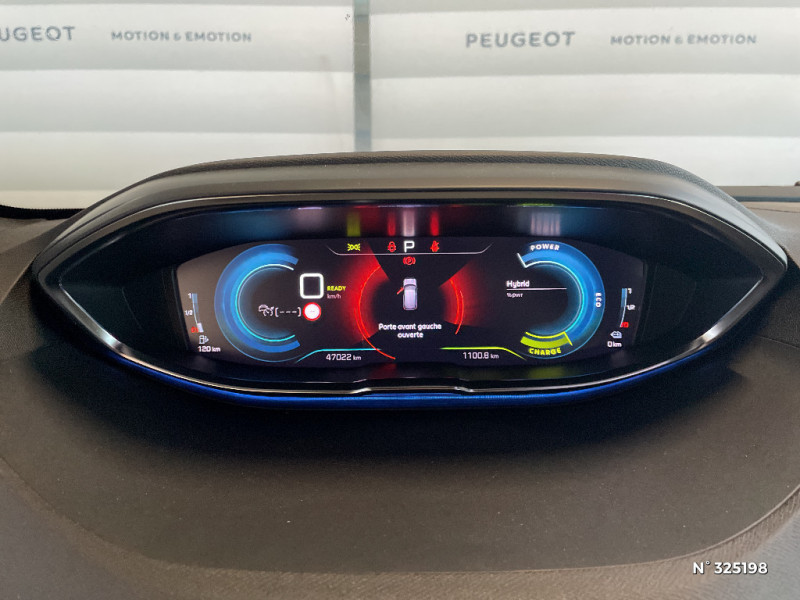 Décors intérieurs (baguettes de planche de bord et panneaux de portes, enjoliveur de console) chromés / Décors intérieurs chromés / Détection de sous-gonflage indirecte / Direction assistée électrique, colonne de direction réglable en hauteur et profondeur (mécanique) / Drive Mode : Choix de 2 modes de conduite (Eco ou Sport) / Driver Sport Pack / Eclairage intérieur LED : plafonnier et rangement / Eclairage intérieur LED: plafonnier tactile 3 spots + 2 LEDs d'ambiance, 2 liseuses AR, pare-soleil, boîte à gants, accoudoir central, zone connectique, caves à pied, zone coffre (x2) / Ecrous de roues antivol / Enjoliveur d'arc de pavillon en inox / Enjoliveur en inox sur les protecteurs de bas de portes / Appuis-tête à sécurité optimisée réglables en hauteur sur les sièges conducteur et passager AV ainsi que sur les places latérales AR / Aide graphique et sonore au stationnement AR / Air conditionné automatique bi-zone avec aérateurs aux places AR / Airbags frontaux conducteur et passager adaptatifs (passager neutralisable par clé), airbags latéraux conducteur et passager AV.airbags rideaux de tête aux places AV/AR / Accès et démarrage mains libres / Accoudoir central AV à ouverture papillon, avec compartiment de rangement éclairé et réfrigérable / Fonction "Mirror Screen" (Apple CarPlay / Android Auto ) / Frein de stationnement électrique avec aide au démarrage en pente / Garnissage TEP & "Alcantara" Gris Gréval / Garnissage TEP et Alcantara Mistral / Habitacle et ciel de pavillon Noir Mistral / Hayon mains libres / Hayon motorisé avec accès mains libres / Indicateur de rapport conseillé / Inserts d'ailes AV chromés / AVAS (système d'alerte sonore du véhicule émis à faible allure en roulage électrique, audible depuis l'extérieur pour la sécurité des piétons) / Avertisseur de temps de conduite / Badge "HYBRID" sur ailes AV et volet de coffre / Bandeau de pare-chocs AR chromé / Bandeau de pare-chocs AR chromé / Banquette rabattable 1/3 - 2/3 (commandes dans le coffre) avec accoudoir et trappe à skis / Barres de toit longitudinales profilée en Aluminium / Boîte à gants floquée et éclairée / Câble de recharge T2 mode 2 (10 A / 2,3 kW) / Calandre GT avec design évolutif chromé / Canules d'echappement de style chromées / Ceintures de sécurité AV 3 points à enrouleur, réglables en hauteur avec prétensionneurs et limiteurs d'effort / Ceintures de sécurité 3 points à enrouleur (x3) au 2ème rang, avec prétensionneurs et limiteurs d'effort aux places latérales / Chargeur embarqué 3,7 kW / Chargeur embarqué 3,7kW : câble de recharge T2 avec prise murale / Commande de verrouillage à distance (2 plips) / Commandes de lève-vitres avec inserts chromés / Commandes intérieures de portes chromées / Contrôle de la charge de la batterie à distance / Rétroviseur intérieur photosensible frameless (sans cadre) avec témoin lumineux d'information roulage mode ELECTRIC / Rétroviseur intérieur photosensible sans cadre, avec témoin lumineux de roulage en mode Electric / Sabot de pare-chocs AV gris métallisé / Sabots de pare-chocs AV gris métallisé / Sécurité enfants électrique des vitres AR / Poches/filets aumonières au dos des sièges AV / Pré-chauffage / climatisation du véhicule à distance / Prise USB (dans la zone connectique) / Prise 12 V (x3 : zone connectique, AR de console et coffre) / Prises USB de charge (x2) au 2ème rang / Projecteurs "Peugeot Full LED Technology" avec correction automatique de site, fonction Eclairage Virage Statique,"Foggy Mode" et feux diurnes à LED prolongés dans les projecteurs / Radio avec fonction DAB,bi-tuner compatible MP3 et connectivité Bluetooth (audio streaming, kit mains libres), avec commandes au volant, 6 HP, écran tactile capacitif 10" HD / Jantes alliage 19" 'San Francisco' bi-ton diamantées Noir Onyx mat / Jonc de vitres en inox / Joncs de vitres latérales en inox / Kit de dépannage de pneumatique : compresseur 12 volts, flacon de produit de colmatage, anneau de remorquage, deux cales de roue, manivelle de frein de stationnement électrique / Lève-vitres AV/AR électriques et séquentiels avec antipincement / Contrôle dynamique de stabilité CDS avec antipatinage électronique ASR / Coques de rétroviseurs extérieurs Noir Perla Nera / Décors de planche de bord et panneaux de portes Alcantara Gris Greval / Sélecteur de modes de conduite (Electric, Hybrid, Sport) / Sellerie TEP & "Alcantara" Gris Gréval / Seuils de portes AV en Inox / Siège conducteur mécanique avec réglage lombaire / Siège passager AV avec mise en tablette / Siège passager AV mécanique avec mise en tablette / Sièges AV mécaniques réglages en hauteur / Surtapis AV/AR / Système d'antiblocage des roues ABS avec répartiteur électronique de freinage REF et assistance au freinage d¿urgence AFU / Système HI-FI Premium FOCAL / Système HI-FI Premium FOCAL - La signature acoustique française 10 haut-parleurs, Woofers / médiums haute-fidélité : Technologie Polyglass, Tweeters TNF : Technologie de dômes inversés en aluminium, Subwoofer : Technologie triple bobine Power Flower 200 mm, Amplification active 12 voies 515 Watts : Technologie hybride Classe AB / Classe D / Teinte métallisée Bleu Celebes / "Toggle Switches" chromés (touches "piano" d'activation des fonctions de l'écran tactile) / Toggle Switches chromés (touches piano d'activation des fonctions de l'écran tactile) / Toit "Black Diamond" (toit Noir Perla Nera) / Trappe de recharge électrique sur l'aile AR gauche, avec indicateur lumineux d'état de recharge / Reconnaissance étendue des panneaux (Stop, Sens interdit) et préconisation des panneaux de vitesse / Vitres AV feuilletées acoustiques / Vitres latérales AR et lunette AR surteintées / Volant cuir fleur perforé avec bagues chromées et badge GT / Lunette AR chauffante avec antennes sérigraphiées / Lunette et vitres latérales AR surteintée / Mirror Scree