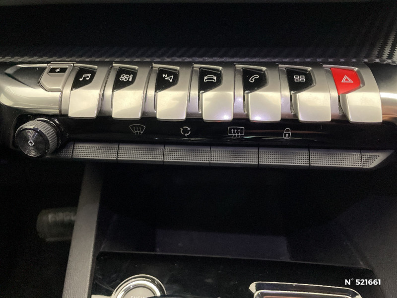 Fonction "Mirror Screen" (Apple CarPlay / Android Auto ) / Eclairage intérieur à LED: plafonniers / Siège conducteur mécanique avec réglage lombaire / Bandeau de pare-chocs AR chromé / PEUGEOT Connect SOS & Assistance et Teleservices / Reconnaissance étendue des panneaux (Stop, Sens interdit) et préconisation des panneaux de vitesse / Vitres latérales AR et lunette AR surteintées / Jantes alliage 18" "Detroit" bi-ton diamantées Gris Storm / "Toggle Switches" chromés (touches "piano" d'activation des fonctions de l'écran tactile) / Projecteurs "Peugeot LED Technology" avec feux diurnes à LED sous projecteurs / Coques de rétroviseurs extérieurs Noir Perla Nera / Seuils de portes AV en Inox / Pack Visibilité / Sans barres de toit longitudinales / Pack Safety Plus / Prise USB (dans la zone connectique) / Direction assistée électrique, colonne de direction réglable en hauteur et profondeur (mécanique) / Enjoliveur en inox sur les protecteurs de bas de portes / Enjoliveur d'arc de pavillon en inox / Décors de planche de bord et panneaux de portes aspect carbone / Drive Mode : Choix de 2 modes de conduite (Eco ou Sport) / Sièges AV mécaniques réglages en hauteur / Peugeot i-Cockpit avec combiné tête haute numérique haute qualité d'affichage, écran tactile capacitif 10" et volant compact multi-fonctions / Plafonniers AV et AR avec spot de lecture / Navigation 3D connectée avec écran tactile capacitif 10" HD Avec reconnaissance vocale, cartographie Europe, services de Navigation connectée TomTom 3 ans inclus, connexion automatique et permanente via carte SIM intégrée au véhicule / Chargeur embarqué 3,7kW : câble de recharge T2 avec prise murale / AVAS (système d'alerte sonore du véhicule émis à faible allure en roulage électrique, audible depuis l'extérieur pour la sécurité des piétons) / Boîte à gants floquée et éclairée / Airbags frontaux conducteur et passager adaptatifs (passager neutralisable par clé), airbags latéraux conducteur et passager AV, airbags rideaux de tête aux places AV et AR / Garnissage TEP avec Tissu Colyn Mistral / Badge "HYBRID" sur ailes AV et volet de coffre / Trappe de recharge électrique sur l'aile AR gauche, avec indicateur lumineux d'état de recharge / Sélecteur de modes (Electric, Hybrid, Sport) / Air conditionné automatique bi-zone avec aérateurs aux places AR / Accoudoir central AV à ouverture papillon, avec compartiment de rangement éclairé et réfrigérable / Lunette et vitres latérales AR surteintée / Vitres AV feuilletées acoustiques / Aide graphique et sonore au stationnement AR / Passages de roues rapportés noirs / Décors intérieurs chromés / Sabots de pare-chocs AV gris métallisé / Essuie-vitre AV avec système de lavage "Magic Wash" / Sécurité enfants électrique des vitres AR / Indicateur de rapport conseillé / Câble de recharge T2 mode 2 (10 A / 2,3 kW) / Contrôle de la charge de la batterie à distance / Pré-chauffage / climatisation du véhicule à distance / Banquette rabattable 1/3 - 2/3 (commandes dans le coffre) avec accoudoir et trappe à skis / Système d'antiblocage des roues ABS avec répartiteur électronique de freinage REF et assistance au freinage d?urgence AFU / Plancher de coffre fixe avec articulation pour accès au coffre de rangement du câble de recharge / Rétroviseur intérieur photosensible sans cadre, avec témoin lumineux de roulage en mode Electric / Avertisseur de temps de conduite / Chargeur embarqué 3,7 kW / Appuis-tête à sécurité optimisée réglables en hauteur sur les sièges conducteur et passager AV ainsi que sur les places latérales AR / "Toggle Switches" chromés (touches 'piano' d'activation des fonctions de l'écran tactile) / Décors intérieurs (baguettes de planche de bord et panneaux de portes, enjoliveur de console) chromés / Commande de verrouillage à distance (2 plips) / Kit de dépannage de pneumatique : compresseur 12 volts, flacon de produit de colmatage, anneau de remorquage, deux cales de roue, manivelle de frein de stationnement électrique / Essuie-vitre AR avec enclenchement automatique en marche AR / Prise 12V (x3 : zone connectique, AR de console et coffre) / Détection de sous-gonflage indirecte / Inserts d'ailes AV chromés / Lunette AR chauffante avec antennes sérigraphiées / Poches/filets aumonières au dos des sièges AV / Contrôle dynamique de stabilité CDS avec antipatinage électronique ASR / Frein de stationnement électrique avec aide au démarrage en pente / Surtapis AV et AR / Pack City 1 / Mirror Screen (compatible Mirrorlink, Apple CarPlay, Android Auto) / Lève-vitres AV et AR électriques séquentiels avec antipincement / Calandre á damiers chromés / Peugeot i-Cockpit avec combiné tête haute numérique haute qualité d'affichage, écran tactile capacitif 10" HD et volant compact multi-fonctions / Sabot de pare-chocs AV gris métallisé / Reconnaissance étendue des panneaux