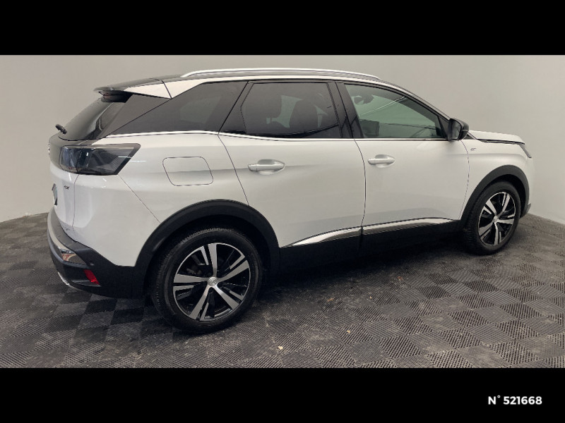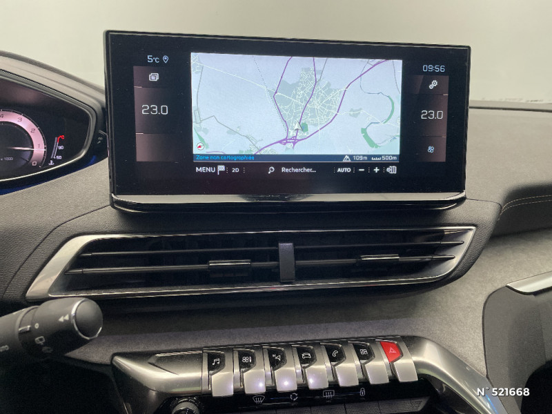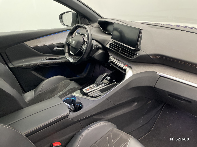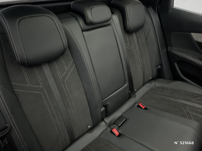 Commandes de lève-vitres avec inserts chromés / Siège conducteur mécanique avec réglage lombaire / Bandeau de pare-chocs AR chromé / Radio avec fonction DAB,bi-tuner compatible MP3 et connectivité Bluetooth (audio streaming, kit mains libres), avec commandes au volant, 6 HP, écran tactile capacitif 10" HD / Seuils de portes AV en Inox / Reconnaissance étendue des panneaux (Stop, Sens interdit) et préconisation des panneaux de vitesse / Vitres latérales AR et lunette AR surteintées / Peugeot i-Cockpit avec combiné tête haute numérique haute qualité d'affichage, écran tactile capacitif 10" et volant compact multi-fonctions / Ceintures de sécurité 3 points à enrouleur (x3) au 2ème rang, avec prétensionneurs et limiteurs d'effort aux places latérales / Aide graphique et sonore au stationnement AR / Barres de toit longitudinales profilée en Aluminium / Passages de roues rapportés noirs / Enjoliveur en inox sur les protecteurs de bas de portes / Sabots de pare-chocs AV gris métallisé / Indicateur de rapport conseillé / Sécurité enfants électrique des vitres AR / Pack Safety Plus / Prise USB (dans la zone connectique) / Banquette AR rabattable 1/3 - 2/3 (avec modularité "Magic Flat" et commandes dans le coffre) avec accoudoir et trappe à skis / Boîte à gants floquée et éclairée / Direction assistée électrique, colonne de direction réglable en hauteur et profondeur (mécanique) / Prises USB de charge (x2) au 2 rang / Enjoliveur d'arc de pavillon en inox / Drive Mode : Choix de 2 modes de conduite (Eco ou Sport) / Garnissage Mi-TEP/Tissu "Belomka" avec surpiqûres Aikinite / Sièges AV mécaniques réglages en hauteur / Eclairage intérieur LED : plafonnier et rangement / Plafonniers AV et AR avec spot de lecture / Volant cuir fleur perforé avec bagues chromées et badge GT / Décors de planche de bord et panneaux de portes Alcantara Gris Greval / Accès et démarrage mains libres / Projecteurs "Peugeot Full LED Technology" avec correction automatique de site, fonction Eclairage Virage Statique,"Foggy Mode" et feux diurnes à LED prolongés dans les projecteurs / Calandre GT avec design évolutif chromé / Peugeot Connect: Ecran tactile capacitif 10'' HD,navigation 3D connectée avec reconnaissance vocale aux services de Navigation connectée TomTom, SOS & Assistance, Teleservices / Jantes alliage 18" "Detroit" bi-ton diamantées Noir Onyx / Pack Drive Assist Plus / Garnissage Mi-TEP/Tissu "Belomka" / "Toggle Switches" chromés (touches "piano" d'activation des fonctions de l'écran tactile) / Pack Visibilité / Siège passager AV avec mise en tablette / Coques de rétroviseurs extérieurs Noir Perla Nera / Rétroviseur intérieur photosensible sans cadre / Pédalier et repose-pied conducteur aluminium / Siège conducteur à réglage lombaire manuel / Frein de stationnement électrique avec aide au démarrage en pente / Pack City 1 / Peugeot i-Cockpit avec combiné tête haute numérique reconfigurable, écran tactile capacitif 10" et volant compact multi-fonctions / Rétroviseur intérieur photosensible frameless - sans cadre / Sièges AV mécaniques à réglage manuel en hauteur / Mirror Screen (compatible Mirrorlink, Apple CarPlay, Android Auto) / Surtapis AV et AR / Lève-vitres AV et AR électriques séquentiels avec antipincement / Habitacle et ciel de pavillon Noir Mistral / Avertisseur de temps de conduite / Airbags frontaux conducteur et passager adaptatifs (passager neutralisable par clé), airbags latéraux conducteur et passager AV, airbags rideaux de tête aux places AV et AR / Kit de dépannage de pneumatique : compresseur 12 volts, flacon de produit de colmatage, anneau de remorquage, deux cales de roue, manivelle de frein de stationnement électrique / Jonc de vitres en inox / Planche de bord surpiquée / Canules d'echappement de style chromées / Commande de verrouillage à distance (2 plips) / Pack Eclairage d'ambiance / Eclairage intérieur LED: plafonnier tactile 3 spots + 2 LEDs d'ambiance, 2 liseuses AR, pare-soleil, boîte à gants, accoudoir central, zone connectique, caves à pied, zone coffre (x2) / Driver Sport Pack / Toit "Black Diamond" (toit Noir Perla Nera) / Air conditionné automatique bi-zone avec aérateurs aux places AR / Décors intérieurs (baguettes de planche de bord et panneaux de portes, enjoliveur de console) chromés / Accoudoir central AV à ouverture papillon, avec compartiment de rangement éclairé et réfrigérable / Prise 12V (x3 : zone connectique, AR de console et coffre) / Plancher de coffre 2 positions / Inserts d'ailes AV chromés / Lunette AR chauffante avec antennes sérigraphiées / Poches/filets aumonières au dos des sièges AV / Contrôle dynamique de stabilité CDS avec antipatinage électronique ASR / Essuie-vitre AR avec enclenchement automatique en marche AR / Appuis-tête à sécurité optimisée réglables en hauteur sur les sièges conducteur et passager AV ainsi que sur les places latérales AR / Ceintures de sécurité AV 3 points à enrouleur, réglables en hauteur avec prétensionneurs et limiteurs d'effort / Détection de sous-gonflage indirecte / Essuie-vitre AV avec système de lavage "Magic Wash" / Siège passager AV mécanique avec mise en tablette / Garnissage TEP et Alcantara Mistral / Système d'antiblocage des roues ABS avec répartiteur électronique de freinage REF et assistance au freinage d?urgence AFU