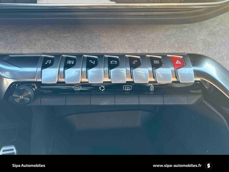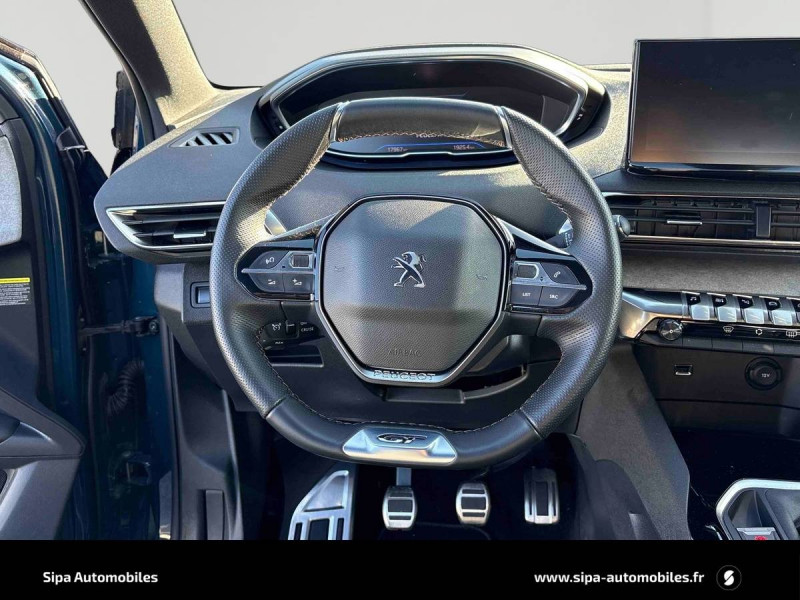 6 airbags (Frontaux adaptatifs, latéraux AV, rideaux AV/AR) / Accès et démarrage mains libres / Accoudoir central AV à ouverture papillon, avec compartiment de rangement éclairé et réfrigérable / Air conditionné automatique bi-zone avec aérateurs aux places AR / Appuis-tête à sécurité optimisée réglables en hauteur (conducteur, passager et AR x3) / Avertisseur de temps de conduite / Banquette AR rabattable 1/3 - 2/3 avec accoudoir central, trappe à skis et commandes de rabattement depuis le coffre / Barres de toit longitudinales en aluminium / Calandre avec design évolutif chromé / Canules d'echappement de style chromées / Coques de rétroviseurs extérieurs Noir Perla Nera / Décors de planche de bord et panneaux de portes Alcantara Gris Greval / Détection de sous-gonflage indirecte / Driver Sport Pack / Eco Mode / Enjoliveur d'arc de pavillon en Inox Brillant / Enjoliveurs d'ailes AV chromés / Essuie-vitre AV avec système de lavage "Magic Wash" / Feux AR à LED avec effet 3D, clignotants à défilement / Fonction "Mirror Screen" (Apple CarPlay / Android Auto ) / Frein de stationnement électrique avec aide au démarrage en pente et serrage automatique / Garnissage Tissu BELOMKA / TEP / Habitacle et ciel de pavillon Noir Mistral / Indicateur de rapport conseillé / Jantes alliage 18" diamantées DETROIT bi-ton Noir Onyx brillant avec pneumatiques 225/55 R18 102 V / Kit de dépannage de pneumatique : compresseur 12 volts, flacon de produit de colmatage, anneau de remorquage, deux cales de roue, manivelle de frein de stationnement électrique / Lécheurs de vitres, joncs de vitres latérales en Inox Brillant / Lève-vitres AV/AR électriques et séquentiels avec antipincement / Navigation 3D connectée avec écran tactile capacitif 10" HD Avec reconnaissance vocale, cartographie Europe, services de Navigation connectée TomTom 3 ans inclus, connexion automatique et permanente via carte SIM intégrée au véhicule / Pack City 1 / Pack Drive Assist / Pack Eclairage d'ambiance / Pack Safety Plus / Pack Visibilité / Pares-soleil avec miroirs de courtoisie éclairés / Passages de roues rapportés Noir Mat / Pédalier et repose-pied conducteur en aluminium / PEUGEOT Connect SOS & Assistance et Teleservices / Peugeot i-Cockpit avec combiné tête haute numérique, volant compact multi-fonctions / Plafonniers AV/AR à LED avec 2 spots de lecture / Plancher de coffre 2 positions / Poches/filets aumonières au dos des sièges AV / Prise 12 V (x3 : zone connectique, AR de console et coffre) / Prises USB de charge (x2) au 2ème rang / Projecteurs "Peugeot Full LED Technology" avec correction automatique de site, fonction Eclairage Virage Statique,"Foggy Mode" et feux diurnes à LED sous projecteurs / Protecteurs de bas de portes avec inserts Inox Brillant / Rétroviseur intérieur photosensible sans cadre / Rétroviseurs extérieurs dégivrants avec réglage et rabattement électriques, éclairage d'accueil à LED, témoin de surveillance d'angles morts / Sabot de pare-chocs AV peint Métallure / Sécurité enfants électrique des vitres AR / Seuils de portes AV en Inox / Siège conducteur avec réglage lombaire / Siège passager AV avec mise en tablette / Surtapis AV/AR / Système stop & go couplé avec l'assistance au positionnement sur la voie / Toggle Switches chromés (touches piano d'activation des fonctions de l'écran tactile) / Toit "Black Diamond" / Vitres latérales AR et lunette AR chauffante surteintées / Volant cuir fleur perforé Mistral avec bagues chromées et badge GT