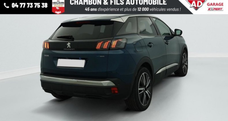 Référence : 365242 Cylindrée : 1598 cm3 Hybrid 180 e-EAT8 Allure Pack, hybride, bleu, 30/04/2024, Accès et démarrage mains libres, Détection de sous-gonflage indirecte, Coques de rétroviseurs extérieurs Noir Perla Nera, Pack City 1 : Aide graphique et sonore au stationnement AV : option incluse (valeur : 200 Eur TTC), Avertisseur de temps de conduite, Rétroviseur intérieur photosensible, Pack Safety Plus : Alerte Risque de Collision (Distance Alert) Alerte attention conducteur Commutation automatique des feux de route / feux de croisement Alerte active de franchissement involontaire de ligne et bas côté Freinage d'urgence automatique avec caméra & radar, Sécurité enfants électrique des vitres AR, Accoudoir central AV à ouverture papillon, avec compartiment de rangement éclairé et réfrigérable, Direction assistée électrique, colonne de direction réglable en hauteur et profondeur (mécanique), Poches/filets aumonières au dos des sièges AV, Prise 12 V (x3 : zone connectique, AR de console et coffre), Plafonniers AV/AR à LED avec 2 spots de lecture, Air conditionné automatique bi-zone avec aérateurs aux places AR, Kit de dépannage de pneumatique, Calandre á damiers chromés, Frein de stationnement électrique avec aide au démarrage en pente et serrage automatique, Teintes métallisées, Chargeur embarqué 7, 4kW : option incluse (valeur : 400 Eur TTC), Plancher de coffre fixe avec articulation pour accès au coffre de rangement du câble de recharge, Sélecteur de modes de conduite (Electric, Hybrid, Sport), PEUGEOT Connect SOS, Projecteurs Peugeot LED Technology avec feux diurnes à LED sous projecteurs, Fonction Mirror Screen (Apple CarPlay / Android Auto ), Garnissage TEP avec Tissu Colyn Mistral, Reconnaissance étendue des panneaux de signalisation, Pack Drive Assist Plus : Régulateur de vitesse adaptatif avec fonction Stop&Go Aide au maintien de la position dans la voie (Lane Positioning Assist) Système de surveillance d'angle mort : option incluse (valeur : 800 Eur TTC), Rétroviseurs extérieurs dégivrants avec réglage et rabattement électriques, Navigation 3D connectée avec écran tactile capacitif 10 HD, Câble de recharge T2 mode 2 (10 A / 2, 3 kW), Pack Visibilité : Eclairage d'accompagnement automatique Allumage automatique des feux de croisement Essuie-vitre AV à déclenchement automatique, Jantes alliage 19 diamantées SAN FRANCISCO 2 bi-ton Noir Onyx mat avec pneumatiques 225/50 R19 100 V : option incluse (valeur : 400 Eur TTC), 6 airbags (Frontaux adaptatifs, latéraux AV, rideaux AV/AR), Appuis-tête à sécurité optimisée réglables en hauteur (conducteur, passager et AR x3), Banquette AR rabattable 1/3 - 2/3 avec accoudoir central, Enjoliveur d'arc de pavillon en Inox Brillant, Enjoliveurs d'ailes AV chromés, Pares-soleil avec miroirs de courtoisie éclairés, Passages de roues rapportés Noir Mat, Peugeot i-Cockpit avec combiné tête haute numérique, volant compact multi-fonctions, Trappe de recharge électrique avec indicateur d'état de charge, Vitres latérales AR et lunette AR chauffante surteintées, Pack City : Aide graphique et sonore au stationnement AR Visiopark 1 : caméra de recul avec restitution sur l'écran tactile d'une vue AR et d'une vue de dessus de l'environnement AR du véhicule, Avertisseur sonore audible depuis l'extérieur pour la sécurité piétons, Feux AR à LED avec effet 3D, clignotants à défilement, Sièges AV réglables en hauteur, Lève-vitres AV/AR électriques et séquentiels avec antipincement, Fixations ISOFIX (passager AV et aux places latérales AR) OPTIONS/EQUIPEMENTS : - Taille Jantes 19, Pack Visibilité, Sièges Arr. Rabattables Vendeur à contacter : CHAMBON & FILS AUTOMOBILE Téléphone à contacter : 04 77 73 23 51