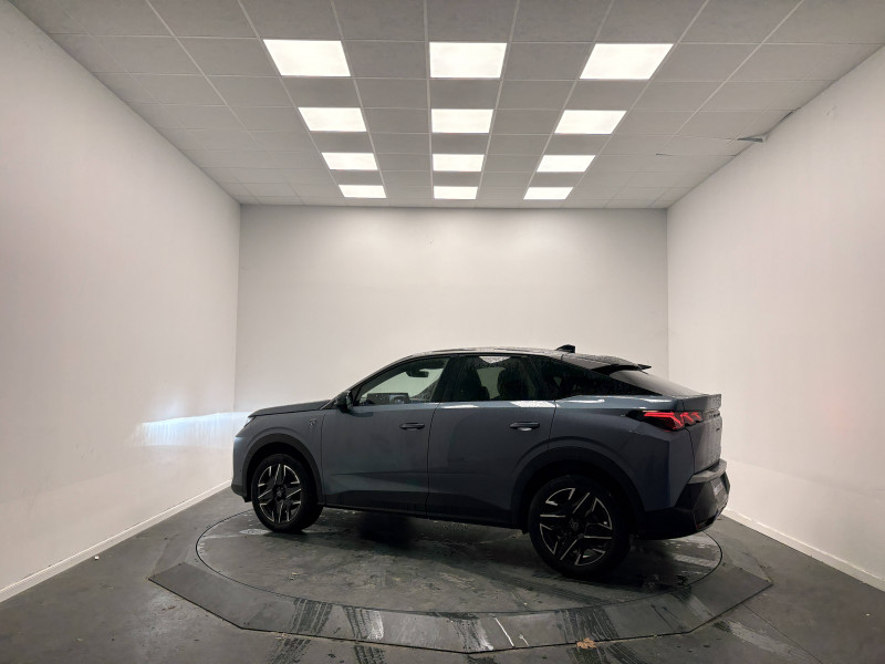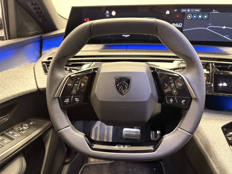 4 poignées de maintien rétractables (2 à l'AV et 2 à l'AR) / 6 airbags: Frontaux conducteur et passager (passager neutralisable par clé), latéraux conducteur et passager AV (thorax et bassin), rideaux aux places AV et AR (tête et thorax) / 6 HP (2 tweeters et 2 woofers à l'AV et 2 larges bandes à l'AR) / Accès et démarrage mains libres Proximity 2 Télécommandes 3 boutons (verrouillage, coffre, déverrouillage) / Banquette AR avec dossier rabattable 40/20/40 avec accoudoir central / Boîte de vitesse automatique, séquentielle (6 rapports) / Commutation adaptative des projecteurs / Commutation automatique des feux de route / Détection de sous-gonflage indirecte / Drive Assist - Régulateur de vitesse adaptatif avec fonction Stop & Go / Eclairage d'ambiance indirect, jour & nuit sur la planche de bord, les panneaux de portes AV et sous l'écran panoramique 21'', associé aux modes de conduite, personnalisable en 8 couleurs / Eclairage intérieur Miroirs de courtoisie conducteur et passager occultables éclairés à LED / Eléments de style éxterieur Bandeau entre les projecteurs Noir laqué avec logo 3008. Calandre couleur caisse, écopes latérales Noir laqué, décor inférieur Gris Meteor, jupe inférieure Noir grainé. Vitres AR, vitres de custode et lunette AR surteintées. Lécheurs de vitres masqués. Enjoliveurs de passages de roues et protections inférieures de portes Noir grainé. Bandeau entre les feux AR Noir laqué avec lettrage PEUGEOT. Pare chocs AR avec décor Gris Meteor et jupe inférieure Noir grainé, Monogrammes AV et AR / Eléments de style intérieure Planche de bord moussée avec décor tissu RIMINI chiné, décor d'alcôve en Aluminium sérigraphié, façade et aérateurs Noir laqué avec décor Cast Iron, Panneaux de portes avec décor tissu RIMINI chiné, décor d'alcôve en Aluminium sérigraphié et jonc Cast Iron, accoudoirs TEP Isabella, surpiqûres Iced Clay à l' AV, Console centrale avec décor tissu RIMINI chiné, façade Noir laqué et jonc Cast Iron, accoudoir tissu RIMINI chiné / Essuie-vitre AV à déclenchement automatique / Frein de stationnement électrique / Habitacle et ciel de pavillon Noir / Hayon motorisé avec accès mains libres / Jantes alliage 19'' diamantées BREDA Noir Orbital, vernis brillant / Lève-vitres AV/AR électriques et séquentiels avec antipincement / Monogrammes ailes AV: 'blason PEUGEOT' / Monogrammes AR 3008 et Hybrid / Pack Safety Plus Régulateur / Limiteur de vitesse, Freinage d'urgence automatique avec alerte risque de collision pilotée par caméra et radar, Alerte active de franchissement involontaire de ligne et bas côté, Reconnaissance étendue des panneaux de signalisation et préconisation de vitesse, Alerte attention conducteur / Pare-brise feuilleté acoustique / Pédalier et repose pied aluminium / PEUGEOT i-Cockpit panoramique avec écran incurvé et flottant 21'' HD / PEUGEOT i-Connect Advanced - Navigation 3D connectée, 4 prises USB: 1 prise USB C (Data & charge) et 1 prise USB C (Charge) à l'AV, 2 prises USB C (Charge) à l'AR - Connect Plus (Abonnement 6 mois inclus) - 2 prises 12 V (Console centrale, coffre) / PEUGEOT i-Toggles virtuels avec 10 raccourcis personnalisables / Plancher de coffre modulable 2 positions / Projecteurs PEUGEOT PIXEL LED Eclairage adaptatif, commutation automatique des feux de route, feux de route avec fonctions anti éblouissement et boost / Rétroviseur intérieur électrochrome / Rétroviseurs extérieurs dégivrants avec réglage et rabattement électriques, éclairage de seuil / Sellerie tissu NEW UZIRIS embossé, accompagnement TEP Isabella, écharpe tissu RIMINI chiné, surpiqûres Iced Clay / Seuil de portes AV inox avec lettrage PEUGEOT / Siège conducteur à réglage lombaire manuel / Sièges AV à réglage en hauteur manuel / Surtapis AV et AR avec surpiqûres Iced Clay / Toit et becquet AR Black Diamond / Visiopark 1 Caméra de recul & aide au stationnement AV et AR, graphique et sonore / Volant chauffant / Volant compact, cuir fleur lisse et perforé avec commandes intégrées Noir Laqué, décors Cast Iron, surpiqûres Iced Clay, insert Noir laqué avec badge ?GT'
