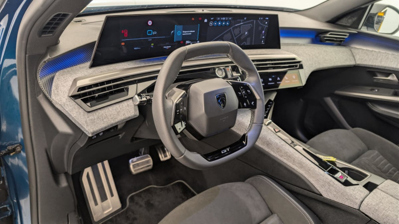 Frein de stationnement électrique / Détection de sous-gonflage indirecte / Commutation automatique des feux de route / Essuie-vitre AV à déclenchement automatique / 6 HP (2 tweeters et 2 woofers à l'AV et 2 larges bandes à l'AR) / Hayon motorisé avec accès mains libres / Pédalier et repose pied aluminium / Pack Safety Plus : Alerte attention conducteur Reconnaissance étendue des panneaux de signalisation et préconisation de vitesse Alerte active de franchissement involontaire de ligne et bas côté Freinage d'urgence automatique avec alerte risque de collision pilotée par caméra et radar / Plancher de coffre modulable 2 positions / 4 poignées de maintien rétractables (2 à l'AV et 2 à l'AR) / Volant chauffant / PEUGEOT i-Toggles virtuels avec 10 raccourcis personnalisables / 6 airbags: frontaux conducteur et passager auto-adaptatifs (passager neutralisable par clé), latéraux conducteur et passager AV (thorax et bassin), rideaux aux places AV et AR (tête et thorax) / Accès et démarrage mains libres Proximity / Projecteurs PEUGEOT PIXEL LED Eclairage adaptatif, commutation automatique des feux de route, feux de route avec fonctions anti éblouissement et boost / Toit et becquet AR Black Diamond / Eclairage d'ambiance indirect, jour & nuit sur la planche de bord, les panneaux de portes AV et sous l'écran panoramique 21'', associé aux modes de conduite, personnalisable en 8 couleurs / Seuil de portes AV inox avec lettrage PEUGEOT / Volant compact, cuir fleur lisse et perforé avec commandes intégrées Noir Laqué, décors Cast Iron, surpiqûres Iced Clay, insert Noir laqué avec badge ?GT? / Commutation adaptative des projecteurs / PEUGEOT i-Cockpit panoramique avec écran incurvé et flottant 21'' HD / Rétroviseur intérieur électrochrome / Boîte de vitesse automatique, séquentielle (6 rapports) / Eclairage intérieur Miroirs de courtoisie conducteur et passager occultables éclairés à LED / Banquette AR avec dossier rabattable 40/20/40 avec accoudoir central / Jantes alliage 19" diamantées BREDA Noir Orbital, vernis brillant / PEUGEOT i-Connect Advanced - Navigation 3D connectée, 4 prises USB: 1 prise USB C (Data & charge) et 1 prise USB C (Charge) à l'AV, 2 prises USB C (Charge) à l'AR - 2 prises 12 V (Console centrale, coffre) / Pare-brise feuilleté acoustique / Lève-vitres AV/AR électriques et séquentiels avec antipincement / Siège conducteur à réglage lombaire manuel / / Véhicules équivalents: C5 Aircross - Tiguan - X3