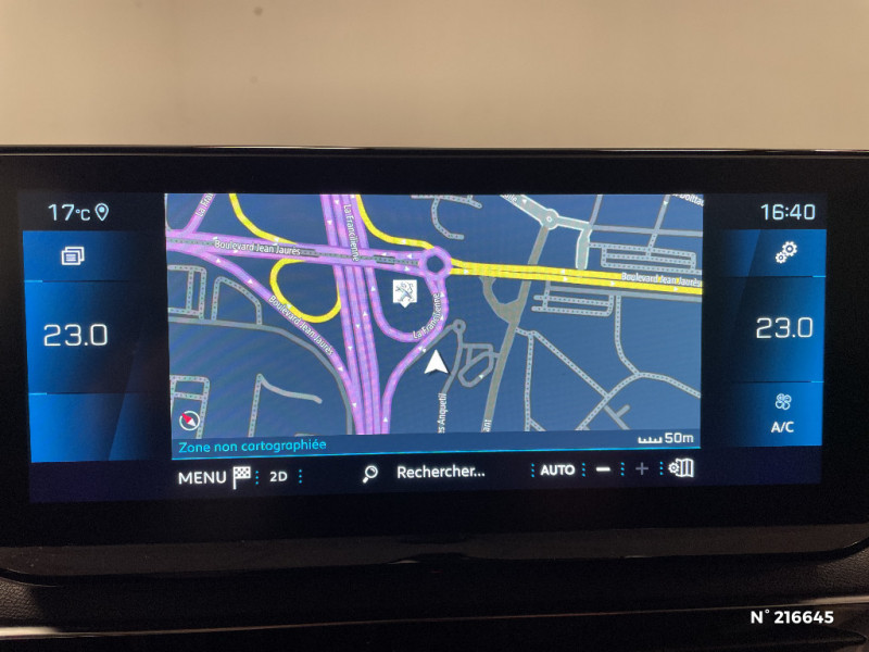 Drive Mode : Choix de 2 modes de conduite (Eco ou Sport) / Radio avec fonction DAB,bi-tuner compatible MP3 et connectivité Bluetooth (audio streaming, kit mains libres), avec commandes au volant, 6 HP, écran tactile capacitif 8'' / Projecteurs "Peugeot LED Technology" avec feux diurnes à LED sous projecteurs / Surtapis / Garnissage Tissu Tri matière PNEUMA 3D, surpiqûre Bleu Azur / Protecteurs de portes avec insert inox / Badge Style sur les ailes AV / Etiquettes "STYLE" sur les sièges AV / Lunette et vitres latérales AR surteintée / Aide graphique et sonore au stationnement AR / Coques de rétroviseurs couleur carrosserie / Air conditionné automatique bi-zone avec aérateurs aux places AR / Décors intérieurs (baguettes de planche de bord et panneaux de portes, enjoliveur de console) chromés / Commande de verrouillage à distance (2 plips) / Frein de stationnement électrique avec aide au démarrage en pente / Sièges AV mécaniques à réglage manuel en hauteur / Coques de rétroviseurs extérieurs Noir Perla Nera / Lunette AR chauffante avec antennes sérigraphiées / Poches/filets aumonières au dos des sièges AV / Banquette AR rabattable 1/3 - 2/3 (avec modularité "Magic Flat" et commandes dans le coffre) avec accoudoir et trappe à skis / Prise USB (dans la zone connectique) / Prise 12V (x3 : zone connectique, AR de console et coffre) / Pack Visibilité / Lève-vitres AV et AR électriques séquentiels avec antipincement / "Toggle Switches" chromés (touches "piano" d'activation des fonctions de l'écran tactile) / Reconnaissance étendue des panneaux (Stop, Sens interdit) et préconisation des panneaux de vitesse / PEUGEOT Connect SOS & Assistance et Teleservices / Alerte active de franchissement involontaire de ligne et bas côté / Direction assistée électrique, colonne de direction réglable en hauteur et profondeur (mécanique) / Essuie-vitre AV avec système de lavage "Magic Wash" / Essuie-vitre AR avec enclenchement automatique en marche AR / Détection de sous-gonflage indirecte / Sièges AV mécaniques réglages en hauteur / Peugeot i-Cockpit avec combiné tête haute numérique haute qualité d'affichage, écran tactile capacitif 10" et volant compact multi-fonctions / Peugeot i-Cockpit avec combiné tête haute numérique haute qualité d'affichage écran tactile capacitif 8" et volant compact multi-fonctions / Barres de toit longitudinales Noir Satin / Vitres latérales AR et lunette AR surteintées / Pack City 1 / Boîte à gants floquée et éclairée / Plafonniers AV et AR avec spot de lecture / Calandre á damiers chromés / Jantes alliage 17" "Chicago" / Inserts d'ailes AV chromés / Enjoliveur d'arc de pavillon en inox / Décors de planche de bord et panneaux de portes aspect carbone / Enjoliveur en inox sur les protecteurs de bas de portes / Sabots de pare-chocs AV gris métallisé / Airbags frontaux conducteur et passager adaptatifs (passager neutralisable par clé), airbags latéraux conducteur et passager AV, airbags rideaux de tête aux places AV et AR / Plancher de coffre 2 positions / Peugeot i-Cockpit avec combiné tête haute numérique reconfigurable, écran tactile capacitif 8" et volant compact multi-fonctions / Seuils de portes AV en Inox / Appuis-tête à sécurité optimisée réglables en hauteur sur les sièges conducteur et passager AV ainsi que sur les places latérales AR / Pack Safety avec Distance alert / Mirror Screen (compatible Mirrorlink, Apple CarPlay, Android Auto) / Visiopark 1 : caméra de recul avec restitution sur l'écran tactile d'une vue AR et d'une vue de dessus de l'environnement AR du véhicule / Accoudoir central AV à ouverture papillon, avec compartiment de rangement éclairé et réfrigérable / Avertisseur de temps de conduite / Peugeot Connect: Ecran tactile capacitif 10'' HD,navigation 3D connectée avec reconnaissance vocale aux services de Navigation connectée TomTom, SOS & Assistance, Teleservices / Navigation 3D connectée avec écran tactile capacitif 10" HD Avec reconnaissance vocale, cartographie Europe, services de Navigation connectée TomTom 3 ans inclus, connexion automatique et permanente via carte SIM intégrée au véhicule / Ceintures de sécurité 3 points à enrouleur (x3) au 2ème rang, avec prétensionneurs et limiteurs d'effort aux places latérales / Kit de dépannage de pneumatique : compresseur 12 volts, flacon de produit de colmatage, anneau de remorquage, deux cales de roue, manivelle de frein de stationnement électrique / Contrôle dynamique de stabilité CDS avec antipatinage électronique ASR / Indicateur de rapport conseillé / Sécurité enfants électrique des vitres AR / Passages de roues rapportés noirs / Surtapis AV et AR / Système d'antiblocage des roues ABS avec répartiteur électronique de freinage REF et assistance au freinage d?urgence AFU / Ceintures de sécurité AV 3 points à enrouleur, réglables en hauteur avec prétensionneurs et limiteurs d'effort