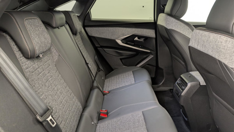 Frein de stationnement électrique / Détection de sous-gonflage indirecte / Essuie-vitre AV à déclenchement automatique / 6 HP (2 tweeters et 2 woofers à l'AV et 2 larges bandes à l'AR) / Plancher de coffre modulable 2 positions / Jantes alliage 19" diamantées Lulea Noir Orbital, vernis brillant / 6 airbags: frontaux conducteur et passager auto-adaptatifs (passager neutralisable par clé), latéraux conducteur et passager AV (thorax et bassin), rideaux aux places AV et AR (tête et thorax) / Volant compact croûte de cuir avec commandes intégrées Noir laqué, décors Gris Stène / Accès et démarrage mains libres Proximity / Eclairage intérieur Plafonnier AV et liseuses AR à LED, Boite à gants et rangement de console éclairés à LED, Eclairage des caves à pieds AV à LED / Banquette AR avec dossier rabattable 40/20/40 / PEUGEOT i-Connect Radio DAB, Bluetooth (connexion 2 téléphones), Mirror Screen sans fil (Apple CarPlay / Android Auto), Peugeot Connect SOS, 1 prise USB C (Data & charge) / Projecteurs "Peugeot Led Technology" / Sièges AV à réglage en hauteur manuel / Sellerie tissu CRISPY embossé, accompagnement TEP Isabella, écharpe tissu RIMINI chiné, surpiqûres Quartz / Rétroviseur intérieur électrochrome / Boîte de vitesse automatique, séquentielle (6 rapports) / Pack Safety Plus : Alerte attention conducteur Reconnaissance étendue des panneaux de signalisation et préconisation de vitesse Alerte active de franchissement involontaire de ligne et bas côté Freinage d'urgence automatique avec alerte risque de collision pilotée par caméra et radar / Pare-brise feuilleté acoustique / Lève-vitres AV/AR électriques et séquentiels avec antipincement / / Véhicules équivalents: C5 Aircross - Tiguan - X3