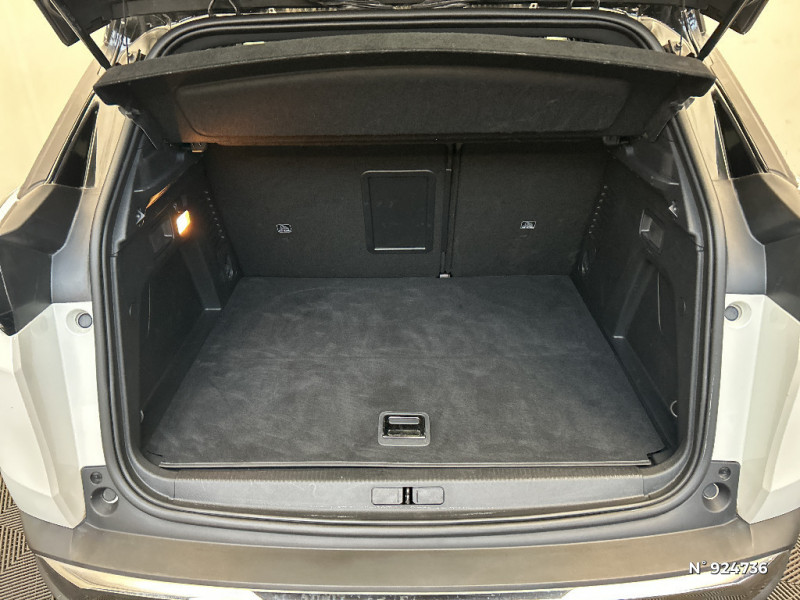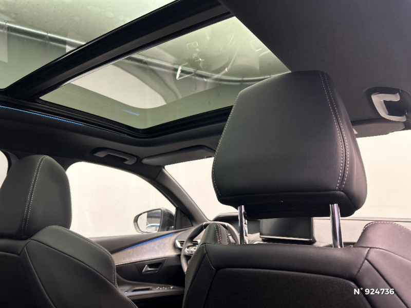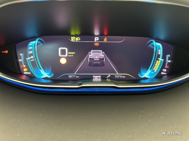 Calandre avec design évolutif chromé / Enjoliveur d'arc de pavillon en Inox Brillant / Enjoliveurs d'ailes AV chromés / Projecteurs "Peugeot Full LED Technology" avec correction automatique de site, fonction Eclairage Virage Statique,"Foggy Mode" et feux diurnes à LED sous projecteurs / Banquette AR rabattable 1/3 - 2/3 avec accoudoir central, trappe à skis et commandes de rabattement depuis le coffre / Volant cuir fleur perforé Mistral avec bagues chromées et badge GT / Avertisseur sonore audible depuis l'extérieur pour la sécurité piétons / Protecteurs de bas de portes avec inserts Inox Brillant / Vitres latérales AV feuilletées acoustiques / Pares-soleil avec miroirs de courtoisie éclairés / Passages de roues rapportés Noir Mat / Peugeot i-Cockpit avec combiné tête haute numérique, volant compact multi-fonctions / Rétroviseurs extérieurs dégivrants avec réglage et rabattement électriques, éclairage d'accueil à LED, témoin de surveillance d'angles morts / Sabot de pare-chocs AV peint Métallure / Siège conducteur avec réglage lombaire / Trappe de recharge électrique avec indicateur d'état de charge / Vitres latérales AR et lunette AR chauffante surteintées / Toit "Black Diamond" / Jantes alliage 18" diamantées DETROIT bi-ton Noir Onyx brillant avec pneumatiques 225/55 R18 102 V / Lécheurs de vitres, joncs de vitres latérales en Inox Brillant / Pack Visibilité / Appuis-tête à sécurité optimisée réglables en hauteur (conducteur, passager et arrière x3) / Rétroviseur intérieur photosensible sans cadre / PEUGEOT Connect SOS & Assistance et Teleservices / Frein de stationnement électrique avec aide au démarrage en pente et serrage automatique / 6 airbags (Frontaux adaptatifs, latéraux AV, rideaux AV et AR) / Accès et démarrage mains libres / Fonction "Mirror Screen" (Apple CarPlay / Android Auto ) / Sélecteur de modes (Electric, Hybrid, Sport) / Badge "HYBRID" sur ailes AV et volet de coffre / Pédalier et repose-pied conducteur en aluminium / Barres de toit longitudinales en aluminium / Décors de planche de bord et panneaux de portes Alcantara Gris Greval / Lève-vitres AV et AR électriques séquentiels avec antipincement / Commandes de lève-vitres avec inserts chromés / "Toggle Switches" chromés (touches 'piano' d'activation des fonctions de l'écran tactile) / Pré-chauffage / climatisation du véhicule à distance / Navigation 3D connectée avec écran tactile capacitif 10" HD Avec reconnaissance vocale, cartographie Europe, services de Navigation connectée TomTom 3 ans inclus, connexion automatique et permanente via carte SIM intégrée au véhicule / Coques de rétroviseurs extérieurs Noir Perla Nera / Seuils de portes AV en Inox / Contrôle de la charge de la batterie à distance / Feux AR à LED avec effet 3D, clignotants à défilement / Driver Sport Pack / Pack City 1 / Siège passager AV avec mise en tablette / Badge "HYBRID" sur volet de coffre / Plancher de coffre fixe avec articulation pour accès au coffre de rangement du câble de recharge / Prises USB de charge (x2) au 2 rang / Pack Safety Plus / Direction assistée électrique, colonne de direction réglable en hauteur et profondeur (mécanique) / Prise 12V (x3 : zone connectique, AR de console et coffre) / Habitacle et ciel de pavillon Noir Mistral / Câble de recharge T2 mode 2 (10 A / 2,3 kW) / Garnissage Tissu BELOMKA / TEP / Détection de sous-gonflage indirecte / Essuie-vitre AV avec système de lavage "Magic Wash" / Avertisseur de temps de conduite / Sécurité enfants électrique des vitres AR / Kit de dépannage de pneumatique : compresseur 12 volts, flacon de produit de colmatage, anneau de remorquage, deux cales de roue, manivelle de frein de stationnement électrique / Pack Eclairage d'ambiance / Poches/filets aumonières au dos des sièges AV / Accoudoir central AV à ouverture papillon, avec compartiment de rangement éclairé et réfrigérable / Pack Drive Assist Plus / Indicateur de rapport conseillé / Surtapis AV et AR / Canules d'echappement de style chromées / Chargeur embarqué 3,7 kW / Plafonniers AV/AR à LED avec 2 spots de lecture / Air conditionné automatique bi-zone avec aérateurs aux places AR