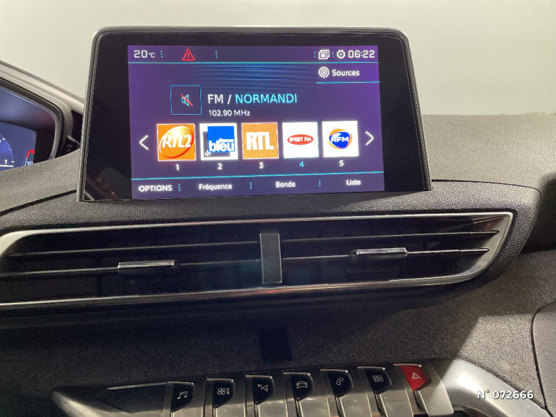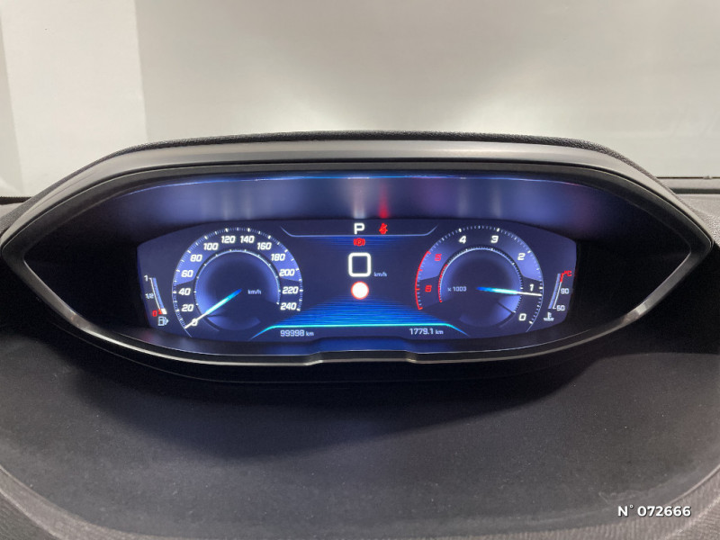 Plafonnier AV avec spots de lecture (x2) et plafonnier AR à extinction temporisée / Plancher de coffre 2 positions / Poches/filets aumonières au dos des sièges AV / Poignées de maintien (x4) rétractables avec frein (crochets pour cintres aux places AR) / Prise USB (dans la zone connectique) / Prise 12 V (x3 : zone connectique, AR de console et coffre) / Réglage en hauteur du siège conducteur / Réglage en hauteur du siège passager (mécanique) / Réglage lombaire du siège conducteur / Rétroviseurs extérieurs rabattables électriquement et éclairage d'accueil à LED, avec indexation marche AR / Sabots de pare-chocs AV gris métallisé / Sécurité enfants électrique des vitres AR / Sellerie TEP & Tissu "Evron" / Accoudoir central AV à ouverture papillon, avec compartiment de rangement éclairé et réfrigérable / Aide sonore et graphique au stationnement AR / Air conditionné automatique bi-zone avec aérateurs aux places AR / Airbags frontaux conducteur et passager adaptatifs (passager neutralisable par clé), airbags latéraux conducteur et passager AV.airbags rideaux de tête aux places AV/AR / Appuis-tête à sécurité optimisée réglables en hauteur sur les sièges conducteur et passager AV ainsi que sur les places latérales AR / Avertisseur de temps de conduite / Bandeau de pare-chocs AR chromé / Banquette AR rabattable 1/3 - 2/3 (avec modularité "Magic Flat" et commandes dans le coffre) avec accoudoir et trappe à skis / Boîte à gants floquée et éclairée / Boitiers de rétroviseurs extérieurs dans la couleur de la carrosserie / Boitiers de rétroviseurs extérieurs et poignées de portes dans la couleur de la carrosserie / Projecteurs halogènes à l'AV avec feux diurnes à LED / Projecteurs halogènes avec feux diurnes à LED / Radio bi-tuner / Radio 6 HP, bi-tuner compatible MP3 et connectivité Bluetooth (audio streaming, kit mains libres), avec commandes au volant, écran tactile capacitif 8" / Radio 6HP, compatible MP3 et connectivité Bluetooth (audio streaming, kit mains libres), avec commandes au volant / Calandre avec jonc périphérique et facettes chromés / Ceintures de sécurité AR 3 points à enrouleur (x3) avec prétensionneurs et limiteurs d'effort aux places latérales / Ceintures de sécurité AV 3 points à enrouleur, réglables en hauteur avec prétensionneurs et limiteurs d'effort / Commande de verrouillage à distance / Commande de verrouillage à distance (2 plips) / Console centrale AV avec 2 porte-gobelets / Contrôle dynamique de stabilité CDS avec antipatinage électronique ASR / Décors de planche de bord et panneaux de portes en maille "Brumeo" / Siège passager AV avec mise en tablette / Siège passager AV mécanique avec mise en tablette / Siège passager AV mécanique réglable en hauteur / Spots de lecture AR / Spots de lecture (2x) AR / Toggle Switches chromés (touches piano d'activation des fonctions de l'écran tactile) / Visiopark 1 / Vitres latérales AR et lunette AR surteintées / Vitres latérales AR et lunette AR surteintées / Volant Cuir pleine fleur / Sellerie TEP & Tissu "Piedimonte" / Décors intérieurs chromés / ABS, AFU, REF / Accès et démarrage mains libres / Détection de sous-gonflage indirecte / Direction assistée électrique, colonne de direction réglable en hauteur et profondeur (mécanique) / Eclairage d'accompagnement automatique / Eclairages intérieurs à LED / Ecran tactile capacitif 8" et "Toggles Switches" / Enjoliveur d'arc de pavillon en inox / Enjoliveur en inox sur les protecteurs de bas de portes / Essuie-vitre AR avec enclenchement automatique en marche AR / Essuie-vitre AV avec système de lavage "Magic Wash" / Fixations pour 3 sièges enfants suivant norme ISOFIX aux places passager AV et latérales AR / Fonction "Mirror Screen" / Frein de stationnement électrique avec aide au démarrage en pente / Indicateur de rapport conseillé / Inserts d'ailes AV chromés / Jantes alliage 18" "Detroit" bi-ton diamantées / Kit de dépannage de pneumatique / Lève-vitres AV/AR électriques et séquentiels avec antipincement / Lunette AR chauffante avec antennes sérigraphiées / Mirror Screen / Mise en tablette du siège passager / Nouveau PEUGEOT i-Cockpit avec dalle numérique tête haute / Pack City 1 / Pack Eclairage d'ambiance / Pack Safety Plus / Pack Visibilité / Passages de roues rapportés noirs / Peinture opaque / Peugeot Connect