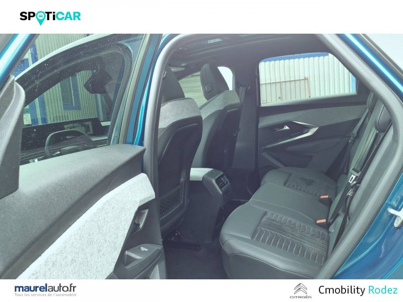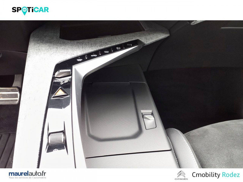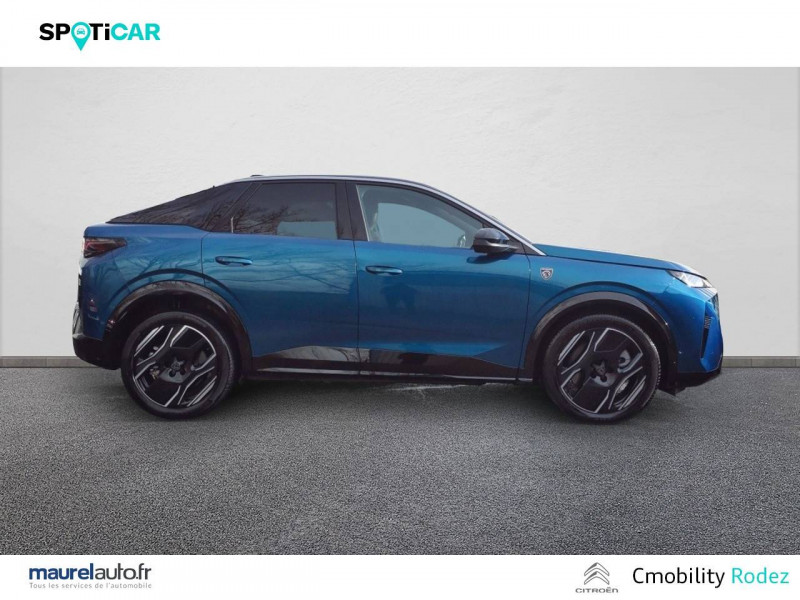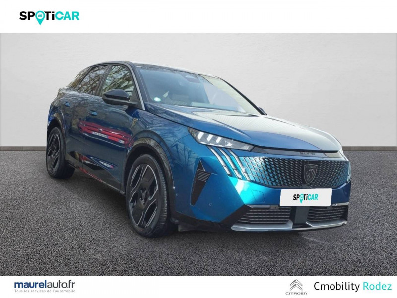 4 poignées de maintien rétractables (2 à l'AV et 2 à l'AR) / 6 airbags: frontaux conducteur et passager auto-adaptatifs (passager neutralisable par clé), latéraux conducteur et passager AV (thorax et bassin), rideaux aux places AV et AR (tête et thorax) / 6 HPs (2 tweeters et 2 woofers à l'AV et 2 HPs à l'AR) / Accès et démarrage mains libres Proximity / Banquette AR avec dossier rabattable 40/20/40 / Câble électrique mode 3 triphasé 22 kW / Chargeur embarqué 11kW triphasé / Commutation adaptative des projecteurs / Détection de sous-gonflage indirecte / Drive Assist - Régulateur de vitesse adaptatif avec fonction Stop & Go / Eclairage d'ambiance indirect, jour & nuit sur la planche de bord, les panneaux de portes AV et sous l'écran panoramique 21'', associé aux modes de conduite, personnalisable en 8 couleurs / Eclairage intérieur Miroirs de courtoisie conducteur et passager occultables éclairés à LED, Plafonnier AV et lisseuses AR i-DOME tactiles à LED / Eléments de style éxterieur Becquet AR Noir brillant / Eléments de style intérieure Planche de bord moussée avec décor tissu RIMINI chiné, décor d'alcôve en Aluminium sérigraphié, façade et aérateurs Noir laqué avec décor Cast Iron, Panneaux de portes avec décor tissu RIMINI chiné, décor d'alcôve en Aluminium sérigraphié et jonc Cast Iron, accoudoirs TEP Isabella, surpiqûres Iced Clay à l' AV, Console centrale avec décor tissu RIMINI chiné, façade Noir laqué et jonc Cast Iron, accoudoir tissu RIMINI chiné / Eléments de style Jupes inférieures AV et AR, enjoliveurs de passages de roues et protections inférieures de portes Noir laqué / Enjoliveurs de passage de roues AV et AR laqué Noir / Essuie-vitre AV à déclenchement automatique / Frein de stationnement électrique / Habitacle et ciel de pavillon Noir / Hayon motorisé avec accès mains libres / Jantes alliage 20'' diamantées SOFIA Noir Orbital, vernis mat avec inserts aéro, vernis brillant / Kit de dépannage de pneumatique Compresseur 12 volts, flacon de produit de colmatage, anneau de remorquage, deux cales de roue / Lève-vitres AV/AR électriques et séquentiels avec antipincement / Monogrammes ailes AV: 'blason PEUGEOT' / Monogrammes AR E3008 / Pack Safety Plus Régulateur / Limiteur de vitesse, Freinage d'urgence automatique avec alerte risque de collision pilotée par caméra et radar, Alerte active de franchissement involontaire de ligne et bas côté, Reconnaissance étendue des panneaux de signalisation et préconisation de vitesse, Alerte attention conducteur / Pédalier et repose pied aluminium / PEUGEOT i-Cockpit panoramique avec écran incurvé et flottant 21 HD / PEUGEOT i-Connect Advanced: - Connect Plus: reconnaissance vocale connectée en langage naturel, Services de sécurité: alarme connectée, Services à distance (E Remote Control, Remote Control, Find My Car, My Trip Report, Peugeot Skill for Alexa), Fonctions de Navigation (Trafic en temps réel, prévisions météorologiques,parking, recherche TomTom, limitations de vitesse, prix du carburant, mise à jour cartographie Over The Air, Send to Nav, Geofencing, recharges publiques, Trip Planner / EV routing, e ROUTE par Free2move charge / PEUGEOT i-Connect Advanced Navigation 3D connectée, 4 prises USB: 1 prise USB C (Data & charge) et 1 prise USB C (Charge) à l'AV, 2 prises USB C (Charge) à l'AR / PEUGEOT i-Toggles virtuels avec 10 raccourcis personnalisables / Plancher de coffre 2 positions / Prise 12 V (x3 : zone connectique, AR de console et coffre) / Projecteurs PEUGEOT PIXEL LED Eclairage adaptatif, commutation automatique des feux de route, feux de route avec fonctions anti éblouissement et boost / Recharge smartphone sans fil (puissance 15W) / Rétroviseur intérieur électrochrome sans cadre / Rétroviseurs extérieurs dégivrants avec réglage et rabattement électriques, éclairage de seuil / Sellerie Alcantara REFLECTION embossé, accompagnement TEP Isabella, écharpe tissu RIMINI chiné, surpiqûres Iced Clay / Seuil de portes AV inox avec lettrage PEUGEOT / Siège conducteur à réglage lombaire manuel / Sièges AV mécaniques à réglage en hauteur / Surtapis AV et AR avec surpiqûres Iced Clay et logo GT / Toit et becquet AR Black Diamond / Visiopark 1 Caméra de recul & aide au stationnement AV et AR, graphique et sonore / Volant chauffant / Volant compact, cuir fleur lisse et perforé avec commandes intégrées Noir Laqué, décors Cast Iron, surpiqûres Iced Clay, insert Noir laqué avec badge ?GT'