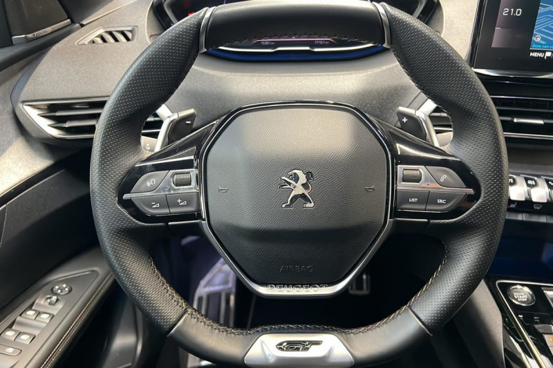 Accès et démarrage mains libres / Détection de sous-gonflage indirecte / Coques de rétroviseurs extérieurs Noir Perla Nera / Avertisseur de temps de conduite / Plancher de coffre 2 positions / Canules d'echappement de style chromées / Habitacle et ciel de pavillon Noir Mistral / Indicateur de rapport conseillé / Sécurité enfants électrique des vitres AR / Accoudoir central AV à ouverture papillon, avec compartiment de rangement éclairé et réfrigérable / Essuie-vitre AV avec système de lavage "Magic Wash" / Prise 12 V (x3 : zone connectique, AR de console et coffre) / Toggle Switches chromés (touches piano d'activation des fonctions de l'écran tactile) / Pédalier et repose-pied conducteur en aluminium / Drive Mode : Choix de 2 modes de conduite (Eco ou Sport) / Rétroviseur intérieur photosensible sans cadre / Fonction "Mirror Screen" (Apple CarPlay / Android Auto ) / Rétroviseurs extérieurs dégivrants avec réglage et rabattement électriques / Toit "Black Diamond" / Garnissage Tissu BELOMKA / TEP / 6 airbags (Frontaux adaptatifs, latéraux AV, rideaux AV/AR) / Appuis-tête à sécurité optimisée réglables en hauteur (conducteur, passager et AR x3) / Pares-soleil avec miroirs de courtoisie éclairés / Passages de roues rapportés Noir Mat / Peugeot i-Cockpit avec combiné tête haute numérique, volant compact multi-fonctions / Siège conducteur avec réglage lombaire / Vitres latérales AR et lunette AR chauffante surteintées / Volant cuir fleur perforé Mistral avec bagues chromées et badge GT / Projecteurs "Peugeot Full LED Technology" avec correction automatique de site, fonction Eclairage Virage Statique,"Foggy Mode" et feux diurnes à LED sous projecteurs / Kit de dépannage de pneumatique / Pack Visibilité : Eclairage d'accompagnement automatique Allumage automatique des feux de croisement Essuie-vitre AV à déclenchement automatique / Navigation 3D connectée avec écran tactile capacitif 10" HD Connexion automatique et permanente via carte SIM intégrée au véhicule Avec reconnaissance vocale Cartographie Europe / PEUGEOT Connect SOS / Pack City 1 : Aide graphique et sonore au stationnement AV Pack City Aide au stationnement AR (Graphique et sonore) Visiopark 1 (Caméra de recul avec restitution sur l'écran tactile d'une vue AR et d'une vue de dessus de l'environnement AR du véhicule) / Pack Drive Assist Plus : Régulateur de vitesse adaptatif avec fonction Stop&Go Système de surveillance d'angle mort Aide au maintien de la position dans la voie / Pack Eclairage d'ambiance : Eclairage à LED des caves à pied / Pack Safety Plus : Alerte attention conducteur Commutation automatique des feux de route Alerte active de franchissement involontaire de ligne et bas côté Pack Safety Freinage d'urgence automatique et alerte risque de collision / Lève-vitres AV/AR électriques et séquentiels avec antipincement / / Véhicules équivalents: C5 Aircross - Tiguan - X3