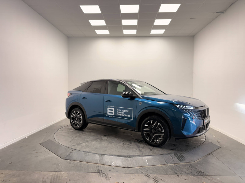 4 poignées de maintien rétractables (2 à l'AV et 2 à l'AR) / 6 airbags: frontaux conducteur et passager auto-adaptatifs (passager neutralisable par clé), latéraux conducteur et passager AV (thorax et bassin), rideaux aux places AV et AR (tête et thorax) / 6 HP (2 tweeters et 2 woofers à l'AV et 2 larges bandes à l'AR) / Accès et démarrage mains libres Proximity / Banquette AR avec dossier rabattable 40/20/40 avec accoudoir central / Boîte de vitesse automatique, séquentielle (6 rapports) / Commutation adaptative des projecteurs / Commutation automatique des feux de route / Détection de sous-gonflage indirecte / Drive Assist - Régulateur de vitesse adaptatif avec fonction Stop & Go / Eclairage d'ambiance indirect, jour & nuit sur la planche de bord, les panneaux de portes AV et sous l'écran panoramique 21'', associé aux modes de conduite, personnalisable en 8 couleurs / Eclairage intérieur Miroirs de courtoisie conducteur et passager occultables éclairés à LED / Eléments de style éxterieur Bandeau entre les projecteurs Noir laqué avec logo 3008. Calandre couleur caisse, écopes latérales Noir laqué, décor inférieur Gris Meteor, jupe inférieure Noir grainé. Vitres AR, vitres de custode et lunette AR surteintées. Lécheurs de vitres masqués. Enjoliveurs de passages de roues et protections inférieures de portes Noir grainé. Bandeau entre les feux AR Noir laqué avec lettrage PEUGEOT. Pare chocs AR avec décor Gris Meteor et jupe inférieure Noir grainé, Monogrammes AV et AR / Eléments de style intérieure Planche de bord moussée avec décor tissu RIMINI chiné, décor d'alcôve en Aluminium sérigraphié, façade et aérateurs Noir laqué avec décor Cast Iron, Panneaux de portes avec décor tissu RIMINI chiné, décor d'alcôve en Aluminium sérigraphié et jonc Cast Iron, accoudoirs TEP Isabella, surpiqûres Iced Clay à l'AV, Console centrale avec décor tissu RIMINI chiné, façade Noir laqué et jonc Cast Iron, accoudoir tissu RIMINI chiné / Essuie-vitre AV à déclenchement automatique / Frein de stationnement électrique / Habitacle et ciel de pavillon Noir / Hayon motorisé avec accès mains libres / Jantes alliage 19" diamantées BREDA Noir Orbital, vernis brillant / Lève-vitres AV/AR électriques et séquentiels avec antipincement / Monogrammes ailes AV: blason PEUGEOT / Monogrammes AR 3008 et Hybrid / Pack Safety Plus Régulateur / Limiteur de vitesse, Freinage d'urgence automatique avec alerte risque de collision pilotée par caméra et radar, Alerte active de franchissement involontaire de ligne et bas côté, Reconnaissance étendue des panneaux de signalisation et préconisation de vitesse, Alerte attention conducteur / Pare-brise feuilleté acoustique / Pédalier et repose pied aluminium / PEUGEOT i-Cockpit panoramique avec écran incurvé et flottant 21'' HD / PEUGEOT i-Connect Advanced - Navigation 3D connectée, 4 prises USB: 1 prise USB C (Data & charge) et 1 prise USB C (Charge) à l'AV, 2 prises USB C (Charge) à l'AR - Connect Plus (Abonnement 6 mois inclus) - 2 prises 12 V (Console centrale, coffre) / PEUGEOT i-Toggles virtuels avec 10 raccourcis personnalisables / Plancher de coffre modulable 2 positions / Projecteurs PEUGEOT PIXEL LED Eclairage adaptatif, commutation automatique des feux de route, feux de route avec fonctions anti éblouissement et boost / Rétroviseur intérieur électrochrome / Sellerie tissu NEW UZIRIS embossé, accompagnement TEP Isabella, écharpe tissu RIMINI chiné, surpiqûres Iced Clay / Seuil de portes AV inox avec lettrage PEUGEOT / Siège conducteur à réglage lombaire manuel / Sièges AV à réglage en hauteur manuel / Surtapis AV et AR avec surpiqûres Iced Clay / Toit et becquet AR Black Diamond / Visiopark 1 Caméra de recul & aide au stationnement AV et AR, graphique et sonore / Volant chauffant / Volant compact, cuir fleur lisse et perforé avec commandes intégrées Noir Laqué, décors Cast Iron, surpiqûres Iced Clay, insert Noir laqué avec badge ?GT'