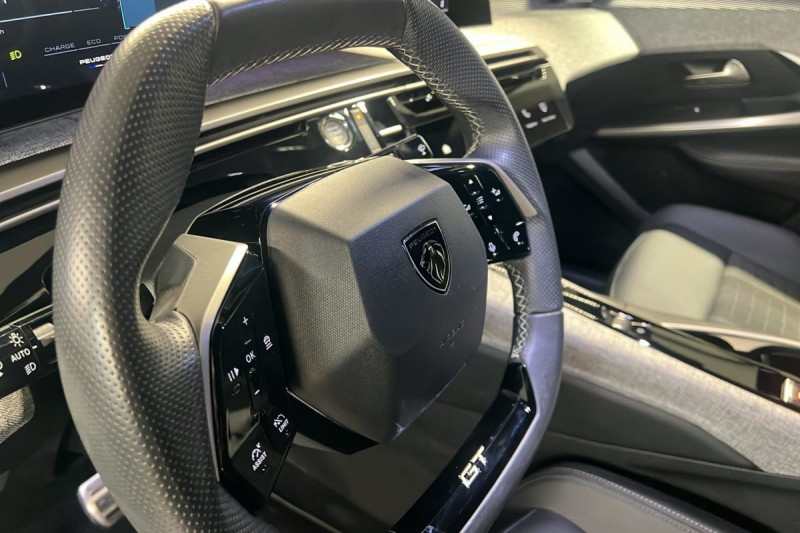 Frein de stationnement électrique / Détection de sous-gonflage indirecte / Essuie-vitre AV à déclenchement automatique / 6 HP (2 tweeters et 2 woofers à l'AV et 2 larges bandes à l'AR) / Hayon motorisé avec accès mains libres / Pédalier et repose pied aluminium / Pack Safety Plus : Alerte attention conducteur Reconnaissance étendue des panneaux de signalisation et préconisation de vitesse Alerte active de franchissement involontaire de ligne et bas côté Freinage d'urgence automatique avec alerte risque de collision pilotée par caméra et radar / Plancher de coffre modulable 2 positions / 4 poignées de maintien rétractables (2 à l'AV et 2 à l'AR) / Volant chauffant / Drive Assist - Régulateur de vitesse adaptatif avec fonction Stop & Go / PEUGEOT i-Cockpit panoramique avec écran incurvé et flottant 21 HD / PEUGEOT i-Toggles virtuels avec 10 raccourcis personnalisables / PEUGEOT i-Connect Advanced Navigation 3D connectée, Mirror Link, 4 prises USB: 1 prise USB C (Data & charge) et 1 prise USB C (Charge) à l'AV, 2 prises USB C (Charge) à l'AR / 6 airbags: frontaux conducteur et passager auto-adaptatifs (passager neutralisable par clé), latéraux conducteur et passager AV (thorax et bassin), rideaux aux places AV et AR (tête et thorax) / Accès et démarrage mains libres Proximity / Vitres AR, custodes et lunette AR teintées / Banquette AR avec dossier rabattable 40/20/40 / Projecteurs PEUGEOT PIXEL LED Eclairage adaptatif, commutation automatique des feux de route, feux de route avec fonctions anti éblouissement et boost / Toit et becquet AR Black Diamond / Eclairage d'ambiance indirect, jour & nuit sur la planche de bord, les panneaux de portes AV et sous l'écran panoramique 21'', associé aux modes de conduite, personnalisable en 8 couleurs / Volant compact, cuir fleur lisse et perforé avec commandes intégrées Noir Laqué, décors Cast Iron, surpiqûres Iced Clay, insert Noir laqué avec badge GT / Commutation adaptative des projecteurs / Eclairage intérieur Miroirs de courtoisie conducteur et passager occultables éclairés à LED, Plafonnier AV et lisseuses AR i-DOME tactiles à LED / Sièges AV à réglage en hauteur manuel / Sellerie tissu NEW UZIRIS embossé, accompagnement TEP Isabella, écharpe tissu RIMINI chiné, surpiqûres Iced Clay / Pare-brise feuilleté acoustique / Lève-vitres AV/AR électriques et séquentiels avec antipincement / Siège conducteur à réglage lombaire manuel / / Véhicules équivalents: C5 Aircross - Tiguan - X3