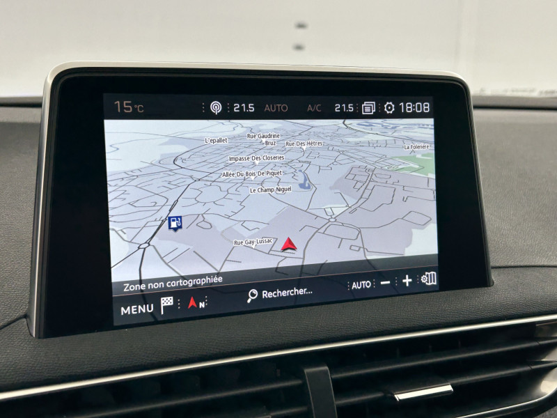 ABS, AFU, REF / Accès et démarrage mains libres / Accoudoir central AV à ouverture papillon, avec compartiment de rangement éclairé et réfrigérable / Aide sonore et graphique au stationnement AR / Airbags frontaux conducteur et passager adaptatifs (passager neutralisable par clé), airbags latéraux conducteur et passager AV.airbags rideaux de tête aux places AV/AR / Air conditionné automatique bi-zone avec aérateurs aux places AR / Appuis-tête à sécurité optimisée réglables en hauteur sur les sièges conducteur et passager AV ainsi que sur les places latérales AR / Avertisseur de temps de conduite / Bandeau de pare-chocs AR chromé / Banquette AR rabattable 1/3 - 2/3 (avec modularité "Magic Flat" et commandes dans le coffre) avec accoudoir et trappe à skis / Boîte à gants floquée et éclairée / Boitiers de rétroviseurs extérieurs Noir Perla Nera / Bouclier AV exclusif et calandre à damier chromé / Calandre avec jonc périphérique chrome brillant et satiné, damier chromé et lettrage Peugeot noir / Canules d'echappement de style chromées / Ceintures de sécurité AR 3 points à enrouleur (x3) avec prétensionneurs et limiteurs d'effort aux places latérales / Ceintures de sécurité AV 3 points à enrouleur, réglables en hauteur avec prétensionneurs et limiteurs d'effort / Commande de verrouillage à distance (2 plips) / Console centrale AV avec 2 porte-gobelets / Contrôle dynamique de stabilité CDS avec antipatinage électronique ASR / Décors de planche de bord et panneaux de portes en maille "Brumeo" / Décors intérieurs chromés / Détection de sous-gonflage indirecte / Direction assistée électrique, colonne de direction réglable en hauteur et profondeur (mécanique) / Eclairage intérieur LED: plafonnier tactile 3 spots + 2 LEDs d'ambiance, 2 liseuses AR, pare-soleil, boîte à gants, accoudoir central, zone connectique, caves à pied, zone coffre (x2) / Enjoliveur d'arc de pavillon en inox / Enjoliveur en inox sur les protecteurs de bas de portes / Essuie-vitre AR avec enclenchement automatique en marche AR / Essuie-vitre AV avec système de lavage "Magic Wash" / Fixations pour 3 sièges enfants suivant norme ISOFIX aux places passager AV et latérales AR / Fonction "Mirror Screen" / Frein de stationnement électrique avec aide au démarrage en pente / Habitacle et ciel de pavillon Noir Mistral / Indicateur de rapport conseillé / Inserts d'ailes AV chromés / Jantes alliage 18" "Detroit" bi-ton diamantées / Jonc de vitres en inox / Lève-vitres AV/AR électriques et séquentiels avec antipincement / Lunette AR chauffante avec antennes sérigraphiées / Passages de roues rapportés noirs / Pédalier et repose-pied conducteur aluminium / Peinture opaque / PEUGEOT i-Cockpit Amplify / Plafonnier AV avec spots de lecture (x2) et plafonnier AR à extinction temporisée / Plancher de coffre 2 positions / Poches/filets aumonières au dos des sièges AV / Poignées de maintien (x4) rétractables avec frein (crochets pour cintres aux places AR) / Prise 12 V (x3 : zone connectique, AR de console et coffre) / Prise USB (dans la zone connectique) / Radio 6 HP, bi-tuner compatible MP3 et connectivité Bluetooth (audio streaming, kit mains libres), avec commandes au volant, écran tactile capacitif 8" / Sabots de pare-chocs AV gris métallisé / Sécurité enfants électrique des vitres AR / Sellerie TEP & Tissu "Imila" / Seuils de portes AV en Inox / Siège passager AV mécanique avec mise en tablette / Siège passager AV mécanique réglable en hauteur / Spots de lecture (2x) AR / Surtapis AV/AR / Toit "Black Diamond" (toit Noir Perla Nera) / Vitres latérales AR et lunette AR surteintées / Volant Cuir pleine fleur perforé avec bagues chromées et badge GT Line / Pack Visibilité: Essuie-vitre AV à déclenchement automatique, Allumage automatique des feux de croisement, Eclairage d'accompagnement automatique, Rétroviseur intérieur photosensible / Kit de dépannage de pneumatique: Anneau remorquage, Manivelle de frein de stationnement électrique, Compresseur 12 V et flacon de produit de colmatage, 2 cales de roue / Pack City 1: Aide graphique et sonore au stationnement AV, Visiopark 1 / Pack Eclairage d'ambiance: Eclairage à LED des caves à pieds AV et des bacs de portes AV, LED d'ambiance dans plafonnier AV / Pack Safety Plus: Commutation automatique des feux de route, Alerte active de franchissement involontaire de ligne, Active Safety Brake, Système actif de surveillance d'angle mort, Alerte Risque de Collision (Distance Alert), Alerte attention conducteur / Peugeot Connect: Maintenance - Téléservices, Navigation connectée 3D avec reconnaissance vocale, Sécurité - SOS & Assistance / Projecteurs "Peugeot Full Led Technology": Clignotants AV à LEDs avec défilement dynamique, Projecteurs antibrouillard à LED avec fonction cornering, Correction automatique de site / / Véhicules équivalents: C5 Aircross - Tiguan - X3