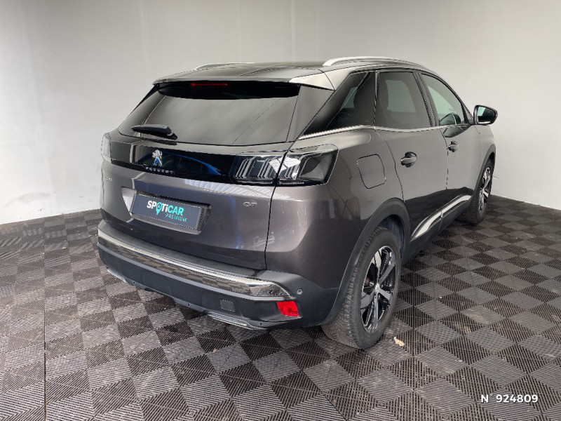 6 airbags (Frontaux adaptatifs, latéraux AV, rideaux AV et AR) / Banquette AR rabattable 1/3 - 2/3 avec accoudoir central, trappe à skis et commandes de rabattement depuis le coffre / Calandre avec design évolutif chromé / Enjoliveur d'arc de pavillon en Inox Brillant / Enjoliveurs d'ailes AV chromés / Jantes alliage 18" diamantées DETROIT bi-ton Noir Onyx brillant avec pneumatiques 225/55 R18 102 V / Lécheurs de vitres, joncs de vitres latérales en Inox Brillant / Appuis-tête à sécurité optimisée réglables en hauteur (conducteur, passager et arrière x3) / PEUGEOT Connect SOS & Assistance et Teleservices / Toit "Black Diamond" / Siège passager AV avec mise en tablette / Sabot de pare-chocs AV peint Métallure / Siège conducteur avec réglage lombaire / Peugeot i-Cockpit avec combiné tête haute numérique, volant compact multi-fonctions / Rétroviseurs extérieurs dégivrants avec réglage et rabattement électriques, éclairage d'accueil à LED, témoin de surveillance d'angles morts / Frein de stationnement électrique avec aide au démarrage en pente et serrage automatique / Passages de roues rapportés Noir Mat / Décors de planche de bord et panneaux de portes Alcantara Gris Greval / Pack Visibilité / Volant cuir fleur perforé Mistral avec bagues chromées et badge GT / Protecteurs de bas de portes avec inserts Inox Brillant / Accès et démarrage mains libres / Projecteurs "Peugeot Full LED Technology" avec correction automatique de site, fonction Eclairage Virage Statique,"Foggy Mode" et feux diurnes à LED sous projecteurs / Drive Mode : Choix de 2 modes de conduite (Eco ou Sport) / Prises USB de charge (x2) au 2 rang / Pares-soleil avec miroirs de courtoisie éclairés / Commandes de lève-vitres avec inserts chromés / Indicateur de rapport conseillé / Avertisseur de temps de conduite / Poches/filets aumonières au dos des sièges AV / Kit de dépannage de pneumatique : compresseur 12 volts, flacon de produit de colmatage, anneau de remorquage, deux cales de roue, manivelle de frein de stationnement électrique / Vitres latérales AR et lunette AR chauffante surteintées / Coques de rétroviseurs extérieurs Noir Perla Nera / Barres de toit longitudinales en aluminium / Navigation 3D connectée avec écran tactile capacitif 10" HD Avec reconnaissance vocale, cartographie Europe, services de Navigation connectée TomTom 3 ans inclus, connexion automatique et permanente via carte SIM intégrée au véhicule / Pédalier et repose-pied conducteur en aluminium / Seuils de portes AV en Inox / Rétroviseur intérieur photosensible sans cadre / Fonction "Mirror Screen" (Apple CarPlay / Android Auto ) / Surtapis AV et AR / Prise 12V (x3 : zone connectique, AR de console et coffre) / Air conditionné automatique bi-zone avec aérateurs aux places AR / Pack Safety Plus / Pack Drive Assist Plus / Direction assistée électrique, colonne de direction réglable en hauteur et profondeur (mécanique) / Sécurité enfants électrique des vitres AR / "Toggle Switches" chromés (touches 'piano' d'activation des fonctions de l'écran tactile) / Détection de sous-gonflage indirecte / Pack Eclairage d'ambiance / Driver Sport Pack / Plancher de coffre 2 positions / Essuie-vitre AV avec système de lavage "Magic Wash" / Accoudoir central AV à ouverture papillon, avec compartiment de rangement éclairé et réfrigérable / Garnissage Tissu BELOMKA / TEP / Lève-vitres AV et AR électriques séquentiels avec antipincement / Canules d'echappement de style chromées / Habitacle et ciel de pavillon Noir Mistral / Pack City 1 / Plafonniers AV/AR à LED avec 2 spots de lecture