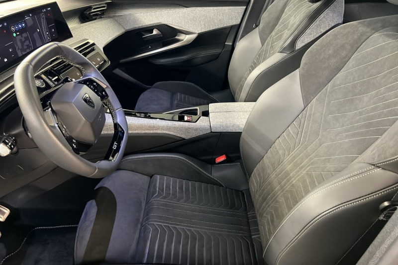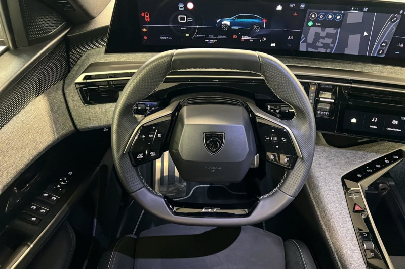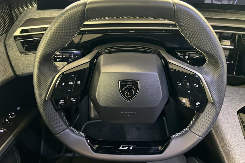 Frein de stationnement électrique / Détection de sous-gonflage indirecte / Commutation automatique des feux de route / Essuie-vitre AV à déclenchement automatique / 6 HP (2 tweeters et 2 woofers à l'AV et 2 larges bandes à l'AR) / Hayon motorisé avec accès mains libres / Pédalier et repose pied aluminium / Pack Safety Plus : Alerte attention conducteur Reconnaissance étendue des panneaux de signalisation et préconisation de vitesse Alerte active de franchissement involontaire de ligne et bas côté Freinage d'urgence automatique avec alerte risque de collision pilotée par caméra et radar / Plancher de coffre modulable 2 positions / 4 poignées de maintien rétractables (2 à l'AV et 2 à l'AR) / Volant chauffant / PEUGEOT i-Toggles virtuels avec 10 raccourcis personnalisables / 6 airbags: frontaux conducteur et passager auto-adaptatifs (passager neutralisable par clé), latéraux conducteur et passager AV (thorax et bassin), rideaux aux places AV et AR (tête et thorax) / Accès et démarrage mains libres Proximity / Projecteurs PEUGEOT PIXEL LED Eclairage adaptatif, commutation automatique des feux de route, feux de route avec fonctions anti éblouissement et boost / Toit et becquet AR Black Diamond / Eclairage d'ambiance indirect, jour & nuit sur la planche de bord, les panneaux de portes AV et sous l'écran panoramique 21'', associé aux modes de conduite, personnalisable en 8 couleurs / Seuil de portes AV inox avec lettrage PEUGEOT / Volant compact, cuir fleur lisse et perforé avec commandes intégrées Noir Laqué, décors Cast Iron, surpiqûres Iced Clay, insert Noir laqué avec badge ?GT? / Commutation adaptative des projecteurs / PEUGEOT i-Cockpit panoramique avec écran incurvé et flottant 21'' HD / Rétroviseur intérieur électrochrome / Boîte de vitesse automatique, séquentielle (6 rapports) / Eclairage intérieur Miroirs de courtoisie conducteur et passager occultables éclairés à LED / Banquette AR avec dossier rabattable 40/20/40 avec accoudoir central / Jantes alliage 19" diamantées BREDA Noir Orbital, vernis brillant / PEUGEOT i-Connect Advanced - Navigation 3D connectée, 4 prises USB: 1 prise USB C (Data & charge) et 1 prise USB C (Charge) à l'AV, 2 prises USB C (Charge) à l'AR - 2 prises 12 V (Console centrale, coffre) / Pare-brise feuilleté acoustique / Lève-vitres AV/AR électriques et séquentiels avec antipincement / Siège conducteur à réglage lombaire manuel / / Véhicules équivalents: C5 Aircross - Tiguan - X3