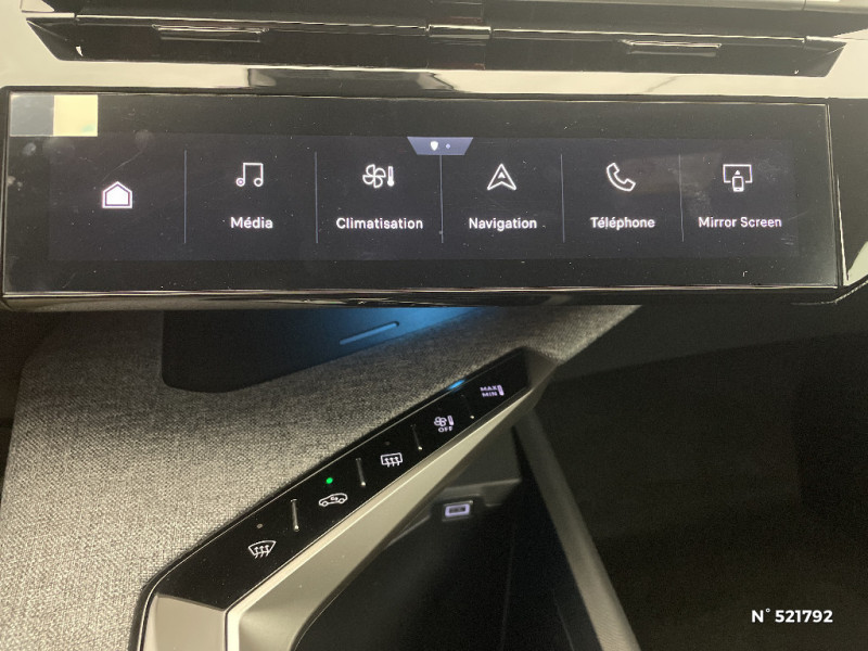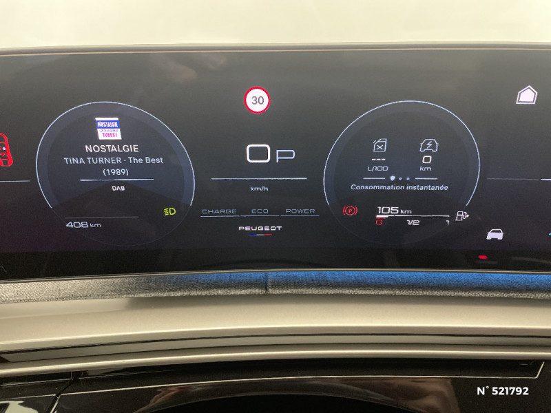 PEUGEOT i-Connect - Connect Plus: Services de sécurité: alarme connectée (Si véhicule équipé de l?alarme), Services à distance (E-Remote Control, Remote Control, Find My Car, My Trip Report, Peugeot Skill for Alexa), e-ROUTES par Free2move charge, (Abonnement 6 mois inclus, renouvellement 8 / mois) / Boîte de vitesse automatique, séquentielle (6 rapports) / Frein de stationnement électrique / Eléments de style éxterieur Bandeau entre les projecteurs Noir laqué avec logo '3008'. Calandre couleur caisse, écopes latérales Noir laqué, décor inférieur Gris Meteor, jupe inférieure Noir grainé. Vitres AR, vitres de custode et lunette AR surteintées. Lécheurs de vitres masqués. Enjoliveurs de passages de roues et protections inférieures de portes Noir grainé. Bandeau entre les feux AR Noir laqué avec lettrage 'PEUGEOT'. Pare chocs AR avec décor Gris Meteor et jupe inférieure Noir grainé, Monogrammes AV et AR / 3 prises 12 V (Console centrale, rang 2, coffre) / Sellerie tissu CRISPY embossé, accompagnement TEP Isabella, écharpe tissu RIMINI chiné, surpiqûres Quartz / Projecteurs "Peugeot Led Technology" / PEUGEOT i-Connect - Connect One: Fonctionnalités principales à bord (Mises à jour Over The Air, Géolocalisation), Services de sécurité (Appel d?urgence, Peugeot Assistance), Services d?entretien (Télémaintenance, guide d?utilisation digital), (Abonnement 10 ans inclus) / Sièges AV à réglage en hauteur manuel / Eclairage intérieur Plafonnier AV et liseuses AR à LED, Boite à gants et rangement de console éclairés à LED, Eclairage des caves à pieds AV à LED / Lève-vitres AV et AR électriques séquentiels avec antipincement / Monogrammes AV: 'blason PEUGEOT' et '3008' / Monogrammes AR '3008' et 'Hybrid / Pare-brise feuilleté acoustique / 6 airbags: frontaux conducteur et passager auto-adaptatifs (passager neutralisable par clé), latéraux conducteur et passager AV (thorax et bassin), rideaux aux places AV et AR (tête et thorax) / Eléments de style intérieure Planche de bord moussée avec décor tissu RIMINI chiné et alcôve Graphène, façade et aérateurs Noir laqué avec décor Gris Stène, Panneaux de portes avec décor tissu RIMINI chiné, alcôve Graphène et jonc Gris Stène, accoudoirs TEP Isabella, surpiqûres Quartz à l'AV, Console centrale avec décor tissu RIMINI chiné, façade Noir laqué et jonc Gris Stène, accoudoir tissu RIMINI chiné / Volant compact croute de cuir avec commandes intégrées Noir laqué, décors Gris Stène / Accès et démarrage mains libres Proximity 2 Télécommandes 3 boutons (verrouillage, coffre, déverrouillage) / Jantes alliage 19" diamantées BREDA Noir Orbital, vernis brillant / PEUGEOT i-Cockpit panoramique avec Double écran HD flottant (2 x 10'') / Vitres AR, custodes et lunette AR teintées / Banquette AR avec dossier rabattable 40/20/40 / Visiopark 1 Caméra de recul & aide au stationnement AR, graphique et sonore / Habitacle et ciel de pavillon noir / Essuie-vitre AV à déclenchement automatique / PEUGEOT i-Connect Radio DAB, Bluetooth® (connexion 2 téléphones), Mirror Screen sans fil (Apple CarPlay / Android Auto), Peugeot Connect SOS & Assistance, 1 prise USB C (Data & charge) / Rétroviseur intérieur électrochrome / PEUGEOT i-Connect - Connect Plus: Services de sécurité: alarme connectée, Services à distance (E-Remote Control, Remote Control, Find My Car, My Trip Report, Peugeot Skill for Alexa), (Abonnement 6 mois inclus, renouvellement 8 / mois) / PEUGEOT i-Connect - Connect One: Fonctionnalités principales à bord (Mises à jour Over The Air, Géolocalisation), Services de sécurité (Appel d?urgence, Peugeot Assistance), Services d?entretien (Télémaintenance, guide d?utilisation digital), e-ROUTES par Free2move charge Services à distance (E Remote Control) (Abonnement 10 ans inclus) / Détection de sous-gonflage indirecte / 6 haut-parleurs (2 tweeters et 2 woofers à l'AV et 2 larges bandes à l'AR) / 4 poignées de maintien rétractables (2 à l'AV et 2 à l'AR) / Rétroviseurs extérieurs dégivrants avec réglage et rabattement électriques,éclairage de seuil / Pack Safety Plus Régulateur / Limiteur de vitesse, Freinage d'urgence automatique avec alerte risque de collision, Alerte active de franchissement involontaire de ligne et bas côté, Reconnaissance étendue des panneaux de signalisation et préconisation de vitesse, Alerte attention conducteur / Plancher de coffre modulable 2 positions / Pack Safety Plus Régulateur / Limiteur de vitesse, Freinage d'urgence automatique avec alerte risque de collision et protection des usagers de la route vulnérables (piétons, cyclistes,... ) Alerte active de franchissement involontaire de ligne et bas côté, Reconnaissance étendue des panneaux de signalisation et préconisation de vitesse, Alerte attention conducteur