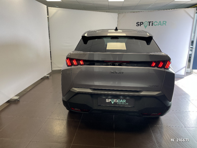 Visiopark 1 Caméra de recul & aide au stationnement AR, graphique et sonore / Eléments de style éxterieur Bandeau entre les projecteurs Noir laqué avec logo '3008? Calandre couleur caisse, écopes latérales Noir laqué, décor inférieur Gris Meteor, jupe inférieure Noir grainé Vitres AR, vitres de custode et lunette AR surteintées, Lécheurs de vitres masqués, Enjoliveurs de passages de roues et protections inférieures de portes Noir grainé, Bandeau entre les feux AR Noir laqué avec lettrage 'PEUGEOT,? Pare chocs AR avec décor Gris Meteor et jupe inférieure Noir grainé, Becquet AR couleur caisse / Monogrammes AV: 'blason PEUGEOT' et '3008' / Monogrammes AR '3008' et 'Hybrid / Rétroviseurs extérieurs dégivrants avec réglage et rabattement électriques,éclairage de seuil / Détection de sous-gonflage indirecte / Sellerie tissus UZIRIS embossé et IRIZE embossé, accompagnement TEP Isabella, écharpe tissu RIMINI et surpiqûres Quartz / Jantes alliage 19" diamantées BREDA Noir Orbital, vernis brillant / PEUGEOT i-Connect - Connect One: Fonctionnalités principales à bord (Mises à jour Over The Air, Géolocalisation), Services de sécurité (Appel d?urgence, Peugeot Assistance), Services d?entretien (Télémaintenance, guide d?utilisation digital), (Abonnement 10 ans inclus) / 3 prises 12V 3 prises 12 V (Console centrale, AR de la console centrale, coffre) / 3 prises 12 V (Console centrale, rang 2, coffre) / Pare-brise feuilleté acoustique / Lève-vitres AV et AR électriques séquentiels avec antipincement / Plancher de coffre 2 positions / Projecteurs "Peugeot Full Led Technology" / Eléments de style éxterieur Bandeau entre les projecteurs Noir laqué avec logo '3008'. Calandre couleur caisse, écopes latérales Noir laqué, décor inférieur Gris Meteor, jupe inférieure Noir grainé. Vitres AR, vitres de custode et lunette AR surteintées. Lécheurs de vitres masqués. Enjoliveurs de passages de roues et protections inférieures de portes Noir grainé. Bandeau entre les feux AR Noir laqué avec lettrage 'PEUGEOT'. Pare chocs AR avec décor Gris Meteor et jupe inférieure Noir grainé, Monogrammes AV et AR / Sièges AV mécaniques à réglage en hauteur / Plancher de coffre modulable 2 positions / Rétroviseur intérieur électrochrome / Habitacle et ciel de pavillon noir / Projecteurs "Peugeot Led Technology" / Sièges AV à réglage en hauteur manuel / 6 haut-parleurs (2 tweeters et 2 woofers à l'AV et 2 haut-parleurs à l'AR) / PEUGEOT i-Connect Radio DAB, Bluetooth® (connexion 2 téléphones), Mirror Screen sans fil (Apple CarPlay / Android Auto), Peugeot Connect SOS & Assistance, 1 prise USB C (Data & charge) / Pack Safety Plus Régulateur / Limiteur de vitesse, Freinage d'urgence automatique avec alerte risque de collision, Alerte active de franchissement involontaire de ligne et bas côté, Reconnaissance étendue des panneaux de signalisation et préconisation de vitesse, Alerte attention conducteur / Accès et démarrage mains libres Proximity 2 Télécommandes 3 boutons (verrouillage, coffre, déverrouillage) / Eclairage intérieur Plafonnier AV et liseuses AR à LED, Boite à gants et rangement de console éclairés à LED, Eclairage des caves à pieds AV à LED / PEUGEOT i-Cockpit panoramique avec Double écran HD flottant (2 x 10'') / Vitres AR, custodes et lunette AR teintées / Banquette AR avec dossier rabattable 40/20/40 / PEUGEOT i-Connect - Connect Plus: Services de sécurité: alarme connectée (Si véhicule équipé de l?alarme), Services à distance (E-Remote Control, Remote Control, Find My Car, My Trip Report, Peugeot Skill for Alexa), e-ROUTES par Free2move charge, (Abonnement 6 mois inclus, renouvellement 8 / mois) / PEUGEOT i-Connect - Connect One: Fonctionnalités principales à bord (Mises à jour Over The Air, Géolocalisation), Services de sécurité (Appel d?urgence, Peugeot Assistance), Services d?entretien (Télémaintenance, guide d?utilisation digital), Divertissement (Jeux), (Abonnement 10 ans inclus) / Frein de stationnement électrique / Essuie-vitre AV à déclenchement automatique / 6 haut-parleurs (2 tweeters et 2 woofers à l'AV et 2 larges bandes à l'AR) / 4 poignées de maintien rétractables (2 à l'AV et 2 à l'AR) / 6 airbags: frontaux conducteur et passager auto-adaptatifs (passager neutralisable par clé), latéraux conducteur et passager AV (thorax et bassin), rideaux aux places AV et AR (tête et thorax) / Eléments de style intérieure Planche de bord moussée avec décor tissu RIMINI chiné et alcôve Graphène, façade et aérateurs Noir laqué avec décor Gris Stène, Panneaux de portes avec décor tissu RIMINI chiné, alcôve Graphène et jonc Gris Stène, accoudoirs TEP Isabella, surpiqûres Quartz à l'AV, Console centrale avec décor tissu RIMINI chiné, façade Noir laqué et jonc Gris Stène, accoudoir tissu RIMINI chiné / Volant compact croute de cuir avec commandes intégrées Noir laqué, décors Gris Stène / Prise 12V (x3 : zone connectique, AR de console et coffre) / Sellerie tissu CRISPY embossé, accompagnement TEP Isabella, écharpe tissu RIMINI chiné, surpiqûres Quartz / Kit de dépannage de pneumatique Compresseur 12 volts, flacon de produit de colmatage, anneau de remorquage, deux cales de roue