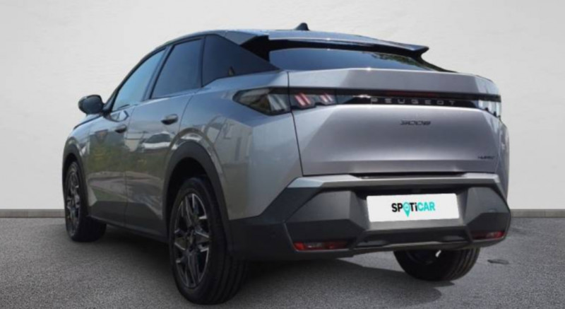 Boîte de vitesse automatique, séquentielle (6 rapports) / Commutation automatique des feux de route / Eclairage d'ambiance indirect, jour & nuit sur la planche de bord, les panneaux de portes AV et sous l'écran panoramique 21'', associé aux modes de conduite, personnalisable en 8 couleurs / Eclairage intérieur Miroirs de courtoisie conducteur et passager occultables éclairés à LED / Eléments de style intérieure Planche de bord moussée avec décor tissu RIMINI chiné, décor d'alcôve en Aluminium sérigraphié, façade et aérateurs Noir laqué avec décor Cast Iron, Panneaux de portes avec décor tissu RIMINI chiné, décor d'alcôve en Aluminium sérigraphié et jonc Cast Iron, accoudoirs TEP Isabella, surpiqûres Iced Clay à l' AV, Console centrale avec décor tissu RIMINI chiné, façade Noir laqué et jonc Cast Iron, accoudoir tissu RIMINI chiné / Essuie-vitre AV à déclenchement automatique / Frein de stationnement électrique / Jantes alliage 19" diamantées BREDA Noir Orbital, vernis brillant / Pack Safety Plus Régulateur / Limiteur de vitesse, Freinage d'urgence automatique avec alerte risque de collision pilotée par caméra et radar, Alerte active de franchissement involontaire de ligne et bas côté, Reconnaissance étendue des panneaux de signalisation et préconisation de vitesse, Alerte attention conducteur / PEUGEOT i-Cockpit panoramique avec écran incurvé et flottant 21'' HD / PEUGEOT i-Connect Advanced - Connect Plus: Reconnaissance vocale connectée en langage naturel, ChatGPT (Disponibilité ultérieurement) Services de sécurité: alarme connectée (Si véhicule équipé de l'alarme,) Services à distance (E Remote Control, Remote Control, Find My Car, My Trip Report, Peugeot Skill for Alexa), Fonctions de Navigation (Trafic en temps réel, prévisions météorologiques,parking, recherche TomTom, limitations de vitesse, prix du carburant, mise à jour cartographie Over The Air, Send to Nav, Geofenci / PEUGEOT i-Connect Advanced Navigation 3D connectée, 4 prises USB: 1 prise USB C (Data & charge) et 1 prise USB C (Charge) à l'AV, 2 prises USB C (Charge) à l'AR / Projecteurs PEUGEOT PIXEL LED Eclairage adaptatif, commutation automatique des feux de route, feux de route avec fonctions anti éblouissement et boost / Pédalier et repose pied aluminium / Visiopark 1 Caméra de recul & aide au stationnement AV et AR, graphique et sonore / Volant compact, cuir fleur lisse et perforé avec commandes intégrées Noir Laqué, décors Cast Iron, surpiqûres Iced Clay, insert Noir laqué avec badge ?GT' / 2 prises 12 V (Console centrale, coffre) / 4 poignées de maintien rétractables (2 à l'AV et 2 à l'AR) / 6 airbags: frontaux conducteur et passager auto-adaptatifs (passager neutralisable par clé), latéraux conducteur et passager AV (thorax et bassin), rideaux aux places AV et AR (tête et thorax) / 6 HP (2 tweeters et 2 woofers à l'AV et 2 larges bandes à l'AR) / Accès et démarrage mains libres Proximity 2 Télécommandes 3 boutons (verrouillage, coffre, déverrouillage) / Banquette AR avec dossier rabattable 40/20/40 / Commutation adaptative des projecteurs / Drive Assist - Régulateur de vitesse adaptatif avec fonction Stop & Go / Détection de sous-gonflage indirecte / Eléments de style éxterieur Bandeau entre les projecteurs Noir laqué avec logo 3008. Calandre couleur caisse, écopes latérales Noir laqué, décor inférieur Gris Meteor, jupe inférieure Noir grainé. Vitres AR, vitres de custode et lunette AR surteintées. Lécheurs de vitres masqués. Enjoliveurs de passages de roues et protections inférieures de portes Noir grainé. Bandeau entre les feux AR Noir laqué avec lettrage PEUGEOT. Pare chocs AR avec décor Gris Meteor et jupe inférieure Noir grainé, Monogrammes AV et AR / Habitacle et ciel de pavillon Noir / Hayon motorisé avec accès mains libres / Lève-vitres AV/AR électriques et séquentiels avec antipincement / Monogrammes ailes AV: 'blason PEUGEOT' / Monogrammes AR 3008 et Hybrid / Monogrammes AV: blason PEUGEOT et 3008 / Pare-brise feuilleté acoustique / PEUGEOT i-Toggles virtuels avec 10 raccourcis personnalisables / Plancher de coffre modulable 2 positions / Rétroviseurs extérieurs dégivrants avec réglage et rabattement électriques, éclairage de seuil / Seuil de portes AV inox avec lettrage PEUGEOT / Siège conducteur à réglage lombaire manuel / Sièges AV à réglage en hauteur manuel / Surtapis AV et AR avec surpiqûres Iced Clay et logo GT / Toit et becquet AR Black Diamond / Volant chauffant
