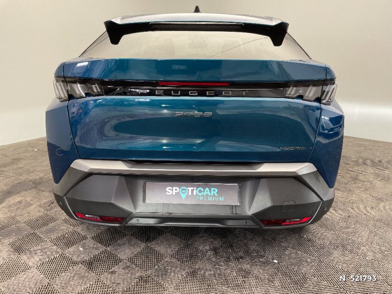 Rétroviseurs extérieurs dégivrants avec réglage et rabattement électriques,éclairage de seuil / PEUGEOT i-Connect - Connect Plus: Services de sécurité: alarme connectée, Services à distance (E-Remote Control, Remote Control, Find My Car, My Trip Report, Peugeot Skill for Alexa), (Abonnement 6 mois inclus, renouvellement 8 / mois) / PEUGEOT i-Connect - Connect One: Fonctionnalités principales à bord (Mises à jour Over The Air, Géolocalisation), Services de sécurité (Appel d?urgence, Peugeot Assistance), Services d?entretien (Télémaintenance, guide d?utilisation digital), e-ROUTES par Free2move charge Services à distance (E Remote Control) (Abonnement 10 ans inclus) / Plancher de coffre modulable 2 positions / Pack Safety Plus Régulateur / Limiteur de vitesse, Freinage d'urgence automatique avec alerte risque de collision, Alerte active de franchissement involontaire de ligne et bas côté, Reconnaissance étendue des panneaux de signalisation et préconisation de vitesse, Alerte attention conducteur / Frein de stationnement électrique / PEUGEOT i-Connect - Connect One: Fonctionnalités principales à bord (Mises à jour Over The Air, Géolocalisation), Services de sécurité (Appel d?urgence, Peugeot Assistance), Services d?entretien (Télémaintenance, guide d?utilisation digital), (Abonnement 10 ans inclus) / Boîte de vitesse automatique, séquentielle (6 rapports) / Rétroviseur intérieur électrochrome / Jantes alliage 19" diamantées BREDA Noir Orbital, vernis brillant / 4 poignées de maintien rétractables (2 à l'AV et 2 à l'AR) / Habitacle et ciel de pavillon noir / Pack Safety Plus Régulateur / Limiteur de vitesse, Freinage d'urgence automatique avec alerte risque de collision et protection des usagers de la route vulnérables (piétons, cyclistes,... ) Alerte active de franchissement involontaire de ligne et bas côté, Reconnaissance étendue des panneaux de signalisation et préconisation de vitesse, Alerte attention conducteur / 3 prises 12 V (Console centrale, rang 2, coffre) / Eléments de style éxterieur Bandeau entre les projecteurs Noir laqué avec logo '3008'. Calandre couleur caisse, écopes latérales Noir laqué, décor inférieur Gris Meteor, jupe inférieure Noir grainé. Vitres AR, vitres de custode et lunette AR surteintées. Lécheurs de vitres masqués. Enjoliveurs de passages de roues et protections inférieures de portes Noir grainé. Bandeau entre les feux AR Noir laqué avec lettrage 'PEUGEOT'. Pare chocs AR avec décor Gris Meteor et jupe inférieure Noir grainé, Monogrammes AV et AR / Accès et démarrage mains libres Proximity 2 Télécommandes 3 boutons (verrouillage, coffre, déverrouillage) / Lève-vitres AV et AR électriques séquentiels avec antipincement / PEUGEOT i-Connect Radio DAB, Bluetooth® (connexion 2 téléphones), Mirror Screen sans fil (Apple CarPlay / Android Auto), Peugeot Connect SOS & Assistance, 1 prise USB C (Data & charge) / Détection de sous-gonflage indirecte / Eléments de style intérieure Planche de bord moussée avec décor tissu RIMINI chiné et alcôve Graphène, façade et aérateurs Noir laqué avec décor Gris Stène, Panneaux de portes avec décor tissu RIMINI chiné, alcôve Graphène et jonc Gris Stène, accoudoirs TEP Isabella, surpiqûres Quartz à l'AV, Console centrale avec décor tissu RIMINI chiné, façade Noir laqué et jonc Gris Stène, accoudoir tissu RIMINI chiné / Volant compact croute de cuir avec commandes intégrées Noir laqué, décors Gris Stène / Monogrammes AR '3008' et 'Hybrid / Visiopark 1 Caméra de recul & aide au stationnement AR, graphique et sonore / 6 airbags: frontaux conducteur et passager auto-adaptatifs (passager neutralisable par clé), latéraux conducteur et passager AV (thorax et bassin), rideaux aux places AV et AR (tête et thorax) / Essuie-vitre AV à déclenchement automatique / Monogrammes AV: 'blason PEUGEOT' et '3008' / Pare-brise feuilleté acoustique / PEUGEOT i-Cockpit panoramique avec Double écran HD flottant (2 x 10'') / Vitres AR, custodes et lunette AR teintées / Banquette AR avec dossier rabattable 40/20/40 / Projecteurs "Peugeot Led Technology" / Sièges AV à réglage en hauteur manuel / Eclairage intérieur Plafonnier AV et liseuses AR à LED, Boite à gants et rangement de console éclairés à LED, Eclairage des caves à pieds AV à LED / PEUGEOT i-Connect - Connect Plus: Services de sécurité: alarme connectée (Si véhicule équipé de l?alarme), Services à distance (E-Remote Control, Remote Control, Find My Car, My Trip Report, Peugeot Skill for Alexa), e-ROUTES par Free2move charge, (Abonnement 6 mois inclus, renouvellement 8 / mois) / Sellerie tissu CRISPY embossé, accompagnement TEP Isabella, écharpe tissu RIMINI chiné, surpiqûres Quartz / 6 haut-parleurs (2 tweeters et 2 woofers à l'AV et 2 larges bandes à l'AR)