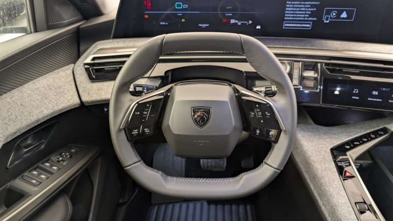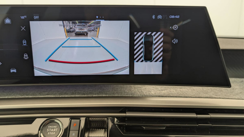 Frein de stationnement électrique / Détection de sous-gonflage indirecte / Essuie-vitre AV à déclenchement automatique / 6 HP (2 tweeters et 2 woofers à l'AV et 2 larges bandes à l'AR) / Rétroviseurs extérieurs dégivrants avec réglage et rabattement électriques, éclairage de seuil / Plancher de coffre modulable 2 positions / 6 airbags: frontaux conducteur et passager auto-adaptatifs (passager neutralisable par clé), latéraux conducteur et passager AV (thorax et bassin), rideaux aux places AV et AR (tête et thorax) / Visiopark 1 Caméra de recul et aide au stationnement AR, graphique et sonore / Volant compact croûte de cuir avec commandes intégrées Noir laqué, décors Gris Stène / Accès et démarrage mains libres Proximity / Eclairage intérieur Plafonnier AV et liseuses AR à LED, Boite à gants et rangement de console éclairés à LED, Eclairage des caves à pieds AV à LED / Banquette AR avec dossier rabattable 40/20/40 / PEUGEOT i-Connect Radio DAB, Bluetooth (connexion 2 téléphones), Mirror Screen sans fil (Apple CarPlay / Android Auto), Peugeot Connect SOS, 1 prise USB C (Data & charge) / Projecteurs "Peugeot Led Technology" / Sièges AV à réglage en hauteur manuel / Sellerie tissu CRISPY embossé, accompagnement TEP Isabella, écharpe tissu RIMINI chiné, surpiqûres Quartz / Rétroviseur intérieur électrochrome / Boîte de vitesse automatique, séquentielle (6 rapports) / Pack Safety Plus : Alerte attention conducteur Reconnaissance étendue des panneaux de signalisation et préconisation de vitesse Alerte active de franchissement involontaire de ligne et bas côté Freinage d'urgence automatique avec alerte risque de collision pilotée par caméra et radar / Pare-brise feuilleté acoustique / Lève-vitres AV/AR électriques et séquentiels avec antipincement / / Véhicules équivalents: C5 Aircross - Tiguan - X3