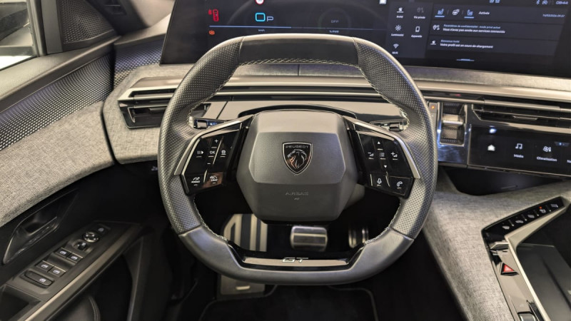 Frein de stationnement électrique / Détection de sous-gonflage indirecte / Commutation automatique des feux de route / Essuie-vitre AV à déclenchement automatique / 6 HP (2 tweeters et 2 woofers à l'AV et 2 larges bandes à l'AR) / Hayon motorisé avec accès mains libres / Pédalier et repose pied aluminium / Plancher de coffre modulable 2 positions / 4 poignées de maintien rétractables (2 à l'AV et 2 à l'AR) / Volant chauffant / Drive Assist - Régulateur de vitesse adaptatif avec fonction Stop & Go / PEUGEOT i-Toggles virtuels avec 10 raccourcis personnalisables / PEUGEOT i-Connect Advanced Navigation 3D connectée, Mirror Link, 4 prises USB: 1 prise USB C (Data & charge) et 1 prise USB C (Charge) à l'AV, 2 prises USB C (Charge) à l'AR / 6 airbags: frontaux conducteur et passager auto-adaptatifs (passager neutralisable par clé), latéraux conducteur et passager AV (thorax et bassin), rideaux aux places AV et AR (tête et thorax) / Accès et démarrage mains libres Proximity / Banquette AR avec dossier rabattable 40/20/40 / Projecteurs PEUGEOT PIXEL LED Eclairage adaptatif, commutation automatique des feux de route, feux de route avec fonctions anti éblouissement et boost / Toit et becquet AR Black Diamond / Eclairage d'ambiance indirect, jour & nuit sur la planche de bord, les panneaux de portes AV et sous l'écran panoramique 21'', associé aux modes de conduite, personnalisable en 8 couleurs / Volant compact, cuir fleur lisse et perforé avec commandes intégrées Noir Laqué, décors Cast Iron, surpiqûres Iced Clay, insert Noir laqué avec badge GT / Commutation adaptative des projecteurs / PEUGEOT i-Cockpit panoramique avec écran incurvé et flottant 21'' HD / Sièges AV à réglage en hauteur manuel / Sellerie tissu NEW UZIRIS embossé, accompagnement TEP Isabella, écharpe tissu RIMINI chiné, surpiqûres Iced Clay / Boîte de vitesse automatique, séquentielle (6 rapports) / Eclairage intérieur Miroirs de courtoisie conducteur et passager occultables éclairés à LED / Pack Safety Plus : Alerte attention conducteur Reconnaissance étendue des panneaux de signalisation et préconisation de vitesse Alerte active de franchissement involontaire de ligne et bas côté Freinage d'urgence automatique avec alerte risque de collision pilotée par caméra et radar / Pare-brise feuilleté acoustique / Lève-vitres AV/AR électriques et séquentiels avec antipincement / Siège conducteur à réglage lombaire manuel / / Véhicules équivalents: C5 Aircross - Tiguan - X3