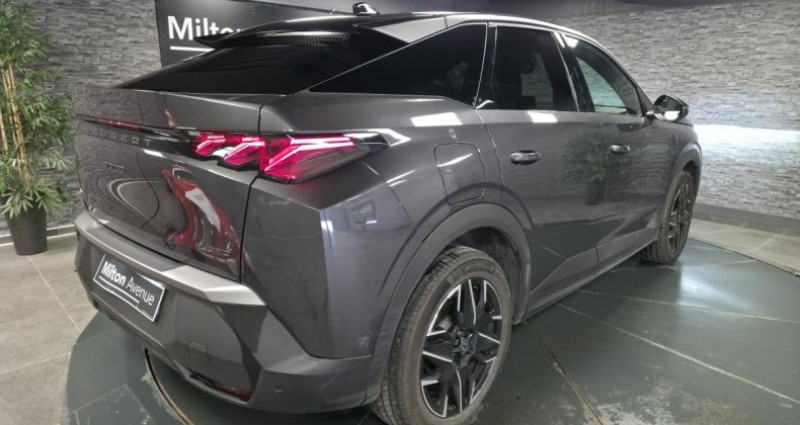 ======= OPTIONS ======= Pack 360 Vision & Drive Assist Plus Peinture métallisée ======= EQUIPEMENTS DE SERIE ======= 1 prise 12 V dans la console centrale 1 prise USB C (Data & charge) et 1 prise USB C (Charge) à l'avant 2 ports USB-C de recharge à l arrière 6 haut-parleurs (2 tweeters et 2 woofers à l'avant et 2 larges bandes à l'arrière) Accès et démarrage mains libres Proximity Air conditionné à régulation automatique 2 zones Airbags frontaux conducteur et passager adaptatifs (airbag passager déconnectable) Airbags latéraux conducteur et passager avant Airbags rideaux de tête aux places avant et arrière Alerte active de franchissement involontaire de ligne et bas côté Alerte attention conducteur Alerte Risque Collision (ARC) Allumage automatique des projecteurs Bandeau entre les feux arrière Noir laqué avec lettrage 'Peugeot Bandeau entre les projecteurs Noir laqué avec logo '3008 Blason 3008 à l'avant Blason Peugeot sur ailes avant Calandre couleur carrosserie Commutation automatique des feux de route Connect Plus Console centrale avec décor tissu RIMINI chiné, façade Noir laqué et jonc Gris Stène, accoudoir tissu RIMINI chiné Décor inférieur Gris Meteor Détection de sous-gonflage indirecte Dossiers de banquette arrière rabattable 40 20 40 avec accoudoir central arrière Eclairage d'ambiance indirect, jour & nuit sur la planche de bord, les panneaux de portes avant et sous l'écran panoramique 21'', associé aux modes de conduite, personnalisable en 8 couleurs Eclairage de la boîte à gant LED Eclairage LED des caves de pieds avant Ecopes latérales Noir laqué Enjoliveurs de passages de roues Noir grainé ESP avec aide au démarrage en pente Essuie-glace à déclenchement automatique Feux AR à griffes 3D LEDs Fixations ISOFIX Top Tether pour les places latérales arrière Fonction Bluetooth, Mirror Screen sans fil (Apple CarPlay Android Auto) Frein de stationnement électrique Freinage d'urgence automatique piloté par caméra et radar Habitacle et ciel de pavillon noir Hayon électrique mains libres Jantes alliage 19'' diamantées BREDA Noir Orbital, vernis brillant Jupe arriere inférieure Noir grainé Jupe avant inférieure Noir grainé Lampe LED dans le vide-poches de la console centrale Lécheurs de vitres masqués Lève-vitres électriques avant et arrière, séquentiels et antipincement Limiteur de vitesse Monogrammes arrière ' Hybrid Monogrammes arrière '3008' Navigation 3D Connectée Panneaux de portes avec décor tissu RIMINI chiné, décor d alcôve en Aluminium sérigraphié et jonc Gris Stène, accoudoirs TEP Isabella, surpiqûres Iced Clay à l'avant Pare-brise feuilleté et acoustique Pare-chocs arrière avec décor Gris Meteor Pare-soleil avec miroirs de courtoisie occultables éclairés à LED Pédalier et repose-pied aluminium Peugeot Connect SOS et Assistance Peugeot i-Cockpit panoramique avec écran incurvé et flottant 21 HD Peugeot i-Connect Advanced Peugeot i-Toggles virtuels avec 10 raccourcis personnalisables Plafonnier avant et liseuses arrière DOME à LED Planche de bord moussée avec décor tissu RIMINI chiné, décor d alcôve en Aluminium sérigraphié, façade et aérateurs Noir laqué avec décor Gris Stène Plancher de coffre modulable 2 positions Poignées de maintien rétractables (x 4) Prise 12V dans le coffre Projecteurs Peugeot Pixel LED avec feux diurnes 3 griffes à LED Protections inférieures de portes noires grainées Radio Numérique DAB Reconnaissance étendue des panneaux de signalisation et préconisation de vitesse Régulateur de vitesse adaptatif avec fonction Stop & Go Rétroviseur intérieur électrochrome Rétroviseurs extérieurs dégivrants à réglage et rabattement électriques, éclairage de seuil Sellerie tissu NEW UZIRIS embossé accompagnement TEP Isabella, écharpe tissu RIMINI chiné, surpiqûres Iced Clay Seuil de portes avant inox avec lettrage Peugeot Siège conducteur avec réglage lombaire manuel Sièges avant avec réglage manuel en hauteur Sièges avant chauffants, siège conducteur certifié AGR Surtapis avant et arrière avec surpiqûres Iced Clay Toit et becquet arrière Black Diamond Visiopark 1 Vitres arrière, custodes et lunette arrière surteintées Volant chauffant Volant compact, cuir fleur lisse et perforé avec commandes intégrées Noir Laqué, décors Gris Stène , surpiqûres Iced Clay, insert Noir laqué avec badge GT Nb. Vitesses : 6 Conso Mixte : l/100
