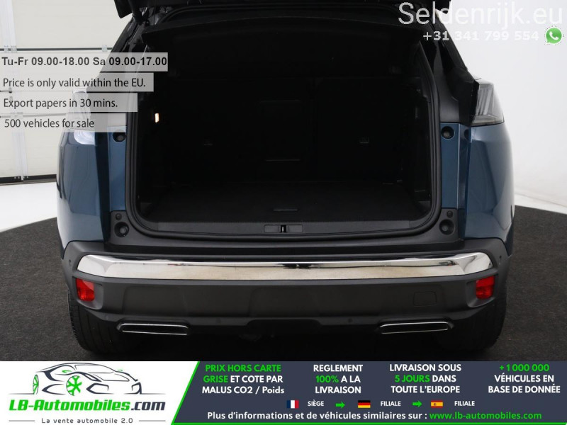 Référence : 1201150 Vos Avantages chez LB-AUTOMOBILES.com / Prix affiché TTC Livré hors carte grise / Livraison sous 10 jours dans toute la France hors 31 / Pas d?avance de frais paiement du véhicule 100% à la livraison par virement. Peugeot 3008 Neuf remisée, Peugeot 3008 Occasion Toulouse Beaupuy 31850, Peugeot 3008 Véhicule sorti de réseau collaborateur, Peugeot 3008 import, Peugeot 3008 importateur, Peugeot 3008 Livraison possible dans toute la France sous 5 jours, Peugeot 3008, Peugeot 3008 Location Option Achat, Peugeot 3008 LLD, Peugeot 3008 Longue Durée, Peugeot 3008 TVA récupérable. Possibilité d'extension de garantie 12, 24,36 mois, Pour tout autres voitures import neufs ou occasions collaborateur fortement remisée, Mandataire Audi, Mandataire BMW, Mandataire Volkswagen, Mandataire Mercedes, Mandataire Peugeot Espagne, Mandataire Renault Espagne, Porsche import, Mandataire Citroën Espagne, Mandataire Seat Espagne, n'hésitez pas à nous contacter. « Sous réserve de vente préalable et erreur de saisie » Principaux équipements : - ABS - Accoudoir - Affichage tête haute - Android Auto - Antidémarrage - Apple CarPlay - Assistance au freinage d'urgence - Assistance de démarrage en côte - Assistant d'angle mort - Assistant feux de route - Attache remorque détachable - Avertisseur de franchissement de ligne - Bluetooth - Capteur de lumière - Capteur de pluie - Carnet d'entretien - Cockpit numérique - Commande vocale - Contrôle de la pression des pneus - Direction assistée - Éclairage adaptatif - ESP - Feux de jour LED - Galerie de toit - GPS - Jantes alliage - Phares LED - Radio DAB - Réglage électrique des sièges - Régulateur de vitesse adaptatif - Rétroviseur extérieur électrique - Rétroviseur intérieur anti-éblouissement automatique - Sièges chauffants - Sièges massants - Support lombaire - Système antipatinage - Système d'alarme - Système de détection de la fatigue - Système de reconnaissance des panneaux de signalisation - Système Stop & Start - Traction avant - Tuner/radio - Verrouillage centralisé sans clé - Vitres électriques - Volant en cuir - Volant multifonction