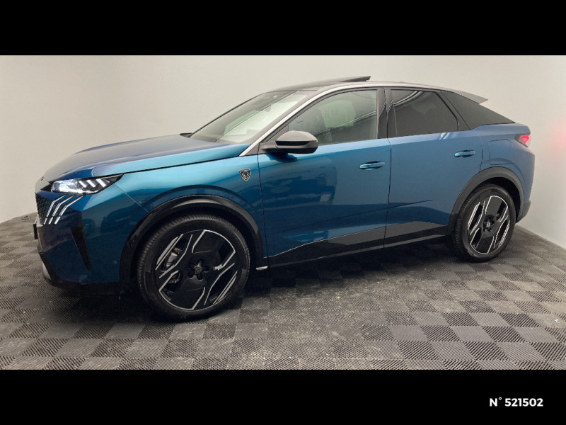 Commutation automatique des feux de route / 4 poignées de maintien rétractables (2 à l'AV et 2 à l'AR) / Hayon motorisé / Rétroviseurs extérieurs dégivrants avec réglage et rabattement électriques,éclairage de seuil / Sièges AV mécaniques à réglage en hauteur / Détection de sous-gonflage indirecte / Volant compact, cuir fleur lisse et perforé avec commandes intégrées Noir Laqué, décors Cast Iron, surpiqûres Iced Clay, insert Noir laqué avec badge ?GT? / 6 haut-parleurs (2 tweeters et 2 woofers à l'AV et 2 larges bandes à l'AR) / Rétroviseur intérieur électrochrome sans cadre / Eléments de style extérieur Jupes inférieures AV et AR, enjoliveurs de passages de roues et protections inférieures de portes Noir laqué / Banquette AR avec dossier rabattable 40/20/40 / Chargeur embarqué 11 kW triphasé / Monogrammes AR 'E3008' / Toit et becquet AR Black Diamond / Eléments de style intérieure Planche de bord moussée avec décor tissu RIMINI chiné, décor d?alcôve en Aluminium sérigraphié, façade et aérateurs Noir laqué avec décor Cast Iron, Panneaux de portes avec décor tissu RIMINI chiné, décor d?alcôve en Aluminium sérigraphié et jonc Cast Iron, accoudoirs TEP Isabella, surpiqûres Iced Clay à l' AV, Console centrale avec décor tissu RIMINI chiné, façade Noir laqué et jonc Cast Iron, accoudoir tissu RIMINI chiné / Projecteurs PEUGEOT PIXEL LED Eclairage adaptatif, commutation automatique des feux de route, feux de route avec fonctions anti éblouissement et boost / Eléments de style éxterieur Becquet AR Noir brillant / Monogrammes ailes AV: 'blason PEUGEOT' / Eclairage d'ambiance indirect, jour & nuit sur la planche de bord, les panneaux de portes AV et sous l'écran panoramique 21'', associé aux modes de conduite, personnalisable en 8 couleurs / Seuil de portes AV inox avec lettrage ?PEUGEOT? / Surtapis AV et AR avec surpiqûres Iced Clay et logo 'GT' / PEUGEOT i-Toggles virtuels avec 10 raccourcis personnalisables / 3 prises 12V 3 prises 12 V (Console centrale, AR de la console centrale, coffre) / Drive Assist - Régulateur de vitesse adaptatif avec fonction Stop & Go / PEUGEOT i-Cockpit panoramique avec écran incurvé et flottant 21?? HD / PEUGEOT i-Connect Advanced Navigation 3D connectée, 4 prises USB: 1 prise USB C (Data & charge) et 1 prise USB C (Charge) à l'AV, 2 prises USB C (Charge) à l'AR / 6 airbags: frontaux conducteur et passager auto-adaptatifs (passager neutralisable par clé), latéraux conducteur et passager AV (thorax et bassin), rideaux aux places AV et AR (tête et thorax) / Recharge smartphone sans fil (puissance 15W) / Pack Safety Plus Régulateur / Limiteur de vitesse, Freinage d'urgence automatique avec alerte risque de collision, Alerte active de franchissement involontaire de ligne et bas côté, Reconnaissance étendue des panneaux de signalisation et préconisation de vitesse, Alerte attention conducteur / Kit de dépannage de pneumatique Compresseur 12 volts, flacon de produit de colmatage, anneau de remorquage, deux cales de roue / Visiopark 1 Caméra de recul & aide au stationnement AV et AR, graphique et sonore / Monogrammes AV: 'blason PEUGEOT' et '3008' / Siège conducteur à réglage lombaire manuel / Lève-vitres AV et AR électriques séquentiels avec antipincement / Plancher de coffre modulable 2 positions / Vitres AR, custodes et lunette AR teintées / Volant chauffant / Pédalier et repose pied aluminium / Essuie-vitre AV à déclenchement automatique / Plancher de coffre 2 positions / Pare-brise feuilleté acoustique / Hayon motorisé avec accès mains libres / Câble électrique mode 3 triphasé 22 kW / Habitacle et ciel de pavillon noir / Jantes alliage 20'' diamantées SOFIA Noir Orbital, vernis mat avec inserts aéro, vernis brillant / Sellerie Alcantara REFLECTION embossé, accompagnement TEP Isabella, écharpe tissu RIMINI chiné, surpiqûres Iced Clay / Prise 12V (x3 : zone connectique, AR de console et coffre) / Accès et démarrage mains libres Proximity 2 Télécommandes 3 boutons (verrouillage, coffre, déverrouillage) / 6 haut-parleurs (2 tweeters et 2 woofers à l'AV et 2 haut-parleurs à l'AR) / PEUGEOT i-Connect Advanced: - Connect Plus: reconnaissance vocale connectée en langage naturel, Services de sécurité: alarme connectée (Si véhicule équipé de l?alarme,), Services à distance (E Remote Control, Remote Control, Find My Car, My Trip Report, Peugeot Skill for Alexa), Fonctions de Navigation (Trafic en temps réel, prévisions météorologiques,parking, recherche TomTom, limitations de vitesse, prix du carburant, mise à jour cartographie Over The Air, Send to Nav, Geofencing, recharges publiques, Trip Planner / EV routing, e ROUTE par Free2move charge / Sièges AV à réglage en hauteur manuel / Commutation adaptative des projecteurs / Eclairage intérieur Miroirs de courtoisie conducteur et passager occultables éclairés à LED, Plafonnier AV et lisseuses AR i-DOME tactiles à LED / Eléments de style Jupes inférieures AV et AR, enjoliveurs de passages de roues et protections inférieures de portes Noir laqué / Enjoliveurs de passage de roues AV et AR laqué Noir / Frein de stationnement électrique