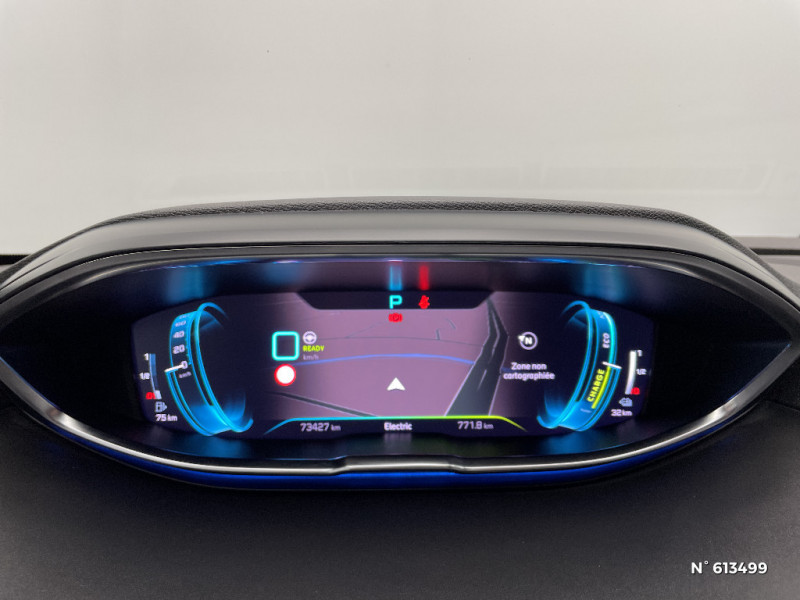 Enjoliveur en inox sur les protecteurs de bas de portes / Pack Eclairage d'ambiance / Reconnaissance étendue des panneaux (Stop, Sens interdit) et préconisation des panneaux de vitesse / Aide graphique et sonore au stationnement AR / Contrôle de la charge de la batterie à distance / Pré-chauffage / climatisation du véhicule à distance / Banquette rabattable 1/3 - 2/3 (commandes dans le coffre) avec accoudoir et trappe à skis / Plancher de coffre fixe avec articulation pour accès au coffre de rangement du câble de recharge / Badge "HYBRID" sur ailes AV et volet de coffre / Rétroviseur intérieur photosensible frameless (sans cadre) avec témoin lumineux d'information roulage mode ELECTRIC / Coques de rétroviseurs extérieurs Noir Perla Nera / Commande de verrouillage à distance (2 plips) / Avertisseur de temps de conduite / Décors intérieurs (baguettes de planche de bord et panneaux de portes, enjoliveur de console) chromés / Trappe de recharge électrique sur l'aile AR gauche, avec indicateur lumineux d'état de recharge / Sélecteur de modes (Electric, Hybrid, Sport) / Chargeur embarqué 3,7kW : câble de recharge T2 avec prise murale / AVAS (système d'alerte sonore du véhicule émis à faible allure en roulage électrique, audible depuis l'extérieur pour la sécurité des piétons) / Surtapis AV et AR / Driver Sport Pack / Sièges AV mécaniques à réglage manuel en hauteur / Toit "Black Diamond" (toit Noir Perla Nera) / Air conditionné automatique bi-zone avec aérateurs aux places AR / Barres de toit longitudinales profilée en Aluminium / Airbags frontaux conducteur et passager adaptatifs (passager neutralisable par clé), airbags latéraux conducteur et passager AV, airbags rideaux de tête aux places AV et AR / Système d'antiblocage des roues ABS avec répartiteur électronique de freinage REF et assistance au freinage d?urgence AFU / Sellerie TEP & "Alcantara" Gris Gréval / Lève-vitres AV et AR électriques séquentiels avec antipincement / Ceintures de sécurité 3 points à enrouleur (x3) au 2ème rang, avec prétensionneurs et limiteurs d'effort aux places latérales / Kit de dépannage de pneumatique : compresseur 12 volts, flacon de produit de colmatage, anneau de remorquage, deux cales de roue, manivelle de frein de stationnement électrique / Mirror Screen (compatible Mirrorlink, Apple CarPlay, Android Auto) / Siège conducteur à réglage lombaire manuel / Garnissage TEP & "Alcantara" Gris Gréval / Vitres latérales AR et lunette AR surteintées / Radio avec fonction DAB,bi-tuner compatible MP3 et connectivité Bluetooth (audio streaming, kit mains libres), avec commandes au volant, 6 HP, écran tactile capacitif 10" HD / Pack City 1 / Plafonniers AV et AR avec spot de lecture / Inserts d'ailes AV chromés / Pack Visibilité / Commandes intérieures de portes chromées / Drive Mode : Choix de 2 modes de conduite (Eco ou Sport) / Prises USB de charge (x2) au 2 rang / Frein de stationnement électrique avec aide au démarrage en pente / Pack Drive Assist Plus / Prise 12V (x3 : zone connectique, AR de console et coffre) / Accès et démarrage mains libres / Détection de sous-gonflage indirecte / Enjoliveur d'arc de pavillon en inox / Peugeot i-Cockpit avec combiné tête haute numérique reconfigurable, écran tactile capacitif 10" et volant compact multi-fonctions / Décors de planche de bord et panneaux de portes Alcantara Gris Greval / Jantes alliage 18" "Detroit" bi-ton diamantées Noir Onyx / Contrôle dynamique de stabilité CDS avec antipatinage électronique ASR / Peugeot Connect: Ecran tactile capacitif 10'' HD,navigation 3D connectée avec reconnaissance vocale aux services de Navigation connectée TomTom, SOS & Assistance, Teleservices / Commandes de lève-vitres avec inserts chromés / Bandeau de pare-chocs AR chromé / Volant cuir fleur perforé avec bagues chromées et badge GT / Prise USB (dans la zone connectique) / Poches/filets aumonières au dos des sièges AV / Calandre GT avec design évolutif chromé / Projecteurs "Peugeot Full LED Technology" avec correction automatique de site, fonction Eclairage Virage Statique,"Foggy Mode" et feux diurnes à LED prolongés dans les projecteurs / Ceintures de sécurité AV 3 points à enrouleur, réglables en hauteur avec prétensionneurs et limiteurs d'effort / Pédalier et repose-pied conducteur aluminium / Lunette AR chauffante avec antennes sérigraphiées / Teinte métallisée Bleu Celebes / Canules d'echappement de style chromées / Habitacle et ciel de pavillon Noir Mistral / Planche de bord surpiquée / Appuis-tête à sécurité optimisée réglables en hauteur sur les sièges conducteur et passager AV ainsi que sur les places latérales AR / "Toggle Switches" chromés (touches "piano" d'activation des fonctions de l'écran tactile) / Eclairage intérieur LED: plafonnier tactile 3 spots + 2 LEDs d'ambiance, 2 liseuses AR, pare-soleil, boîte à gants, accoudoir central, zone connectique, caves à pied, zone coffre (x2) / Essuie-vitre AR avec enclenchement automatique en marche AR / Siège passager AV mécanique avec mise en tablette / Sécurité enfants électrique des vitres AR / Passages de roues rapportés noirs / Boîte à gants floquée et éclairée / Direction assistée électrique, colonne de direction réglable en hauteur et profondeur (mécanique) / Essuie-vitre AV avec système de lavage "Magic Wash" / Indicateur de rapport conseillé / Seuils de portes AV en Inox / Sabots de pare-chocs AV gris métallisé / Pack Safety Plus