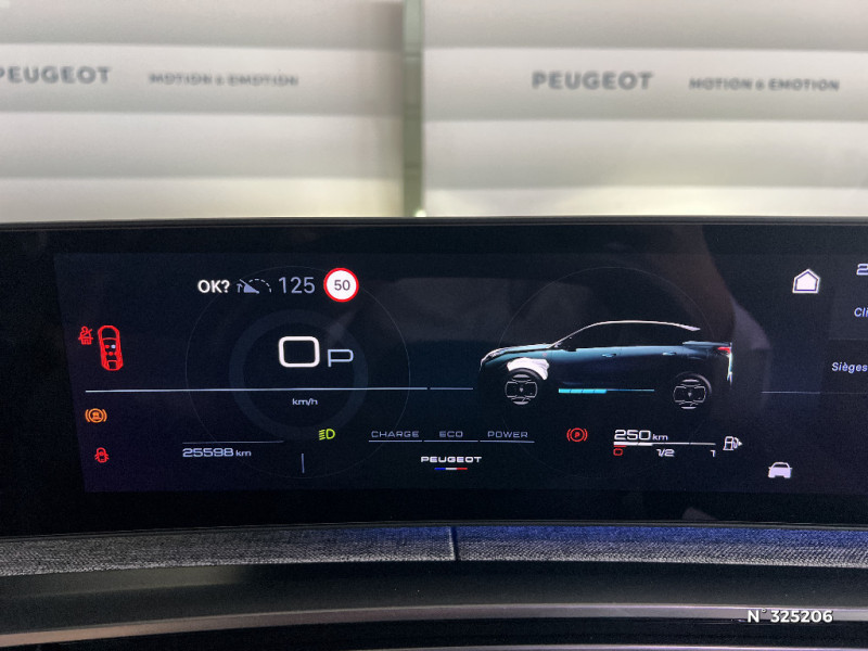 Toit et becquet AR Black Diamond / Vitres AR, custodes et lunette AR teintées / Volant chauffant / Volant compact, cuir fleur lisse et perforé avec commandes intégrées Noir Laqué, décors Cast Iron, surpiqûres Iced Clay, insert Noir laqué avec badge ¿GT¿ / 2 prises 12 V (Console centrale, coffre) / 3 prises 12 V (Console centrale, AR de la console centrale, coffre) / 4 poignées de maintien rétractables (2 à l'AV et 2 à l'AR) / 6 airbags: frontaux conducteur et passager auto-adaptatifs (passager neutralisable par clé), latéraux conducteur et passager AV (thorax et bassin), rideaux aux places AV et AR (tête et thorax) / 6 HP (2 tweeters et 2 woofers à l'AV et 2 larges bandes à l'AR) / 6 HPs (2 tweeters et 2 woofers à l'AV et 2 HPs à l'AR) / Sellerie Alcantara REFLECTION embossé, accompagnement TEP Isabella, écharpe tissu RIMINI chiné, surpiqûres Iced Clay / Sellerie tissu NEW UZIRIS embossé, accompagnement TEP Isabella, écharpe tissu RIMINI chiné, surpiqûres Iced Clay / Seuil de portes AV inox avec lettrage PEUGEOT / Siège conducteur à réglage lombaire manuel / Sièges AV à réglage en hauteur manuel / Sièges AV mécaniques à réglage en hauteur / Surtapis AV et AR avec surpiqûres Iced Clay et logo GT / Banquette AR avec dossier rabattable 40/20/40 / Commutation adaptative des projecteurs / Commutation automatique des feux de route / Détection de sous-gonflage indirecte / Drive Assist - Régulateur de vitesse adaptatif avec fonction Stop & Go / Eclairage d'ambiance indirect, jour & nuit sur la planche de bord, les panneaux de portes AV et sous l'écran panoramique 21'', associé aux modes de conduite, personnalisable en 8 couleurs / Eclairage intérieur Miroirs de courtoisie conducteur et passager occultables éclairés à LED, Plafonnier AV et lisseuses AR i-DOME tactiles à LED / Accès et démarrage mains libres Proximity / Eléments de style éxterieur Bandeau entre les projecteurs Noir laqué avec logo 3008. Calandre couleur caisse, écopes latérales Noir laqué, décor inférieur Gris Meteor, jupe inférieure Noir grainé. Vitres AR, vitres de custode et lunette AR surteintées. Lécheurs de vitres masqués. Enjoliveurs de passages de roues et protections inférieures de portes Noir grainé. Bandeau entre les feux AR Noir laqué avec lettrage PEUGEOT. Pare chocs AR avec décor Gris Meteor et jupe inférieure Noir grainé, Monogrammes AV et AR / Eléments de style éxterieur Becquet AR Noir brillant / Eléments de style intérieure Planche de bord moussée avec décor tissu RIMINI chiné, décor d'alcôve en Aluminium sérigraphié, façade et aérateurs Noir laqué avec décor Cast Iron, Panneaux de portes avec décor tissu RIMINI chiné, décor d'alcôve en Aluminium sérigraphié et jonc Cast Iron, accoudoirs TEP Isabella, surpiqûres Iced Clay à l'AV, Console centrale avec décor tissu RIMINI chiné, façade Noir laqué et jonc Cast Iron, accoudoir tissu RIMINI chiné / Essuie-vitre AV à déclenchement automatique / Frein de stationnement électrique / Rétroviseurs extérieurs dégivrants avec réglage et rabattement électriques, éclairage de seuil / Hayon motorisé / PEUGEOT i-Connect Advanced - Connect Plus: Reconnaissance vocale connectée en langage naturel, ChatGPT (Disponibilité ultérieurement) Services de sécurité: alarme connectée (Si véhicule équipé de l¿alarme,) Services à distance (E Remote Control, Remote Control, Find My Car, My Trip Report, Peugeot Skill for Alexa), Fonctions de Navigation (Trafic en temps réel, prévisions météorologiques,parking, recherche TomTom, limitations de vitesse, prix du carburant, mise à jour cartographie Over The Air, Send to Nav, Geofenci / PEUGEOT i-Connect Advanced Navigation 3D connectée, 4 prises USB: 1 prise USB C (Data & charge) et 1 prise USB C (Charge) à l'AV, 2 prises USB C (Charge) à l'AR / PEUGEOT i-Toggles virtuels avec 10 raccourcis personnalisables / Plancher de coffre modulable 2 positions / Plancher de coffre 2 positions / Prise 12 V (x3 : zone connectique, AR de console et coffre) / Projecteurs PEUGEOT PIXEL LED Eclairage adaptatif, commutation automatique des feux de route, feux de route avec fonctions anti éblouissement et boost / Recharge smartphone sans fil (puissance 15 W) / Rétroviseur intérieur électrochrome sans cadre / Hayon motorisé avec accès mains libres / Jantes alliage 19" diamantées Lulea Noir Orbital, vernis brillant / Kit de dépannage de pneumatique Compresseur 12 volts, flacon de produit de colmatage, anneau de remorquage, deux cales de roue / Lève-vitres AV/AR électriques et séquentiels avec antipincement / Monogrammes ailes AV: blason PEUGEOT / Monogrammes AR 3008 et Hybrid / Monogrammes AV: blason PEUGEOT et 3008 / Pack Safety Plus Régulateur / Limiteur de vitesse, Freinage d'urgence automatique avec alerte risque de collision pilotée par caméra et radar, Alerte active de franchissement involontaire de ligne et bas côté, Reconnaissance étendue des panneaux de signalisation et préconisation de vitesse, Alerte attention conducteur / Pare-brise feuilleté acoustique / Pédalier et repose pied aluminium / PEUGEOT i-Cockpit panoramique avec écran incurvé et flottant 21 HD / PEUGEOT i-Connect Advanced - Connect Plus: Reconnaissance vocale connectée en langage naturel, Services de sécurité: alarme connectée (Si véhicule équipé de l¿alarme,) Services à distance (E Remote Control, Remote Control, Find My Car, My Trip Report, Peugeot Skill for Alexa), Fonctions de Navigation (Trafic en temps réel, prévisions météorologiques,parking, recherche TomTom, limitations de vitesse, prix du carburant, mise à our cartographie Over The Air, Send to Nav, Geofencing, / Habitacle et ciel de pavillon Noir / Visiopark 1 Caméra de recul & aide au stationnement AV et AR, graphique et sonore