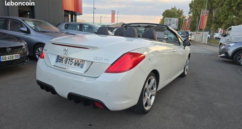 Peugeot 308 CC 2.0 HDi 16V 140ch Féline cabriolet, blanc, 8 cv, 2 portes, première mise en circulation le 04/01/2011, garantie 3 mois. 4 places OPTIONS ET ÉQUIPEMENTS : Audio - Télécommunications : - WIP Nav + Peugeot Connect SOS & Assistance Conduite : - allumage automatique des feux - limiteur de vitesse - pack visibilite Extérieur : - Filet anti-remous (Windstop) - Aide graphique et sonore au stationnement AR - jantes : alliage - jantes alliage - rétroviseurs électriques Intérieur : - Air conditionné automatique bi-zone - Direction électro-hydraulique à assistance variable - Lunette AR surteintée - Lève-vitres AV et AR à commande centralisée - Pommeau de levier de vitesse en aluminium - Pédalier - Vitres arrières électriques - accoudoir central - fermeture centralisée - intérieur : cuir - ordinateur de bord - pack cuir - réglages du volant : hauteur et profondeur - verrouillage automatique des portes en roulant - vitres avant éléctriques - volant cuir - volant sport Pack : - Eclairage d'ambiance intérieur - Feux AR à LED - repose-pieds et seuils de portes aluminium - nombre de rapports : 6 vitesses - volant réglable Sécurité : - Alarme sonore d'oubli d'extinction des feux et de la clé de contact - Antidémarrage codé électronique - Feux de brouillard AR - Kit de dépannage de pneumatique - ABS - ESP - aide au freinage d'urgence - airbags frontaux - airbags latéraux - contrôle pression des pneus - fixations ISOFIX - phares antibrouillard - répartiteur électronique de freinage Autres équipements et informations : - Appuie-tête AV et AR intégrés - Arceaux de sécurité à déclenchement pyrotechnique - Ceintures de sécurité AR 3 points avec limiteur d'effort - Ceintures de sécurité AV 3 points à prétension pyrotechnique et limiteur d'effort - Combiné Sport - Navigation/Kit mains libres WIP Nav - Navigation/Kit mains libres WIP Nav + Equipement Peugeot Connect SOS & Peugeot Connect Assistance - Système Airwave (chauffe-nuque) - Toit ecamotable électrique tout automatique - fond blanc avec afficheur à matrice de points - Classe Crit'air : 2 - Puissance kilowatt : 103 kw - puissance réelle : 140 ch - émission CO2 : 155 g/km Référence annonce : 118VO010610