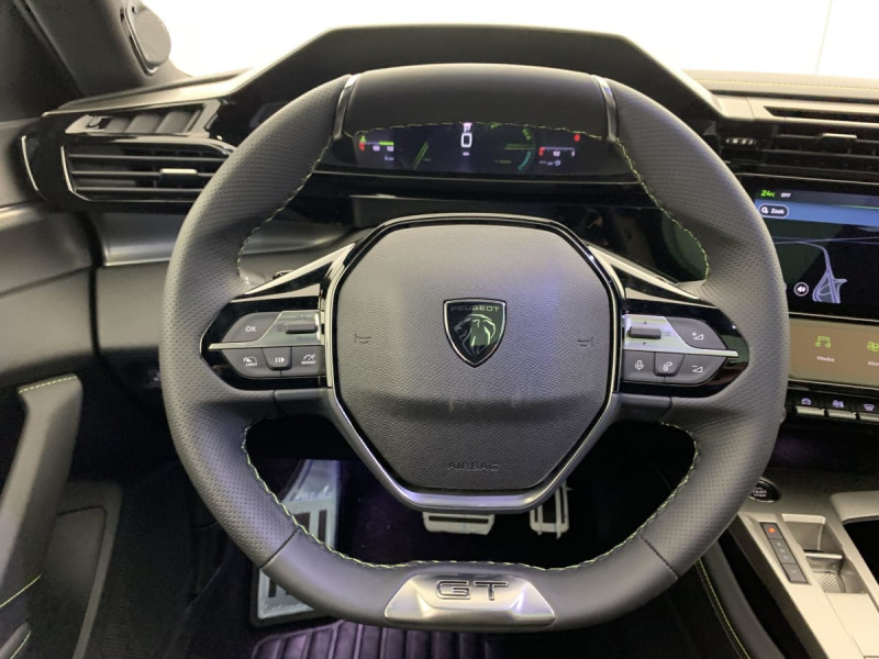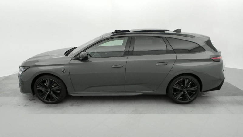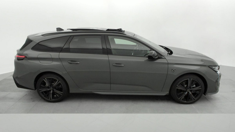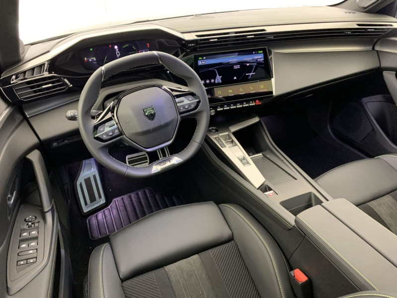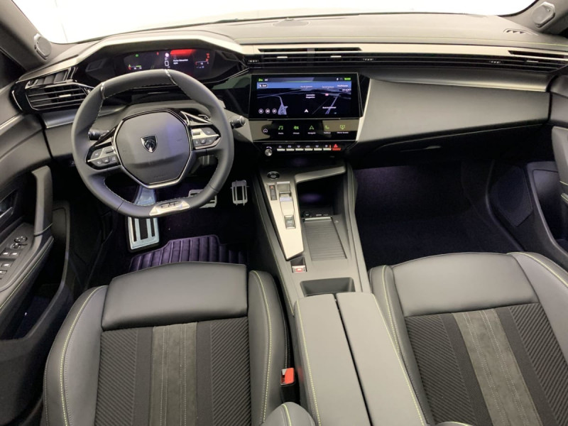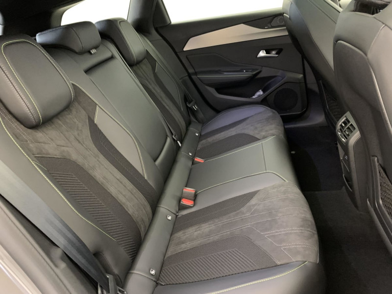 Frein de stationnement électrique / Système stop & go couplé avec l'assistance au positionnement sur la voie / Peugeot Connect SOS / Ciel de pavillon noir / Détection de sous gonflage / Alerte attention conducteur / Commutation automatique des feux de route / Accès et démarrage mains libres / Rétroviseur intérieur photosensible / Ceintures de sécurité AR 3 points à enrouleur (x3) avec prétensionneurs et limiteurs d'effort aux places latérales / Vitres AV feuilletées acoustiques / Airbags frontaux conducteur et passager adaptatifs (passager neutralisable par clé), airbags latéraux conducteur et passager AV.airbags rideaux de tête aux places AV/AR / Seuils de porte AV aluminium / Alerte active de franchissement involontaire de ligne et bas côté / Driver Sport Pack : Personnalisation du combiné spécifique Sonorité du moteur amplifiée et plus sportive (désactivable) / Essuie-vitre AV à déclenchement automatique / Fixations pour 2 sièges enfants ISOFIX, aux places AR, inclus Top Tether / Sélecteur mode de conduite Eco et Sport / Lève-vitres électriques AV/ AR et séquentiels avec anti-pincement / Rétroviseurs extérieurs électriques, dégivrants et rabattables électriquement, avec répétiteurs de feux clignotants à LED / Jupe AR Noir Brillant avec décors chromés / Diffuseurs d'air aux places AR / Smart Multidrive: personnalisation du combiné et éclairage d'ambiance LED intérieur associés aux modes de conduite / Projecteurs Peugeot Matrix LED / Feux AR spécifiques avec allumage dynamique griffe à griffe / Calandre AV spécifique Noir verni avec inserts chromés et écopes Noir Brillant / Elargisseurs de pare chocs AV et de bas de caisse latéraux / Monogrammes latéraux emblème Lion / Décor Alu sur panneaux de porte / Feux diurnes à LED sous projecteurs nouvelle signature Peugeot / Eclairage d'ambiance (8 couleurs) / Barres de toit Alu/Noir Onyx / 2 prises USB-C à l'AR / Banquette AR rabattable 40-20-40 déverrouillable depuis le coffre / Vitres de custode AR et lunette AR chauffante temporisée surteintées / Fonction Mirror Screen (Apple CarPlay/Android Auto) sans fil / Lunette AR surteintée / Ceintures de sécurité AV 3 points à enrouleur, avec prétensionneurs et limiteurs d'effort / 2 prises USB-C à l'AV / Lécheurs de vitres Noir Brillant / ESP avec fonction Hill Assist (Aide au démarrage en pente) / Accoudoir central AV avec compartiment de rangement / Pare-brise teinté feuilleté acoustique / Navigation connectée avec écran central tactile 10'' et i-Toggles virtuels personnalisables / Planche de bord avec jonc transversal peint, décor Alu et surpiqûres Vert / 4 poignées de maintien / Pack Drive Assist - Régulateur de vitesse adaptatif avec fonction Stop&Go Maintient automatiquement la vitesse du véhicule à la vitesse de référence définie par le conducteur, et ajuste automatiquement la vitesse du véhicule pour garder une distance de sécurité avec le véhicule qui précède, conformément au réglage sélectionné par le conducteur. Maintient et ajuste la vitesse jusqu'à l'arrêt. Le redémarrage du véhicule est automatique si l'arrêt a été d'une durée inférieure à 3 secondes / Pack Safety Plus : Active Safety Brake piloté par caméra et radar / Pédalier Sport et repose pied en aluminium / Réglage lombaire du siège conducteur / Boîte de vitesse automatique, séquentielle (6 rapports) / 2 télécommandes 3 boutons / / Véhicules équivalents: Megane - C4 - Mazda 3