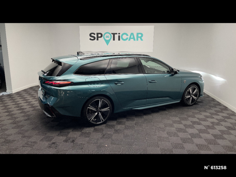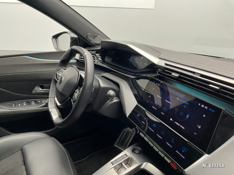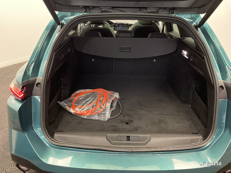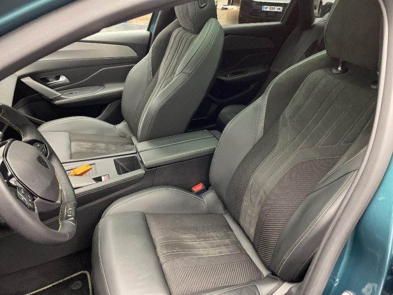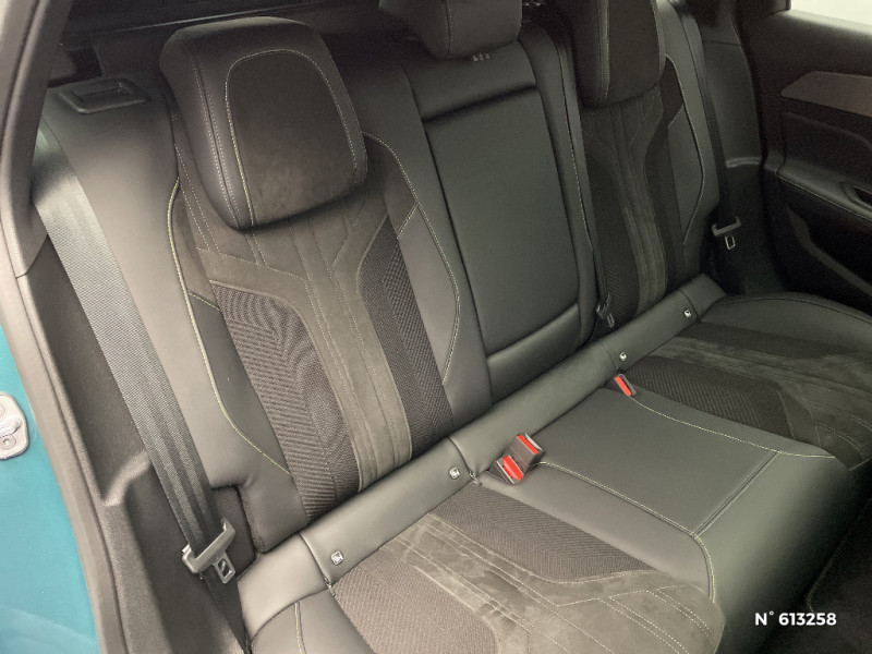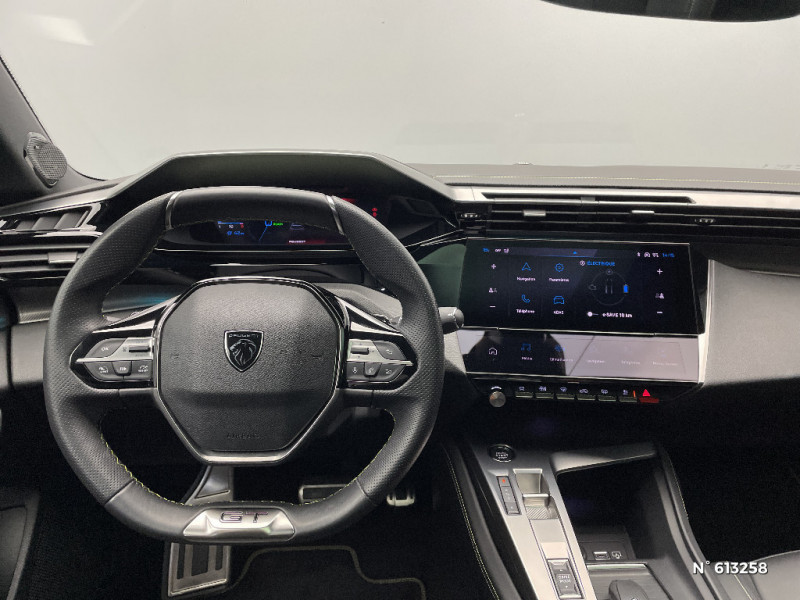 Airbags frontaux conducteur et passager adaptatifs (passager neutralisable par clé), airbags latéraux conducteur et passager AV, airbags rideaux de tête aux places AV et AR / Seuils de porte AV aluminium / Pare-brise feuilleté acoustique / Rétroviseur intérieur photosensible sans cadre / Air Quality System (sonde de pollution, couplée à un filtre à charbon actif Haute Efficacité) / 2 télécommandes 3 boutons / Rétroviseur intérieur photosensible sans cadre, avec témoin lumineux de roulage en mode Electric / Sélecteur de modes (Electric, Hybrid, Sport) / Kit de dépannage de pneumatique : compresseur 12 volts, flacon de produit de colmatage, anneau de remorquage, deux cales de roue, manivelle de frein de stationnement électrique / Pédalier Sport aluminium et repose pied en aluminium / Alerte active de franchissement involontaire de ligne et bas côté / Prise 12V dans le coffre / Capacité batterie 12,4 kWh / Puissance batterie 100 kW / Rear Warning / 4 poignées de maintien (2 à l'AV et 2 à l'AR) / Rétroviseurs extérieurs électriques, dégivrants et rabattables électriquement avec répétiteurs de feux clignotants à LED / Chargeur embarqué 3,7 kW / Câble de recharge mode 2 (8A, 1,8 kW, pour prise domestique standard) / Monogrammes latéraux Hybrid / Détection de sous gonflage / Surtapis AV et AR / Pack Safety Plus / Pack Drive Assist / Pack Drive Assist + Rear warning / PEUGEOT Connect SOS & Assistance / Surveillance d'angles morts longue portée (Lane Change Assit) / Alerte de trafic AR transversal (Rear Cross Traffic Alert) / Peugeot i-Cockpit 3D avec combiné d'instrumentation numérique personnalisable / Clean Cabin avec capteur de particules dans l'habitacle / Feux diurnes à LED sous projecteurs nouvelle signature Peugeot / Eclairage d'ambiance (8 couleurs) / Accès et démarrage mains libres / Calandre AV spécifique Noir verni avec inserts chromés et écopes Noir Brillant / Elargisseurs de pare chocs AV et de bas de caisse latéraux / Jantes alliage 18" Kamakura diamantées / Planche de bord avec jonc transversal chromé, décor Alu et surpiqûres Vert / Décor Alu sur panneaux de porte / Rétroviseurs extérieurs avec éclairage d'approche / Diffuseurs d'air AR / Smart Multidrive: personnalisation du combiné et éclairage d'ambiance LED intérieur associés aux modes de conduite / Projecteurs Peugeot Matrix LED / Ceintures de sécurité AR 3 points à enrouleur (x3) avec prétensionneurs et limiteurs d'effort aux places latérales / Feux AR spécifiques avec allumage dynamique griffe à griffe / Jupe AR Noir Brillant avec décors chromés / Pré-conditionnement thermique via MyPeugeot ou l'écran central / Vitres de custode AR et lunette AR chauffante temporisée surteintées / Fonction Mirror Screen (Apple CarPlay/Android Auto) sans fil / Banquette AR rabattable 40-20-40 déverrouillable depuis le coffre / Navigation connectée avec écran central tactile 10'' et écran avec i-Toggles virtuels personnalisables. Reconnaissance vocale en langage naturel. / Volant Cuir chauffant / Barres de toit Alu/Noir Onyx / 2 prises USB-C à l'AR / Ceintures de sécurité AV 3 points à enrouleur, avec prétensionneurs et limiteurs d'effort / Essuie-vitre AV à déclenchement automatique / 2 prises USB-C à l'AV / Alerte attention conducteur / Commutation automatique des feux de route / Driver Sport Pack / Garnissage tri-matières TEP/Alcantara Fraxx Knit / Ciel de pavillon noir / Lève-vitres électriques AV et AR et séquentiels avec anti-pincement / Frein de stationnement électrique / Garnissage tri-matières TEP/Alcantara Fraxx Knit, surpiqûres Vert / Navigation connectée / Fixations pour 2 sièges enfants ISOFIX, aux places AR, inclus Top Tether / Réglage lombaire du siège conducteur / Câble de recharge mode 2 (10 A, 2,3 kW, pour prise domestique standard) / Lécheurs de vitres latérales Noir Brillant