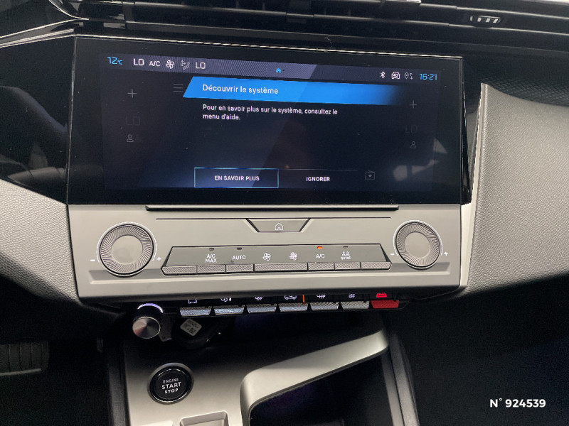 Fixations pour 2 sièges enfants ISOFIX, aux places AR, inclus Top Tether / Jupe AR Noir / Alerte attention conducteur / Sélecteur mode de conduite Eco et Sport / Détection de sous gonflage / Ceintures de sécurité AR 3 points à enrouleur (x3) avec prétensionneurs et limiteurs d'effort aux places latérales / Réglage lombaire du siège conducteur / Rétroviseur intérieur photosensible / Ciel de pavillon clair / Peugeot i-Cockpit avec combiné d'instrumentation numérique 10'' personnalisable / Kit de dépannage de pneumatique : compresseur 12 volts, flacon de produit de colmatage, anneau de remorquage, deux cales de roue, manivelle de frein de stationnement électrique / Pare-brise teinté feuilleté acoustique / Airbags frontaux conducteur et passager adaptatifs (passager neutralisable par clé), airbags latéraux conducteur et passager AV, airbags rideaux de tête aux places AV et AR / ESP avec fonction Hill Assist (Aide au démarrage en pente) / Rétroviseurs extérieurs électriques, dégivrants et rabattables électriquement avec répétiteurs de feux clignotants à LED / Calandre AV et écopes Noir / Planche de bord avec jonc transversal peint et décor grain Traxx / Essuie-vitre AV à déclenchement automatique / 2 télécommandes 3 boutons / Banquette AR rabattable 40-20-40 déverrouillable depuis le coffre / Vitres de custode AR et lunette AR chauffante temporisée surteintées / Fonction Mirror Screen (Apple CarPlay/Android Auto) sans fil / 4 poignées de maintien / Garnissage tri-matières Tissu Renze / Ceintures de sécurité AV 3 points à enrouleur, avec prétensionneurs et limiteurs d'effort / Alerte active de franchissement involontaire de ligne et bas côté / 2 prises USB-C à l'AV / Frein de stationnement électrique / Feux diurnes à LED sous projecteurs / Lève-vitres électriques AV et AR et séquentiels avec anti-pincement / Pack Drive Assist - Régulateur de vitesse adaptatif avec fonction Stop&Go Maintient automatiquement la vitesse du véhicule à la vitesse de référence définie par le conducteur, et ajuste automatiquement la vitesse du véhicule pour garder une distance de sécurité avec le véhicule qui précède, conformément au réglage sélectionné par le conducteur. Maintient et ajuste la vitesse jusqu'à l'arrêt Le redémarrage du véhicule est automatique si l'arrêt a été d'une durée inférieure à 3 secondes / Pack Safety Plus - Active Safety Brake piloté par caméra et radar