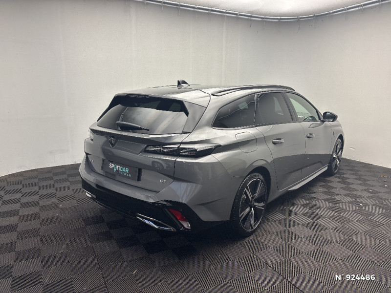 Peugeot Connect SOS & Assistance / Alerte attention conducteur / Accoudoir central AV avec compartiment de rangement / Rétroviseur intérieur photosensible / Fixations pour 2 sièges enfants ISOFIX, aux places AR, inclus Top Tether / Réglage lombaire du siège conducteur / Seuils de porte AV aluminium / Frein de stationnement électrique / 2 prises USB-C à l'AV / Ceintures de sécurité AV 3 points à enrouleur, avec prétensionneurs et limiteurs d'effort / Alerte active de franchissement involontaire de ligne et bas côté / Elargisseurs de pare chocs AV et de bas de caisse latéraux / Lève-vitres électriques AV et AR et séquentiels avec anti-pincement / Pack Drive Assist - Régulateur de vitesse adaptatif avec fonction Stop&Go Maintient automatiquement la vitesse du véhicule à la vitesse de référence définie par le conducteur, et ajuste automatiquement la vitesse du véhicule pour garder une distance de sécurité avec le véhicule qui précède, conformément au réglage sélectionné par le conducteur. Maintient et ajuste la vitesse jusqu'à l'arrêt Le redémarrage du véhicule est automatique si l'arrêt a été d'une durée inférieure à 3 secondes / Ciel de pavillon noir / Lécheurs de vitres Noir Brillant / Garnissage tri-matières TEP/Tissu New Belomka / Pare-brise teinté feuilleté acoustique / Airbags frontaux conducteur et passager adaptatifs (passager neutralisable par clé), airbags latéraux conducteur et passager AV, airbags rideaux de tête aux places AV et AR / Pack Safety Plus - Active Safety Brake piloté par caméra et radar / Pédalier Sport et repose pied en aluminium / ESP avec fonction Hill Assist (Aide au démarrage en pente) / Jantes alliage 18" Kamakura diamantées / Navigation connectée avec écran central tactile 10'' et i-Toggles virtuels personnalisables / Jupe AR Noir Brillant avec décors chromés / Surtapis AV et AR / Monogrammes latéraux emblème Lion / Fonction Mirror Screen (Apple CarPlay/Android Auto) sans fil / Banquette AR rabattable 40-20-40 déverrouillable depuis le coffre / Vitres de custode AR et lunette AR chauffante temporisée surteintées / Smart Multidrive: personnalisation du combiné et éclairage d'ambiance LED intérieur associés aux modes de conduite / Lunette AR surteintée / Projecteurs Peugeot Matrix LED / Feux AR spécifiques avec allumage dynamique griffe à griffe / Planche de bord avec jonc transversal peint, décor Alu et surpiqûres Vert / Diffuseurs d'air AR / Feux diurnes à LED sous projecteurs nouvelle signature Peugeot / Eclairage d'ambiance (8 couleurs) / Décor Alu sur panneaux de porte / Rétroviseurs extérieurs électriques, dégivrants et rabattables électriquement avec répétiteurs de feux clignotants à LED / Essuie-vitre AV à déclenchement automatique / Peugeot i-Cockpit avec instrumentation numérique 10'' personnalisable / 2 télécommandes 3 boutons / Sélecteur mode de conduite Eco et Sport / 4 poignées de maintien / Barres de toit Alu/Noir Onyx / 2 prises USB-C à l'AR / Vitres AV feuilletées acoustiques / Calandre AV spécifique Noir verni avec inserts chromés et écopes Noir Brillant / Ceintures de sécurité AR 3 points à enrouleur (x3) avec prétensionneurs et limiteurs d'effort aux places latérales / Détection de sous gonflage / Accès et démarrage mains libres / Commutation automatique des feux de route / Driver Sport Pack