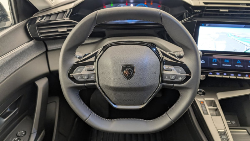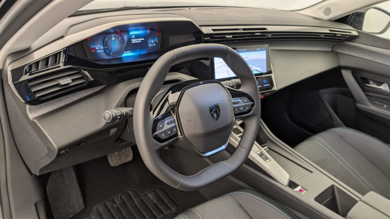 Frein de stationnement électrique / Jantes alliage 17" Halong diamantées / Détection de sous gonflage / Alerte attention conducteur / Commutation automatique des feux de route / Rétroviseur intérieur photosensible / Ceintures de sécurité AR 3 points à enrouleur (x3) avec prétensionneurs et limiteurs d'effort aux places latérales / Airbags frontaux conducteur et passager adaptatifs (passager neutralisable par clé), airbags latéraux conducteur et passager AV.airbags rideaux de tête aux places AV/AR / Alerte active de franchissement involontaire de ligne et bas côté / Essuie-vitre AV à déclenchement automatique / Fixations pour 2 sièges enfants ISOFIX, aux places AR, inclus Top Tether / Sélecteur mode de conduite Eco et Sport / Lève-vitres électriques AV/ AR et séquentiels avec anti-pincement / Rétroviseurs extérieurs électriques, dégivrants et rabattables électriquement, avec répétiteurs de feux clignotants à LED / Feux diurnes à LED sous projecteurs nouvelle signature Peugeot / Banquette AR rabattable 40 - 20 - 40 déverrouillable depuis le coffre / Vitres de custode AR et lunette AR chauffante temporisée surteintées / Fonction Mirror Screen (Apple CarPlay/Android Auto) sans fil / Ceintures de sécurité AV 3 points à enrouleur, avec prétensionneurs et limiteurs d'effort / ESP avec fonction Hill Assist (Aide au démarrage en pente) / Accoudoir central AV avec compartiment de rangement / Garnissage tri-matières TEP/Tissu Falgo, surpiqûres Bleu / Pare-brise teinté feuilleté acoustique / Pack Drive Assist : Régulateur de vitesse adaptatif avec fonction Stop&Go / Pack Safety Plus : Active Safety Brake piloté par caméra et radar / Peugeot i-Cockpit avec instrumentation numérique 10" personnalisable / Réglage lombaire du siège conducteur / Boîte de vitesse automatique, séquentielle (6 rapports) / / Véhicules équivalents: Megane - C4 - Mazda 3