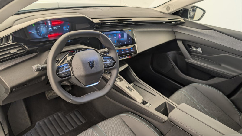 Frein de stationnement électrique / Système stop & go couplé avec l'assistance au positionnement sur la voie / Jantes alliage 17" Halong diamantées / Détection de sous gonflage / Alerte attention conducteur / Commutation automatique des feux de route / Rétroviseur intérieur photosensible / Ceintures de sécurité AR 3 points à enrouleur (x3) avec prétensionneurs et limiteurs d'effort aux places latérales / Airbags frontaux conducteur et passager adaptatifs (passager neutralisable par clé), airbags latéraux conducteur et passager AV.airbags rideaux de tête aux places AV/AR / Alerte active de franchissement involontaire de ligne et bas côté / Essuie-vitre AV à déclenchement automatique / Fixations pour 2 sièges enfants ISOFIX, aux places AR, inclus Top Tether / Sélecteur mode de conduite Eco et Sport / Lève-vitres électriques AV/ AR et séquentiels avec anti-pincement / Rétroviseurs extérieurs électriques, dégivrants et rabattables électriquement, avec répétiteurs de feux clignotants à LED / Ciel de pavillon clair / Calandre AV Noir avec inserts chromés et écopes Noir / Jupe AR Noir Brillant avec décors chromés / Diffuseurs d'air aux places AR / Feux diurnes à LED sous projecteurs nouvelle signature Peugeot / 2 prises USB-C à l'AR / Banquette AR rabattable 40 - 20 - 40 déverrouillable depuis le coffre / Vitres de custode AR et lunette AR chauffante temporisée surteintées / Fonction Mirror Screen (Apple CarPlay/Android Auto) sans fil / Lunette AR surteintée / Ceintures de sécurité AV 3 points à enrouleur, avec prétensionneurs et limiteurs d'effort / 2 prises USB-C à l'AV / Lécheurs de vitres Noir Brillant / ESP avec fonction Hill Assist (Aide au démarrage en pente) / Accoudoir central AV avec compartiment de rangement / Garnissage tri-matières TEP/Tissu Falgo, surpiqûres Bleu / Pare-brise teinté feuilleté acoustique / Planche de bord avec jonc transversal peint et décor textile Texa / 4 poignées de maintien / Pack Drive Assist - Régulateur de vitesse adaptatif avec fonction Stop&Go Maintient automatiquement la vitesse du véhicule à la vitesse de référence définie par le conducteur, et ajuste automatiquement la vitesse du véhicule pour garder une distance de sécurité avec le véhicule qui précède, conformément au réglage sélectionné par le conducteur. Maintient et ajuste la vitesse jusqu'à l'arrêt. Le redémarrage du véhicule est automatique si l'arrêt a été d'une durée inférieure à 3 secondes : Régulateur de vitesse adaptatif avec fonction Stop&Go / Pack Safety Plus Active Safety Brake piloté par caméra et radar : Active Safety Brake piloté par caméra et radar / Peugeot i-Cockpit avec instrumentation numérique 10" personnalisable / Réglage lombaire du siège conducteur / Boîte de vitesse automatique, séquentielle (6 rapports) / Intervalle de maintenance 25 000 km ou 1 an / 2 télécommandes 3 boutons / / Véhicules équivalents: Megane - C4 - Mazda 3